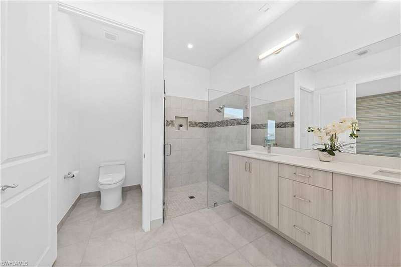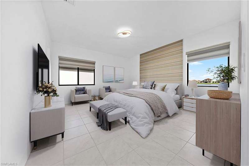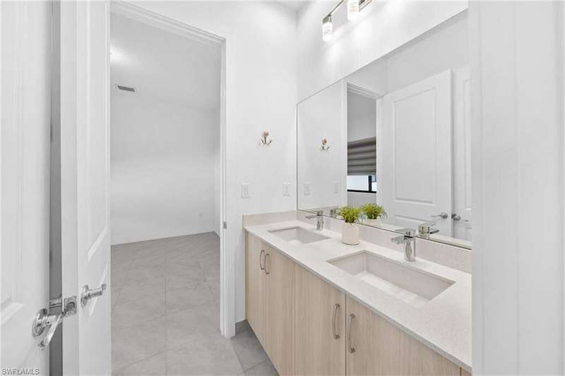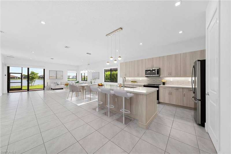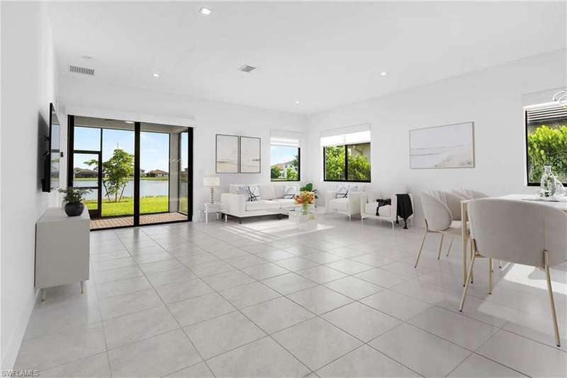 Step into a home with a 5.2% ASSUMABLE MORTGAGE RATE and save BIG!!! Welcome to where chic sophistication meets Florida charm in Maple Ridge of Ave Maria! This stunning 3 bedroom plus den and 2 and a half bath single-family nearly 2,300 Sq. Ft. of living space home, boasts gorgeous tile flooring throughout and is light and bright with tons of natural light. Greetings from the foyer will lead you to the den with elegant French doors to the left and straight to the kitchen and living area. The chef's kitchen will leave the most discerning chefs pleased with its center island, quartz counters, stainless steel appliances, disposal, and plentiful cabinet and counter space. Flanked by the kitchen, the dining room and living area is oversized with access to the enclosed lanai with beautifully idyllic lake views. The primary bedroom is a true retreat with your double vanity, water closet, gorgeous walk-in shower, and large walk-in California closet. Outside, build the pool of your vision! The 2 remaining guest bedrooms enjoy a shared full bathroom with water closet and double vanity as well. Peace of mind is enhanced with an additional powder room, laundry in residence with laundry tub, 2 car garage, and close proximity to not only the clubhouse but Downtown Ave Maria with shopping and dining at your disposal!