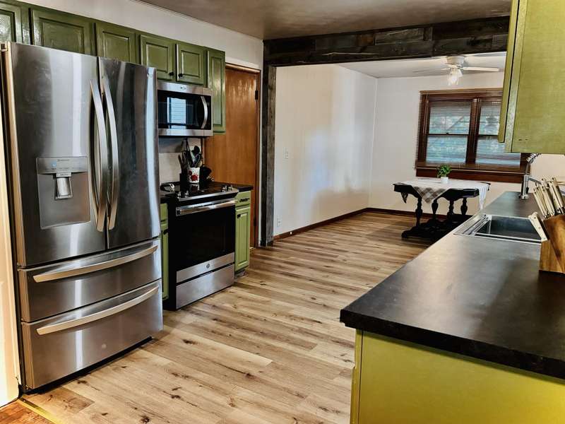 Step into your new home! This beautifully updated 3-bedroom, 2-bathroom home offers 1,544 sq. ft. of spacious living. You'll love the large living room, formal dining area, and updated kitchen featuring new appliances, plenty of cabinets, and gorgeous hardwood floors and trim throughout. All bedrooms are generously sized -- and one includes a built-in loft bed, perfect for a child's room or creative space!Recent updates include a second bathroom, fresh paint throughout, a new HVAC system, and a roof only 5 years old. For added peace of mind, the home is equipped with security cameras that can be connected straight to your phone.Outside, enjoy a large fenced backyard with a patio area -- perfect for entertaining or relaxing. The property also includes a storage shed and an outbuilding with electricity and plumbing ready to be connected.This home truly has it all -- space, updates, security, and charm throughout! Don't miss your chance to make it yours!