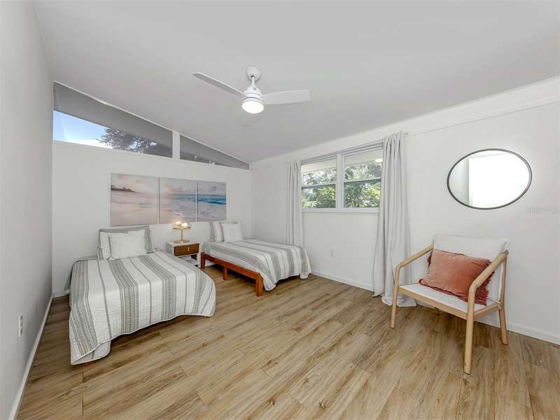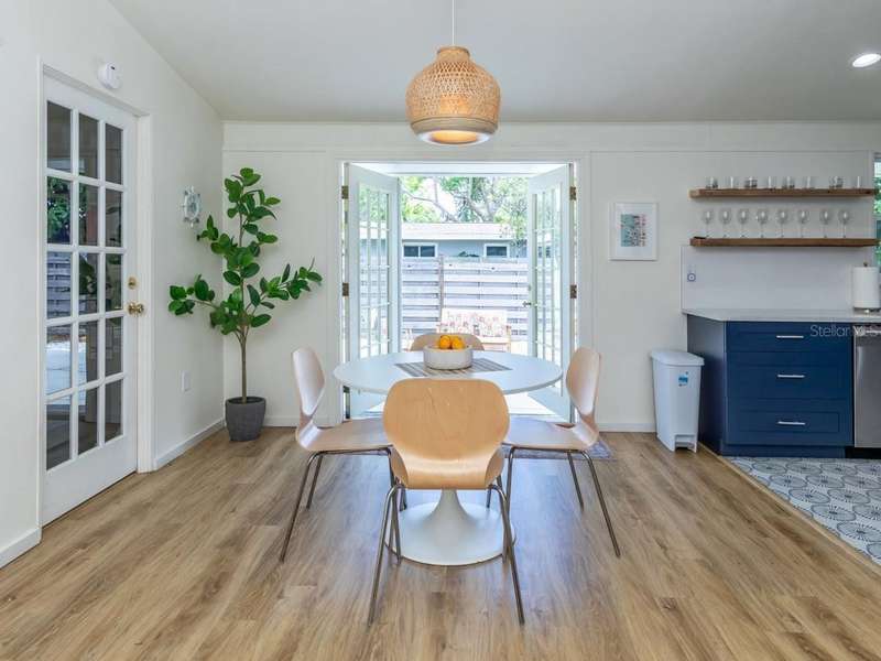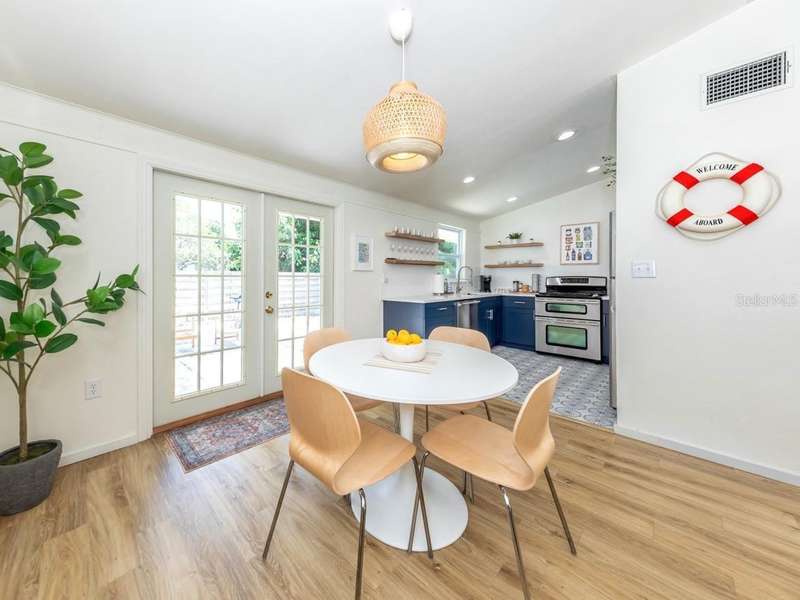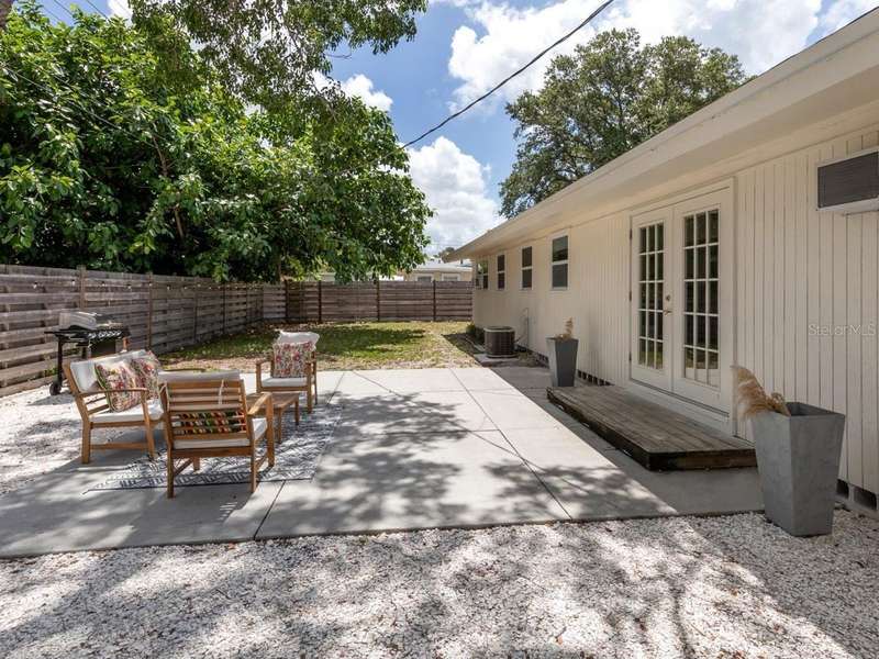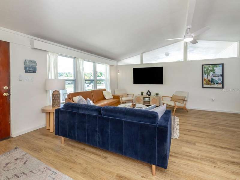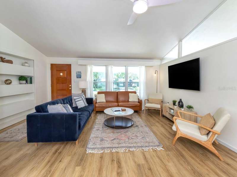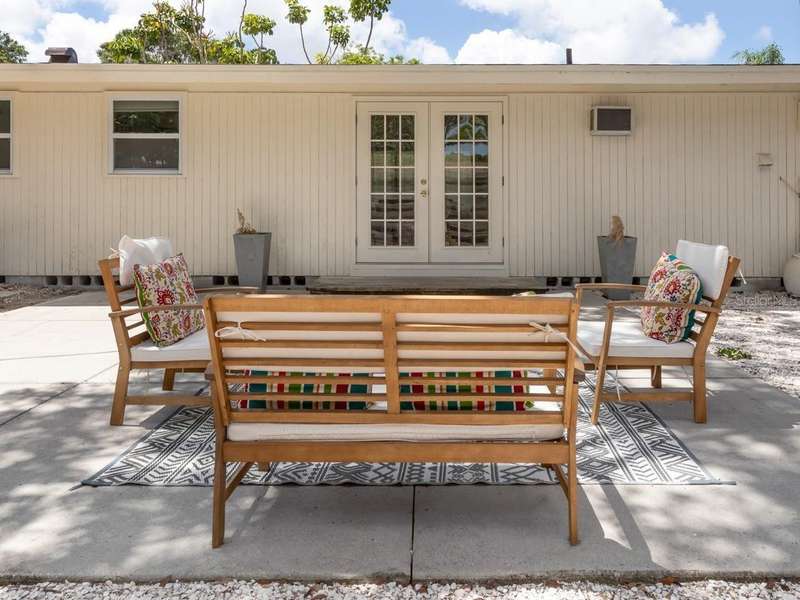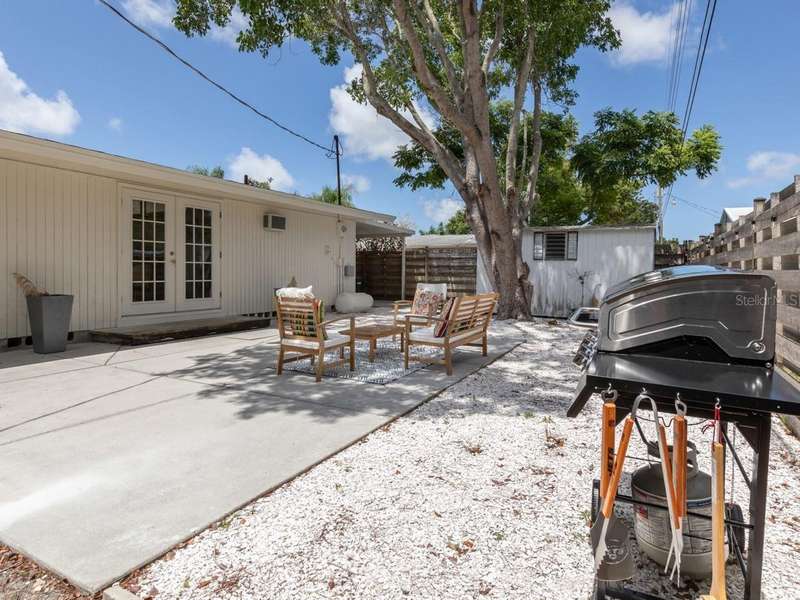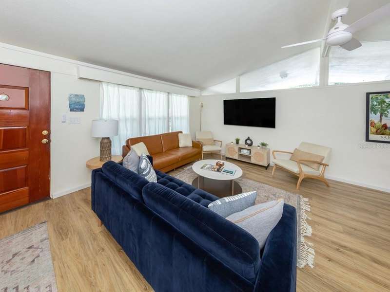 Nestled in one of Sarasota's most sought-after neighborhoods, this recently remodeled midcentury modern home is offered unfurnished or turn-key giving you the option to move right in or to use as your next investment property with a proven rental history of over 30 5-star reviews. Extensive updates throughout the home include a BRAND NEW RHEEM HVAC (2025), a NEWER ROOF (2022), new drain lines/plumbing (2022/2025) and major updates to the kitchen, bathrooms, and bedrooms (2022). Featuring three bedrooms and two full bathrooms, the home showcases vaulted ceilings and transom windows, infusing the space with natural light. The thoughtfully designed layout includes an open-concept living and dining area adjacent to the kitchen, perfect for entertaining. A custom built-in bookcase in the living room doubles as a hidden doorway to one of the bedrooms - ideal for use as a guest room, home office or extended living area. French doors off of the kitchen lead to a spacious and private fenced in backyard with room to create your own private oasis. Additional features include an oversized carport and shed complete with electricity - perfect for storage, hobbies, or a workshop. Located on a quiet street within city limits, you'll enjoy quick access to downtown Sarasota, Paver Park, Southside Village, Sarasota Memorial Hospital, and the famous Siesta Key Beach. The nearby Legacy Trail is just a bike ride away, offering a perfect blend of urban convenience and outdoor adventure. Whether you're looking for your dream home or a high-performing investment property, this is a rare opportunity to own a piece of paradise.