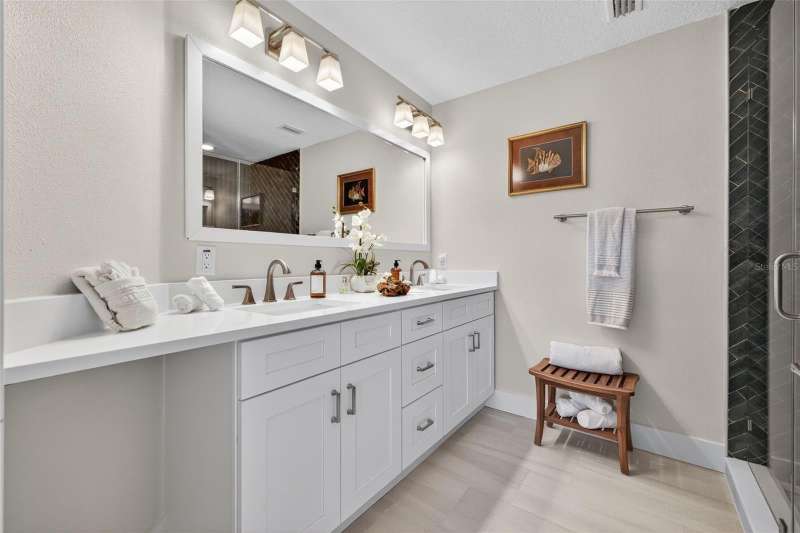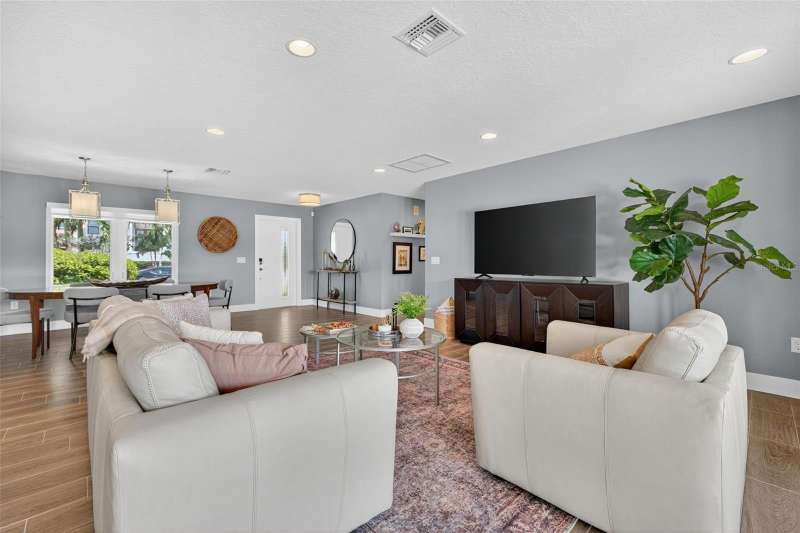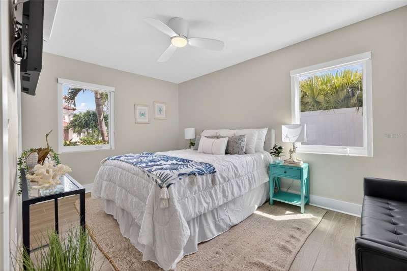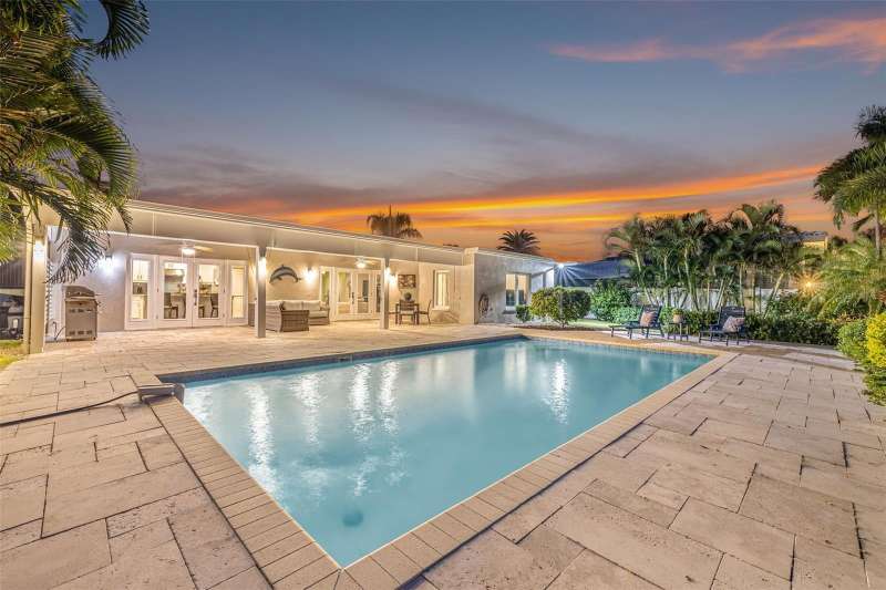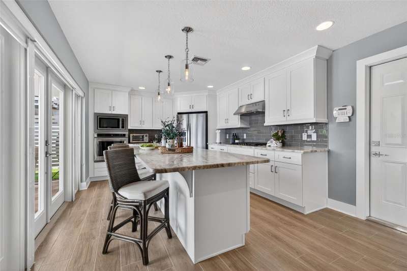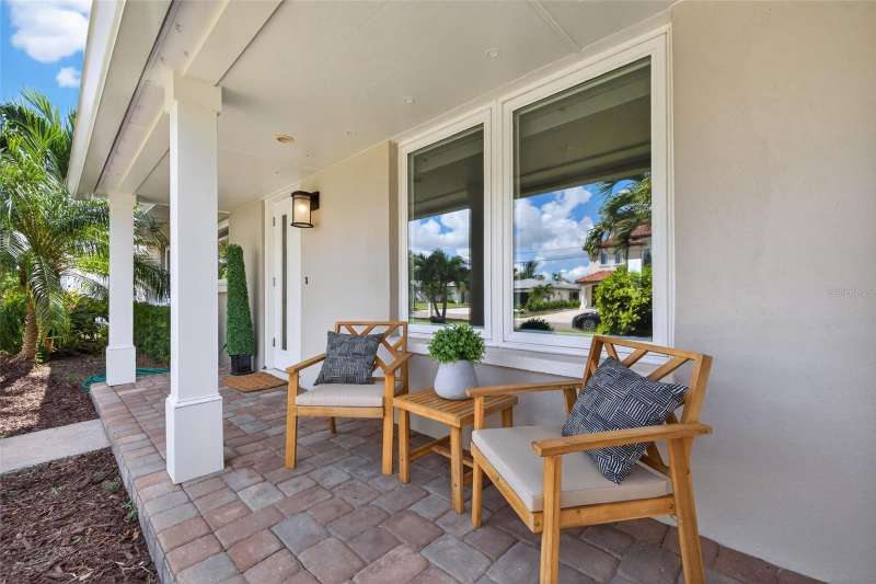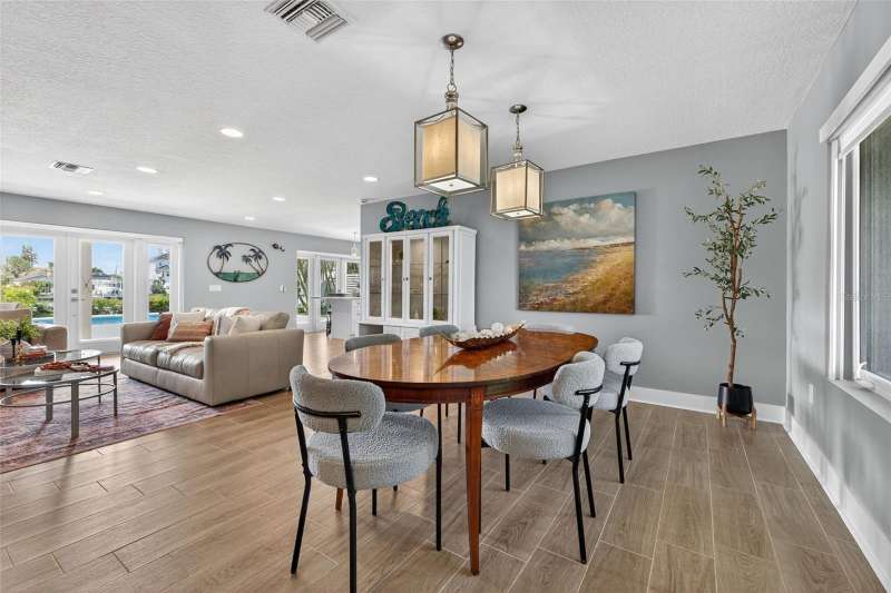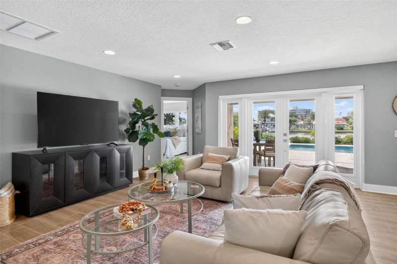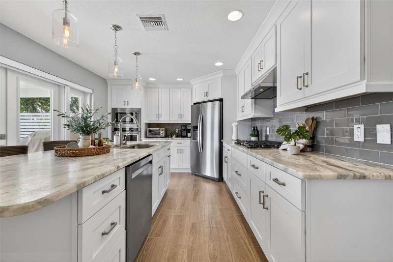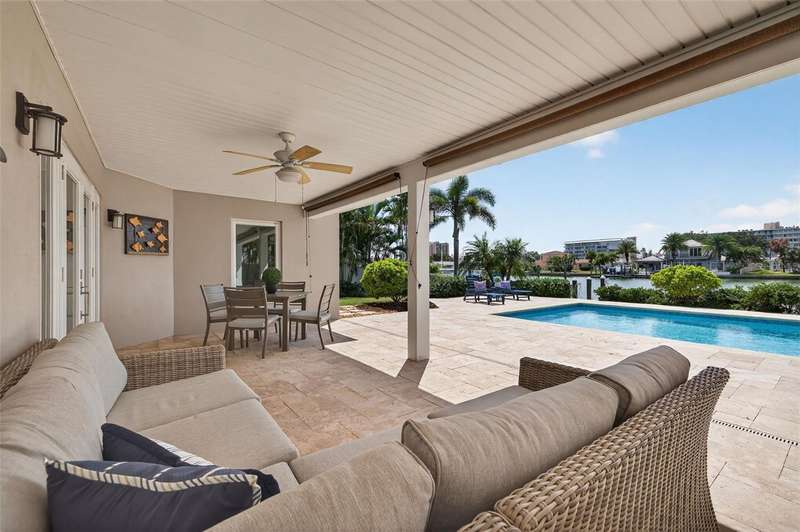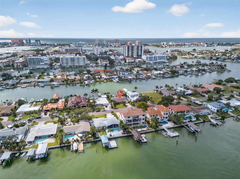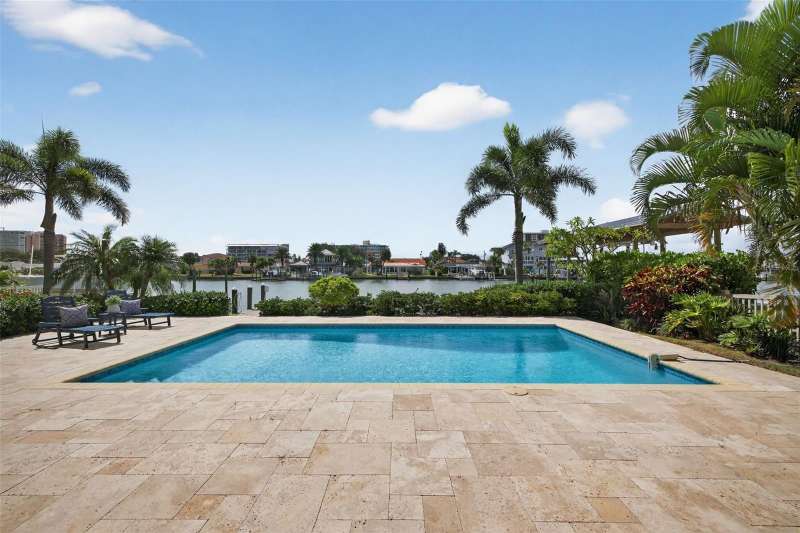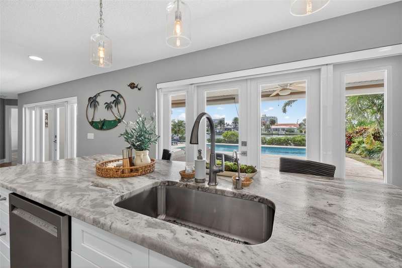 Under contract-accepting backup offers. Experience waterfront living at its finest in this beautifully remodeled Island Estates residence. With three bedrooms, two bathrooms, and refined finishes throughout an airy, open layout, the home is designed to make every day feel like a vacation. Step through the front door and take in sweeping water views and light-filled living spaces, perfect for effortless coastal living and easy entertaining. The kitchen is a true centerpiece, featuring a large leathered-granite island ideal for casual dining, a 4-burner gas cooktop, sleek stainless-steel appliances, abundant storage, and captivating views that make cooking a pleasure. A split-bedroom plan ensures privacy for the primary suite, complete with a beautifully tiled shower and a quartz dual-sink vanity, while comfortable guest rooms and a large indoor laundry room add everyday convenience. Open the back doors to a resort-style backyard with a saltwater in-ground pool, a covered patio, lush tropical landscaping, and seamless canal vistas. Your private dock includes 30-amp electrical service, ready for a future boat lift and ideal for launching kayaks and paddleboards, so you can spend more time on the water and less time in the car. Blending luxury, function, and the best of the Island Estates lifestyle, you are just minutes to Clearwater Beach, dining, and the open water, this waterfront retreat is tailor-made for buyers who want to live where they love to play.