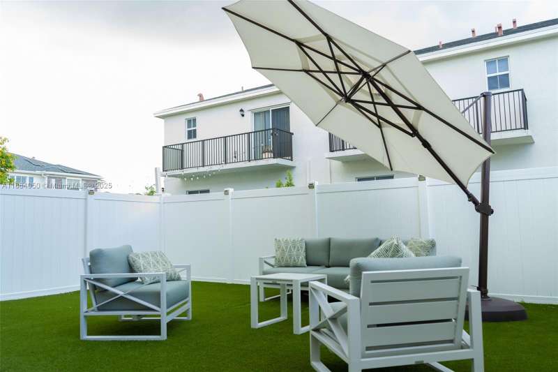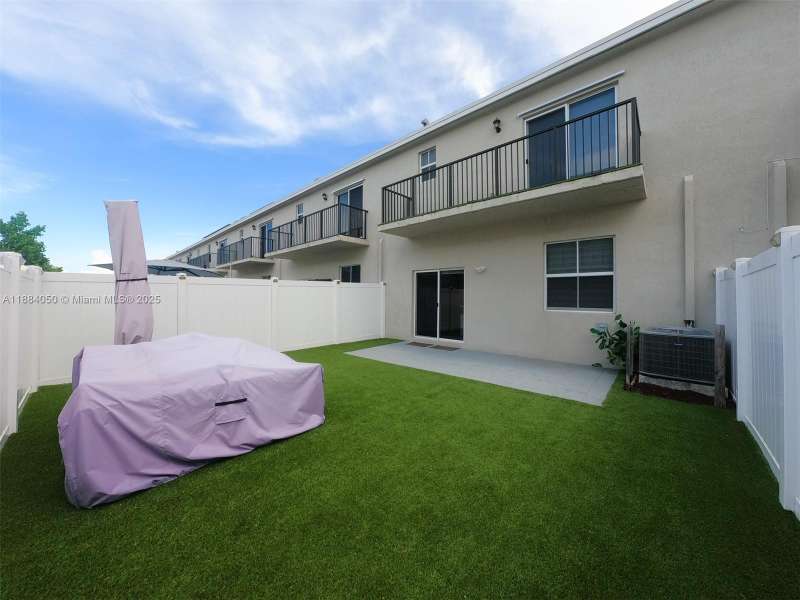 Beautiful 3-bedroom, 2.5-bath home located in a quiet community with low HOA fees. Features a covered garage for 1 car plus space for 2 more. Fully fenced backyard with low-maintenance artificial grass, perfect for relaxing or entertaining. Modern kitchen with stainless steel appliances, washer, and dryer included. The primary bedroom offers a lovely private balcony to unwind. Conveniently located near supermarkets, shops, and everything you need for a comfortable lifestyle. Move-in ready!