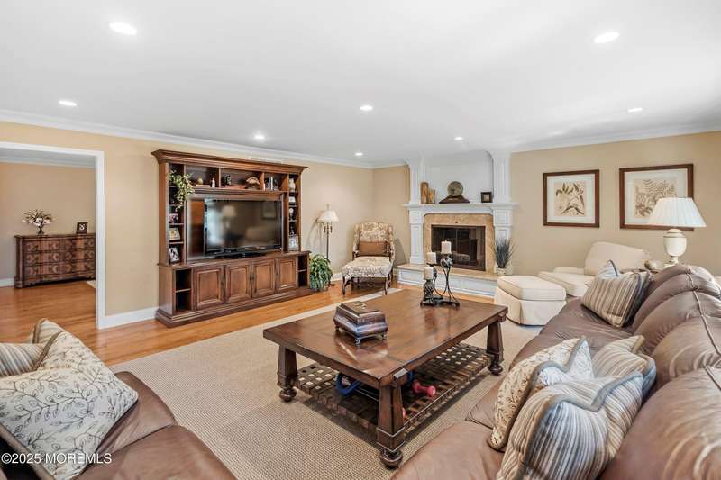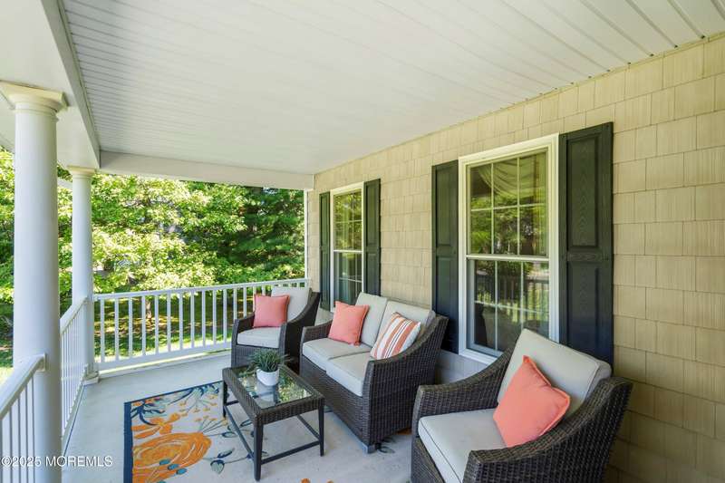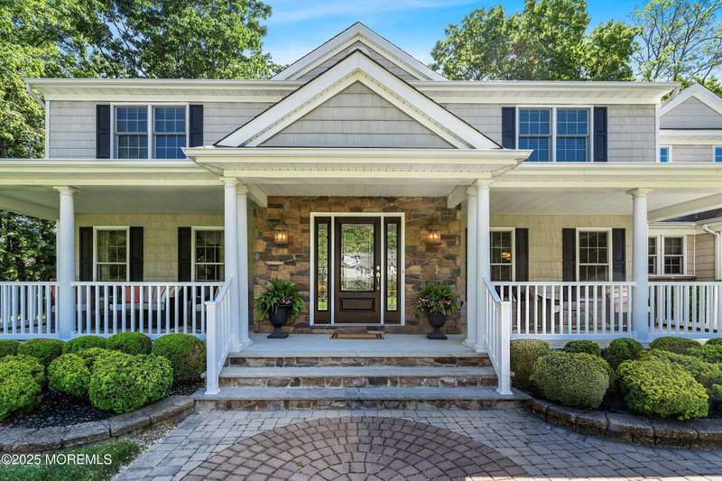 This stunning 5 BR Colonial welcomes you with its beautiful open front porch adding spring/summer extra living space. The center foyer leads to either the lovely living rm or the dining rm w/wainscoting. At the end of the foyer be prepared to be blown away by the fabulous open & well-appointed family rm w/FP and custom mantel & the gorgeous kitchen with a 10' by 45'' center island loaded with amenities. Island holds a one drawer refrigerator/freezer, a one drawer dishwasher, prep sink & drawer microwave. There is full sized Sub-zero refrigerator, Miele dishwasher Wolf cooktop range & double oven, wine cooler etc. There is a comfortable den off kitchen & spacious deck. Yard is 155 x 168 with rm for pool. Primary BR suite offers a vaulted ceiling bath w jetted tub w spa light, and a walk-in shower. The primary BR also features crown moldings, recessed lights and a huge, customized walk-in closet as well as an additional double closet. The other 4 bedrooms are very spacious with double closets, two of which are oversized. The laundry room is conveniently upstairs and features a recessed ironing board, double closet for laundry baskets etc. There is an attic with pull-down stairs. The basement is a full basement with two crawl spaces and can be finished. The half bath on the first level is oversized as it was a full bath prior (piping is in the wall so easy to return to full) but seller preferred a half on first level. This is a truly exceptional home in a beautiful Countryside neighborhood.