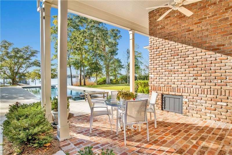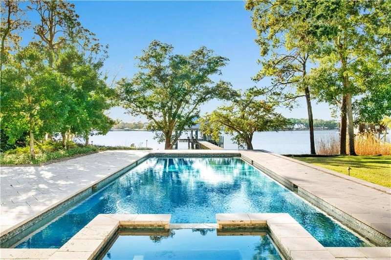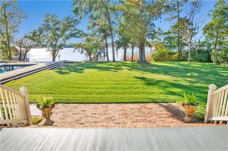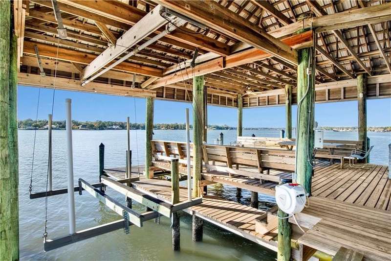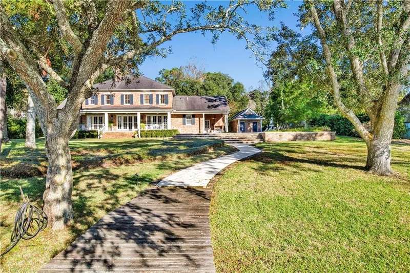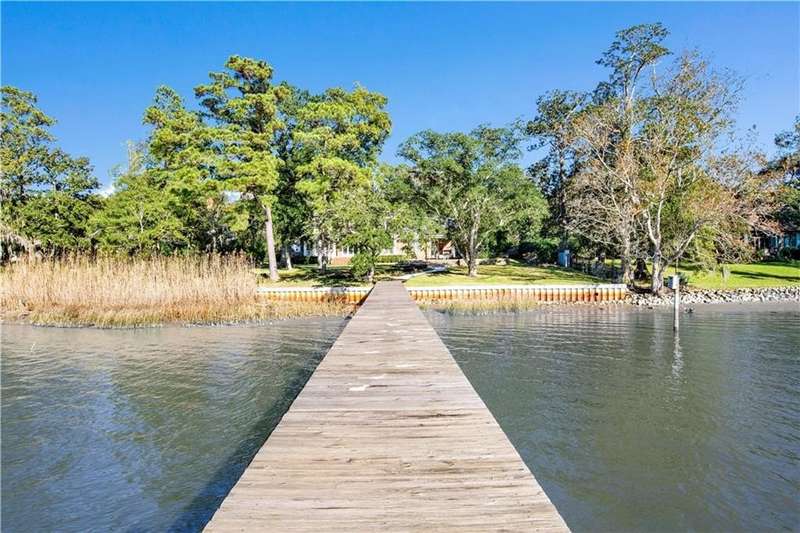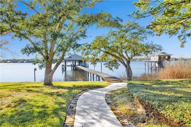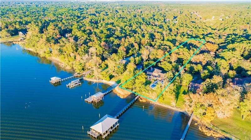 Welcome to this remarkable Dog River estate — a 4-bedroom, 4-bathroom, 2-half-bath 4500 sq ft home gracefully sited on approximately 3 private acres along the wide stretch of Dog River. With deep-water access and gorgeous western views, this property offers an extraordinary blend of privacy, elegance, and waterfront living. A gated entrance and wooded, winding drive lead to a circular driveway and the home’s stately façade of Old Mobile Brick, complete with a sweeping columned front porch — the perfect place to relax and take in the serene setting. Inside, tall ceilings, beautiful hardwood floors, crown moldings, and wood-accented walls highlight the home’s craftsmanship and warmth. From the foyer, breathtaking river views unfold, and every room across the back of the house offers access to the expansive covered porch that runs the length of the home, creating seamless indoor-outdoor living. The main level features a welcoming living room with a gas-log fireplace, a separate dining room, and a handsome study with its own fireplace. The primary suite offers exceptional comfort with separate baths and closets. A well-designed kitchen with a Sub-zero refrigerator and an island and breakfast area overlooks the water, while a spacious laundry with a window & sink has great storage. Upstairs, you will find two bedrooms sharing a Jack-and-Jill bath, a fourth bedroom with an ensuite bath, a large bonus room, and generous attic spaces with incredible potential for expansion or renovation. Outdoor living is equally impressive. Overlooking the river, the spacious covered porch opens to a sparkling saltwater pool with both gas and heat pump systems for year-round enjoyment, along with a pool house that includes equipment storage, a shower room, and golf cart storage. The professionally landscaped grounds, designed by GDSI, are supported by a full irrigation system. On the water, the private wharf is a true showpiece — featuring 6 feet of water depth, 50A power, three covered boat lifts (a new lift for up to 10,000lbs, a Gem Remote Control, 2 smaller lifts for around 23 and 16 foot boats), a bar area for entertaining, storage, water and power access, and a slip large enough for a 60-foot boat with room for expansion. Additional structures add tremendous versatility: a detached studio apartment with kitchen, full bath, plus an attached two-car carport and a two bay enclosed storage building with an attached workshop; and across the circular drive, a second building with a small workshop and single-car carport. For peace of mind, the property also includes a 40kW whole-house generator. This offering is only for Lot 24 and the N half of lot 25River forest subdivision and not for the much larger parcel shown on the tax records. This is an extremely rare opportunity to own one of Dog River’s finest properties, offering a lifestyle of privacy, elegance, and endless possibilities for entertaining both on and off the water. Make your appointment today to see this Dog River beauty!