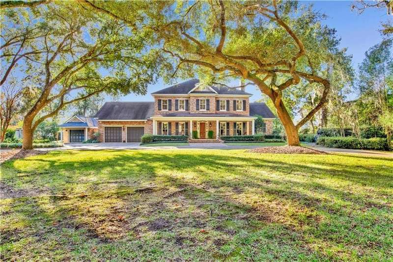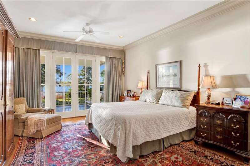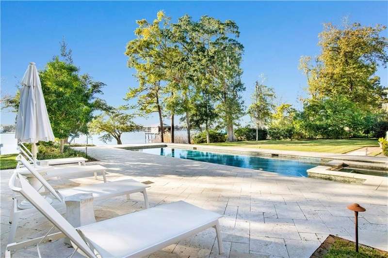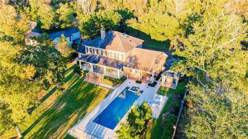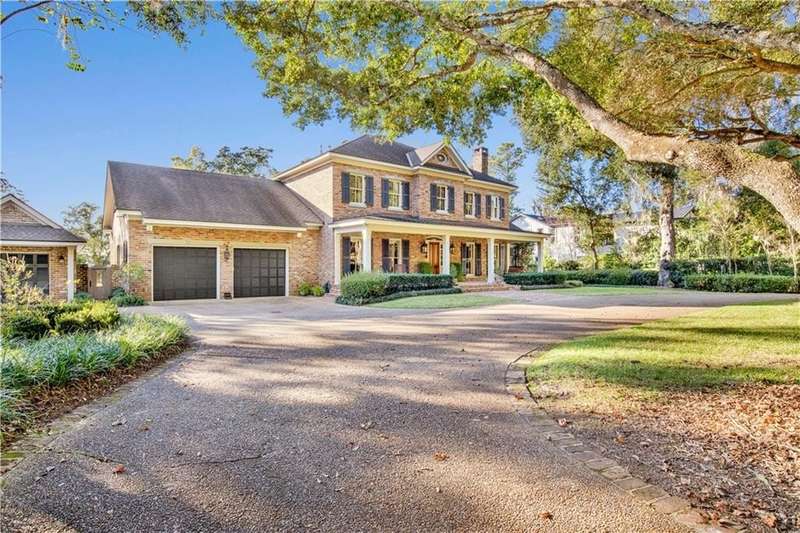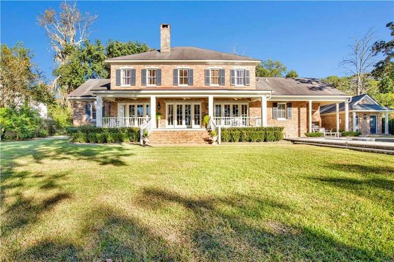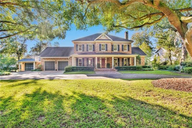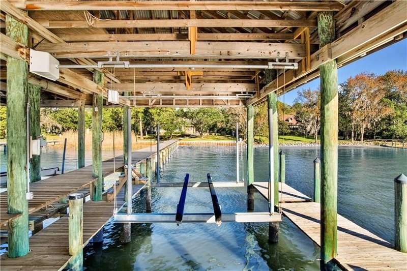 Welcome to this remarkable Dog River estate — a 4-bedroom, 4-bathroom, 2-half-bath 4500 sq ft home gracefully sited on approximately 3 private acres along the wide stretch of Dog River. With deep-water access and gorgeous western views, this property offers an extraordinary blend of privacy, elegance, and waterfront living. A gated entrance and wooded, winding drive lead to a circular driveway and the home’s stately façade of Old Mobile Brick, complete with a sweeping columned front porch — the perfect place to relax and take in the serene setting. Inside, tall ceilings, beautiful hardwood floors, crown moldings, and wood-accented walls highlight the home’s craftsmanship and warmth. From the foyer, breathtaking river views unfold, and every room across the back of the house offers access to the expansive covered porch that runs the length of the home, creating seamless indoor-outdoor living. The main level features a welcoming living room with a gas-log fireplace, a separate dining room, and a handsome study with its own fireplace. The primary suite offers exceptional comfort with separate baths and closets. A well-designed kitchen with a Sub-zero refrigerator and an island and breakfast area overlooks the water, while a spacious laundry with a window & sink has great storage. Upstairs, you will find two bedrooms sharing a Jack-and-Jill bath, a fourth bedroom with an ensuite bath, a large bonus room, and generous attic spaces with incredible potential for expansion or renovation. Outdoor living is equally impressive. Overlooking the river, the spacious covered porch opens to a sparkling saltwater pool with both gas and heat pump systems for year-round enjoyment, along with a pool house that includes equipment storage, a shower room, and golf cart storage. The professionally landscaped grounds, designed by GDSI, are supported by a full irrigation system. On the water, the private wharf is a true showpiece — featuring 6 feet of water depth, 50A power, three covered boat lifts (a new lift for up to 10,000lbs, a Gem Remote Control, 2 smaller lifts for around 23 and 16 foot boats), a bar area for entertaining, storage, water and power access, and a slip large enough for a 60-foot boat with room for expansion. Additional structures add tremendous versatility: a detached studio apartment with kitchen, full bath, plus an attached two-car carport and a two bay enclosed storage building with an attached workshop; and across the circular drive, a second building with a small workshop and single-car carport. For peace of mind, the property also includes a 40kW whole-house generator. This offering is only for Lot 24 and the N half of lot 25River forest subdivision and not for the much larger parcel shown on the tax records. This is an extremely rare opportunity to own one of Dog River’s finest properties, offering a lifestyle of privacy, elegance, and endless possibilities for entertaining both on and off the water. Make your appointment today to see this Dog River beauty!