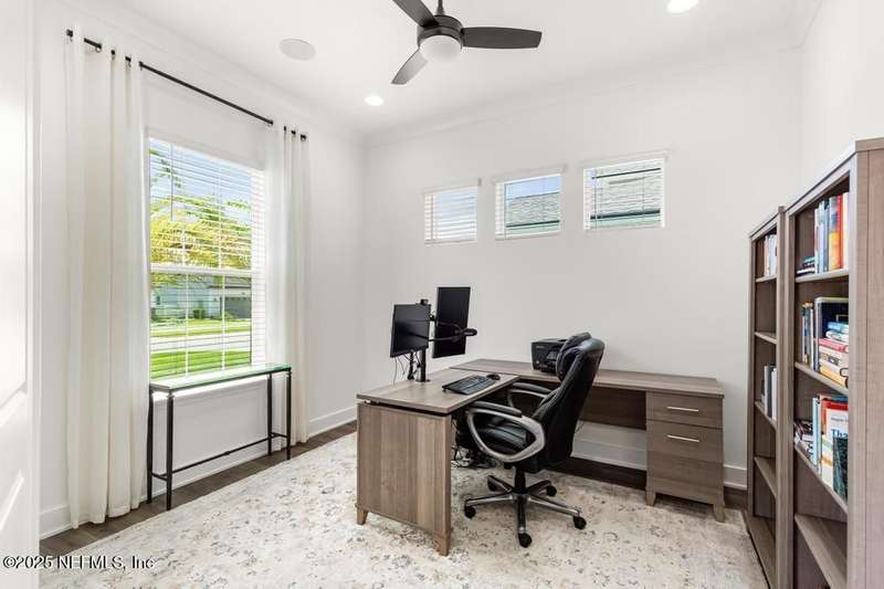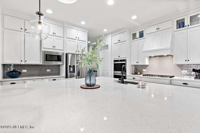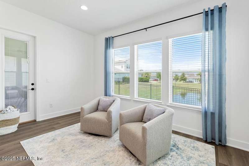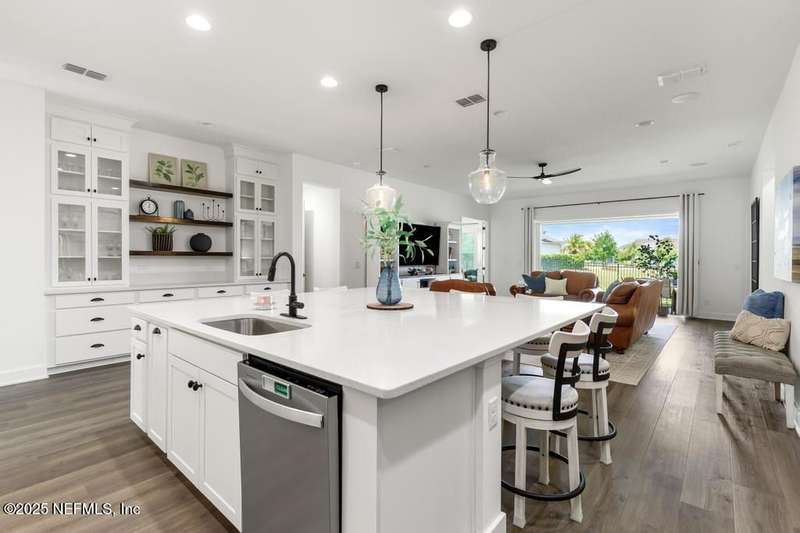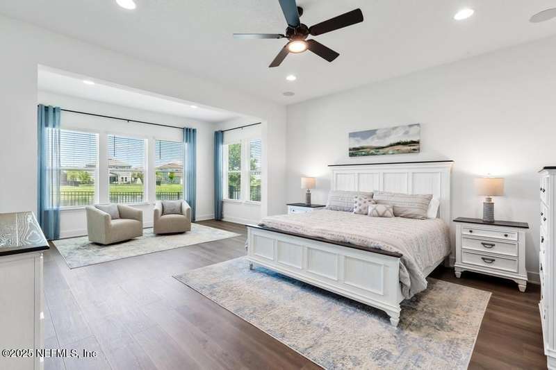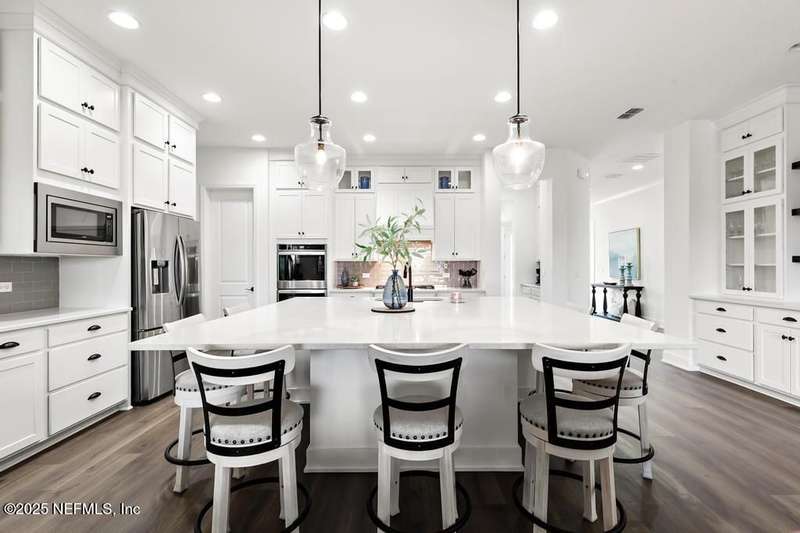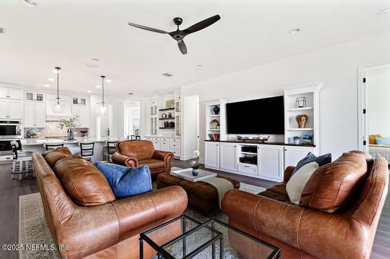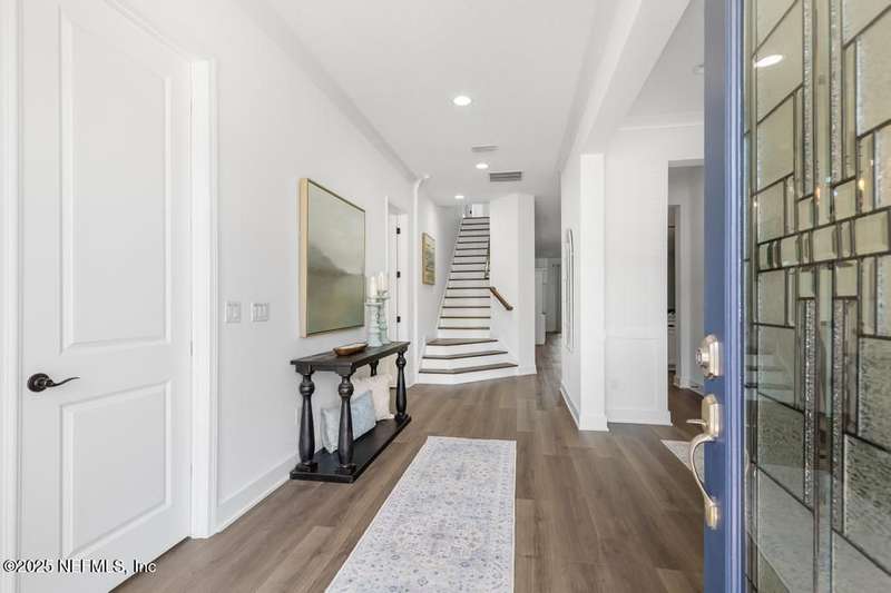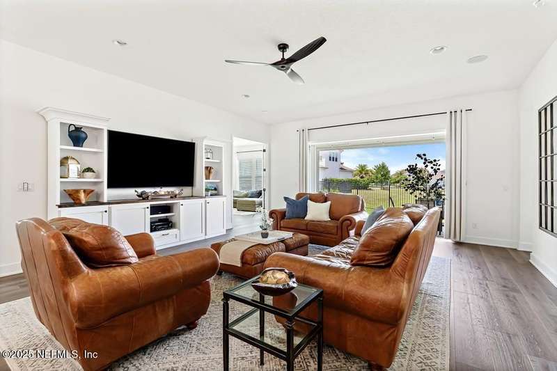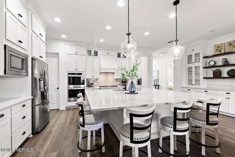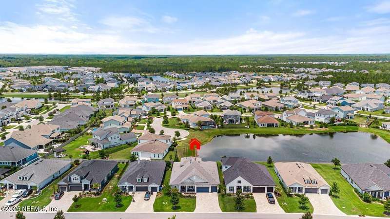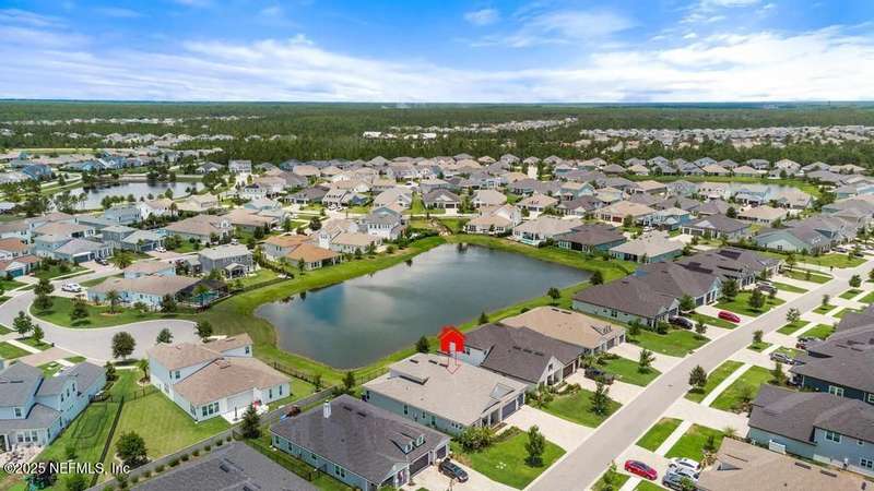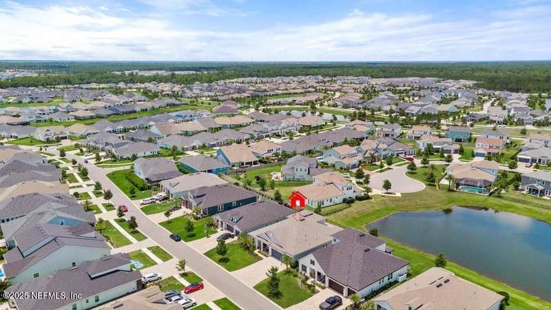 Experience the perfect balance of space, style, and function in this pristine 5 bedroom, 4.5 bath + office home. Thoughtful details include 10' ceilings, crown molding, recessed lighting, and wide plank LVP flooring throughout the main level. The gourmet kitchen is a showstopper featuring ceiling-height double-stacked cabinetry with glass fronts, soft-close drawers, double ovens, a wood range hood, and a butler's pantry with sink. The spacious family room opens through pocket sliders to a covered paver lanai with an automatic retractable screen and a fully fenced backyard overlooking the lake. The primary suite is a true retreat, complete with a sitting area, dual walk-in closets, a garden tub, upgraded dual shower heads, and direct access to the laundry room. Three of the secondary bedrooms are large enough to serve as private suites, while the fourth and fifth bedrooms provide flexibility to function as oversized bonus rooms, media rooms, or guest quarters. Bathrooms feature frameless, tile-to-ceiling showers, and window treatments and ceiling fans are found throughout the home. The flex room and primary suite have both been extended, adding valuable square footage for everyday living. Additional highlights include a soundproofed office, mudroom with built-in bench and storage, in-ceiling speakers on the main level, 5 baseboards, glass double entry doors, and upgraded landscaping with palm trees. Practical features such as a water softener, utility sink in the garage, pull-down attic stairs, and floored attic storage further enhance convenience. Curb appeal is maximized with a paver driveway and front porch.Resort-style community amenities and top-rated St. Johns County schools make this home a standout opportunity.Don't miss the virtual video!Exciting New Amenities Coming Soon!Shearwater residents will soon enjoy incredible new community features just moments away, including a state-of-the-art sports complex with 8 athletic fields (both turf and grass), a running track, and a multi-purpose field. Plans also include 8 pickleball courts, a climbing tower, skate spot, and splash pad perfect for all ages. A brand-new library and community center are also in the works, Plus, new parks and green spaces are being developed to complement Shearwater's already active and outdoor-focused lifestyle.
