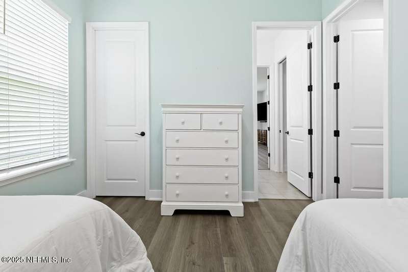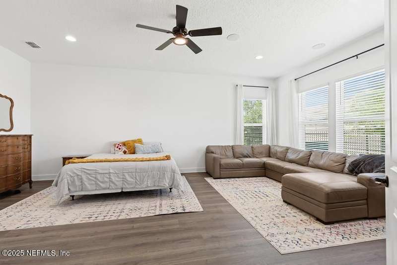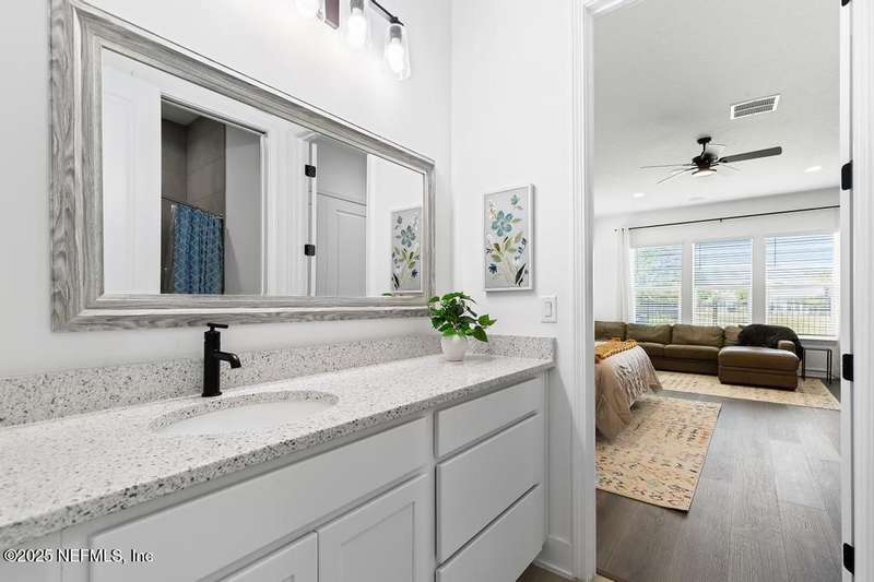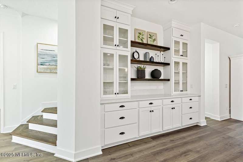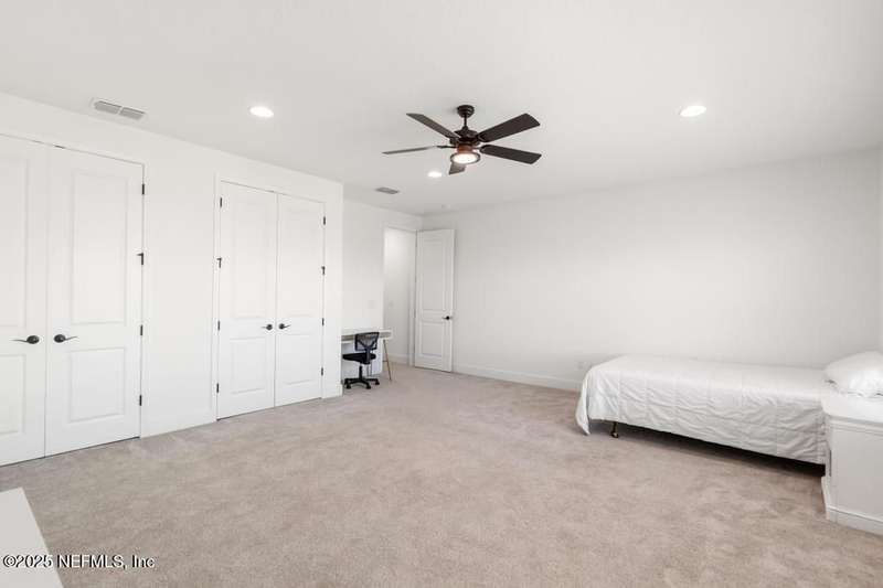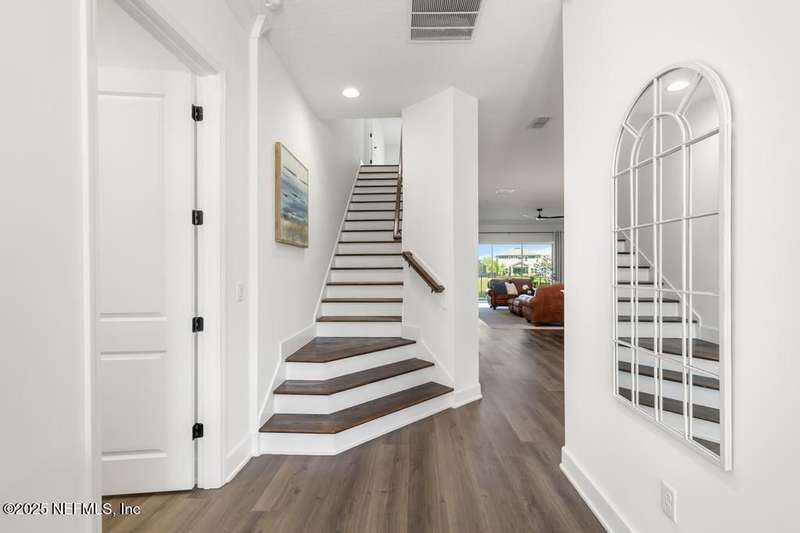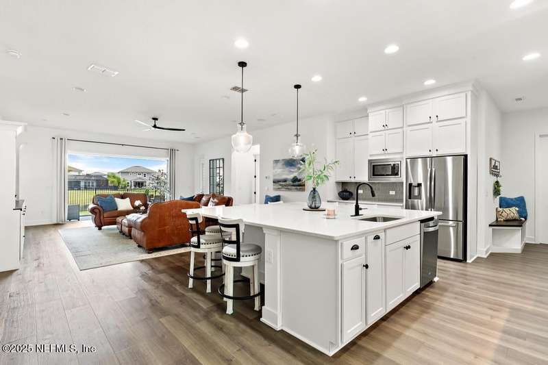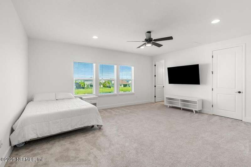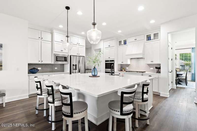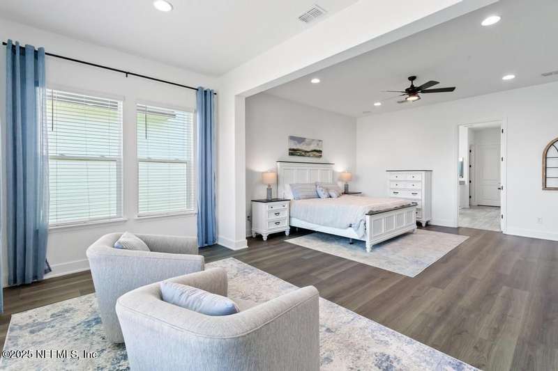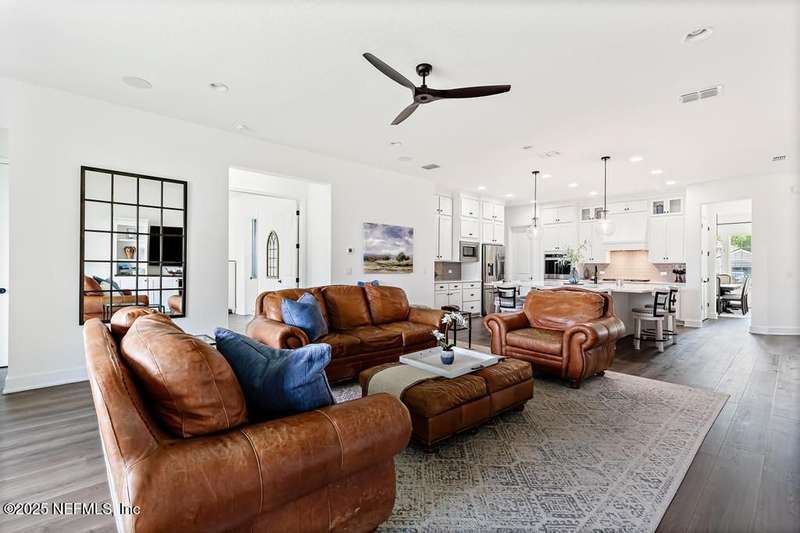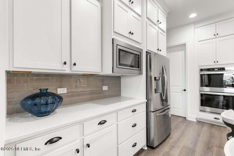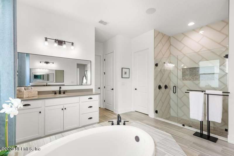 Experience the perfect balance of space, style, and function in this pristine 5 bedroom, 4.5 bath + office home. Thoughtful details include 10' ceilings, crown molding, recessed lighting, and wide plank LVP flooring throughout the main level. The gourmet kitchen is a showstopper featuring ceiling-height double-stacked cabinetry with glass fronts, soft-close drawers, double ovens, a wood range hood, and a butler's pantry with sink. The spacious family room opens through pocket sliders to a covered paver lanai with an automatic retractable screen and a fully fenced backyard overlooking the lake. The primary suite is a true retreat, complete with a sitting area, dual walk-in closets, a garden tub, upgraded dual shower heads, and direct access to the laundry room. Three of the secondary bedrooms are large enough to serve as private suites, while the fourth and fifth bedrooms provide flexibility to function as oversized bonus rooms, media rooms, or guest quarters. Bathrooms feature frameless, tile-to-ceiling showers, and window treatments and ceiling fans are found throughout the home. The flex room and primary suite have both been extended, adding valuable square footage for everyday living. Additional highlights include a soundproofed office, mudroom with built-in bench and storage, in-ceiling speakers on the main level, 5 baseboards, glass double entry doors, and upgraded landscaping with palm trees. Practical features such as a water softener, utility sink in the garage, pull-down attic stairs, and floored attic storage further enhance convenience. Curb appeal is maximized with a paver driveway and front porch.Resort-style community amenities and top-rated St. Johns County schools make this home a standout opportunity.Don't miss the virtual video!Exciting New Amenities Coming Soon!Shearwater residents will soon enjoy incredible new community features just moments away, including a state-of-the-art sports complex with 8 athletic fields (both turf and grass), a running track, and a multi-purpose field. Plans also include 8 pickleball courts, a climbing tower, skate spot, and splash pad perfect for all ages. A brand-new library and community center are also in the works, Plus, new parks and green spaces are being developed to complement Shearwater's already active and outdoor-focused lifestyle.