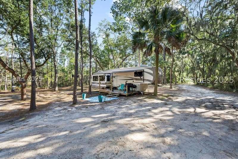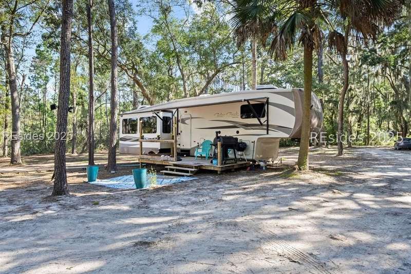Privately gated off exclusive Browns Island Road and along the tranquil waters of the Whale Branch River, 10 Bosquet Marais offers a rare opportunity to own two + acres of stunning legacy land. A setting where time slows, nature reigns, and peace still exists. While the true origin of the river's name remains a mystery, it's believed that early settlers mistook the graceful leaping of dolphins for whales - a testament to the magic that still lives here today. Dolphins are a constant presence in these peaceful waters, their silhouettes gliding past as reminders of the Lowcountry's enduring rhythm. The name "Bosquet Marais"- French for "grove by the marsh"- perfectly captures the spirit of this special property: a serene landscape framed by live oaks and native flora, overlooking vast stretches of spartina grass and tidal flats. Though the ferry that once connected Beaufort to the mainland has long ceased its crossings, echoes of that history linger in the stillness, where small islands of grass and sky reflect in the calm marsh below. As Pat Conroy so beautifully wrote, "Once you have traveled the Lowcountry, you never really leave it. It is always with you, waiting for you to return." This is more than land - it's a piece of the Lowcountry's soul, where legacy and landscape intertwine. Create your retreat, honor the past, and embrace the privilege of sunsets that will never grow old. Property is cleared and has electricity, septic, and county water. 2016 Cedar Creek Fifth wheel with a 8x10 deck and an 8x10 out building with washer and dryer hookup included in sale. Just 3 miles to the famous Lowcountry Produce, 10 miles to the Marine Corps. Air Station & 15 miles to downtown Beaufort.