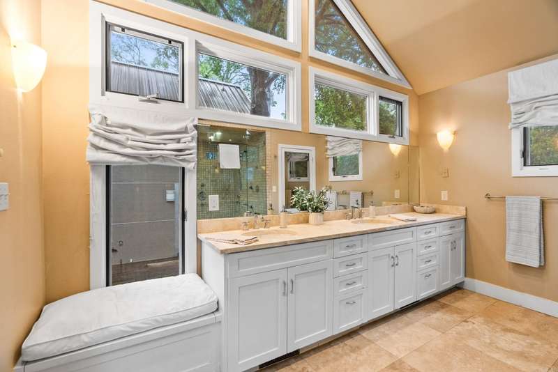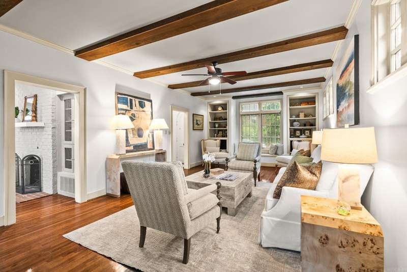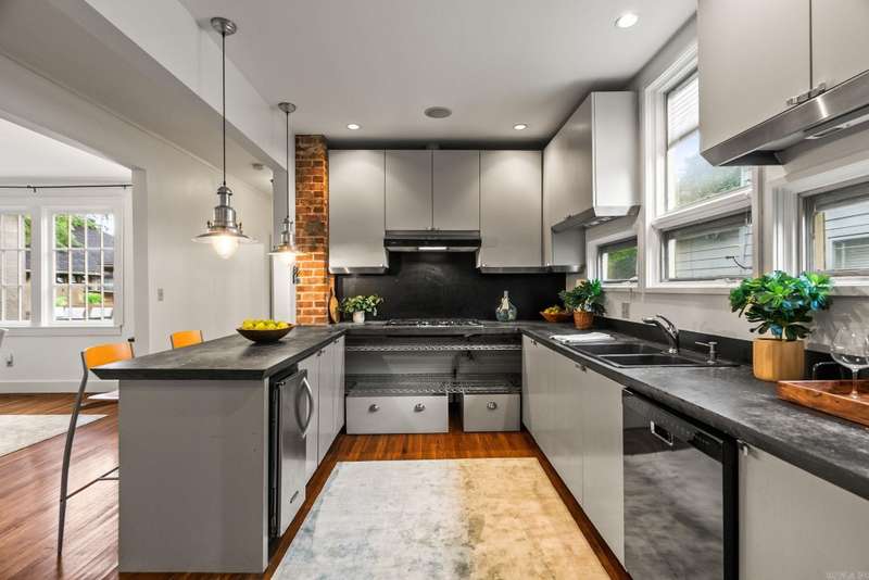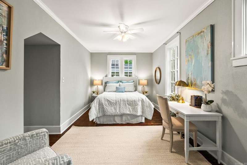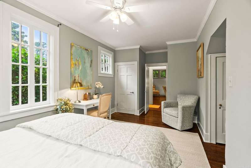 Welcome to this stunning 1921 Hillcrest Tudor Revival home on an oversized lot. This 3 bed/3 bath stucco home is unique with its half-timbering accent. Exposed heavy timber beams, hooded fireplace & window seat are the highlights of the living room. The dining room stands out with its own fireplace & built-in glass cabinetry. The open modern kitchen has concrete countertops, open shelving & built-in wine storage. The primary suite is on the main level with its own fireplace, spa-like bath with steam shower, vaulted ceilings & abundance of closet space! An additional bedroom & bath are on the main level. Upstairs is a private retreat featuring a large bedroom with built-in desk, storage, huge closet & private bath. Throughout the home are beautiful original windows and tongue & groove wood floors. There is an airy sunroom with its own fireplace that leads out to a private concrete patio. Above the 2-car garage that is open to the yard, sits a lovely studio apartment that could be used as a rental. It boasts its own alley entrance with stairs leading up to the 1bed/1 bath, living space, open kitchen, laundry & balcony. This home is truly unbelievable-come see this Hillcrest gem!