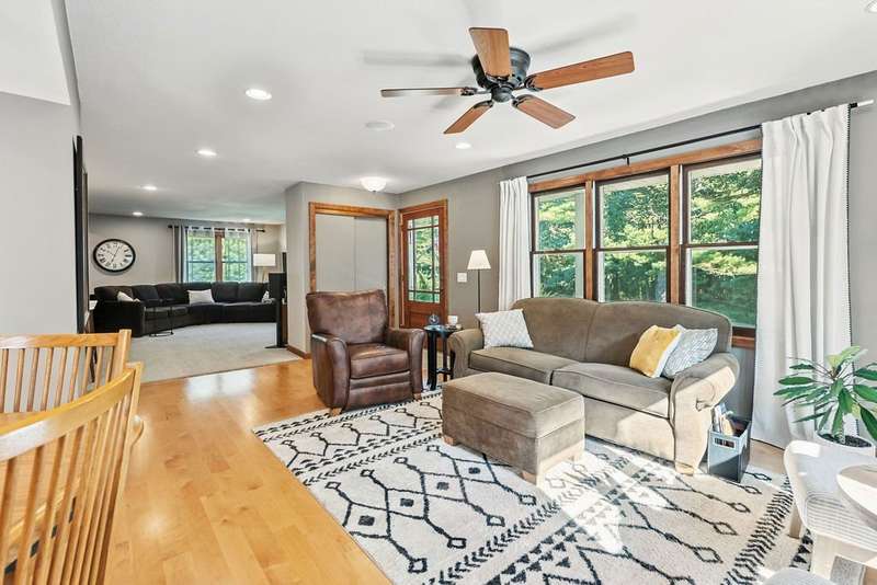 Welcome to your private retreat on 14.65 wooded acres with scenic trails and abundant wildlife. This spacious 4-bedroom, 4-bathroom home blends comfort and nature offering ample room for family living and entertaining. This beautifully renovated home offers open concept kitchen and living room, main level & lower-level laundry rooms, central vac, maple hardwood flooring, custom trim and many updates. Walk-out lower-level rec room with wet bar. Conveniently large mud room. Enjoy your morning coffee or evening breeze on your welcoming front porch, second floor balcony, or in the spacious screen porch. 24x16 Barn with insulated electric & upper-level storage. For those with hobbies, equipment, or business needs, this property offers a separate driveway with a 63x40 Pole Building including office space, bath rough-in, heated shop, 20x10 ft overhead door & 100 amp service. With plenty of space both inside & out, this property is ideal for those seeking privacy nestled among the trees.