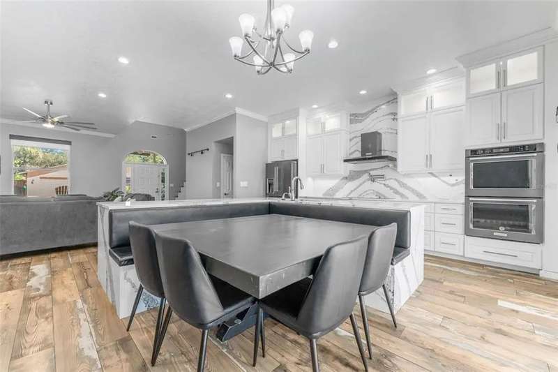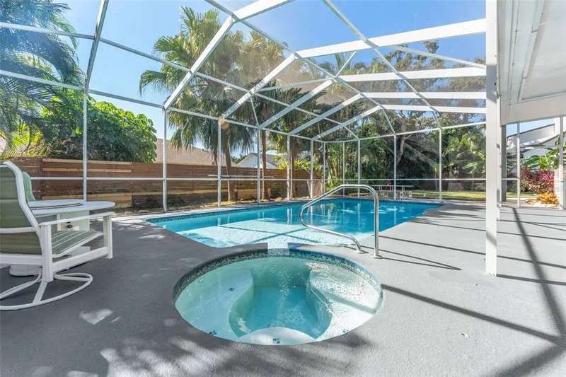 Beautifully updated 4 bed / 3.5 bath, 3-car garage pool home on a DOUBLE LOT. This multigenerational home features two ensuite bedrooms and an open-concept living space updated in 2018, with granite countertops, large island, and new stainless steel appliances. The first-floor primary suite offers a seating area, custom walk-in closet, and spa-like bath with Carrara marble, dual sinks, soaking tub, and separate shower. Additional first-floor highlights include a formal dining area, flex/office space, half bath, and laundry room. Upstairs boasts a loft, spacious bedrooms with bay windows, and an updated bath with Carrara marble and dual sinks as well as the new en-suite and bathroom. Step outside to a screened pool and spa area perfect for entertaining, with a covered patio, tropical landscaping, irrigation. Upgrades include roof (2015), new AC (2024), water heater (2021), energy-efficient windows, and professionally landscaped yard. Double lot (160’ x 70’). This home DID NOT flood during Helene or Milton! Close to beaches, shopping, and dining. This hidden gem won’t last!