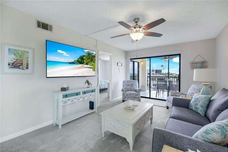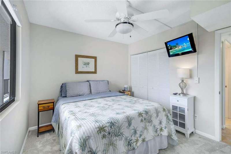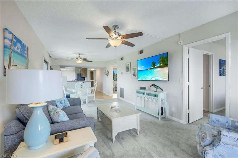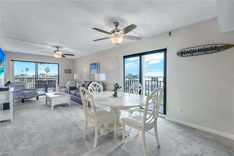 Fairview Isles Condo with ideal central location on the southern end of Fort Myers Beach, just across the street from the white sandy beaches & spectacular sunsets, where the Gulf of Mexico is your backdrop. This 2nd floor corner unit with screened-in lanai & balcony, overlooks from a distance, the LARGE community pool, clubhouse, tropical landscaping & other amenities the community provides. Being offered turnkey, this 2 bedroom/2 bathroom unit is move-in-ready for your immediate enjoyment. Each owner has the convenience of an assigned, covered, under-building parking space and ample guest parking. If you prefer not to drive, there's a trolley service that regularly runs the length of the island, including San Carlos Island & Lover's Key plus, provides access to the many shops, restaurants, marinas & other points-of-interest in the area. Timing is everything, so come, see & participate in all that is going on, as well as the future opportunities of Fort Myers Beach.