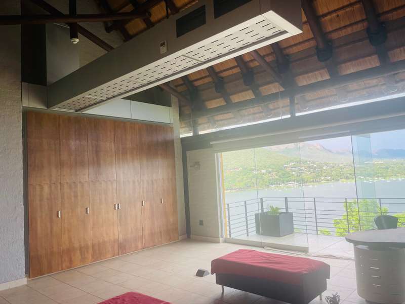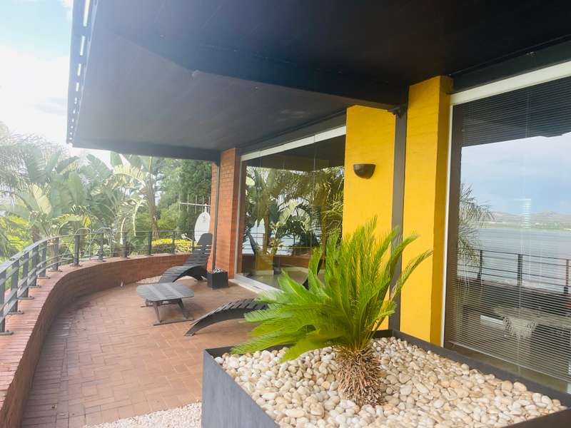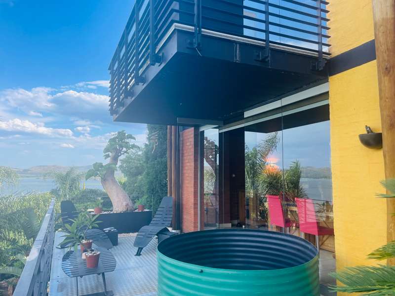 Welcome, to this beautifull tripple story house in Hartbeespoort. This house offers 2 spacious bedrooms. The main bedroom offers, an en-suite bathoom, fire place and has underfloor heating. It also has a balcony, with a stunning view to the dam. Middle floor offers an open plan dinning room, kitchete and a bar. It has a balcony, that goes around to the full house and a beautiful view to the dam. Ground floor offers a gym, swimming pool, jacuzzi, a bar, built in braai and a guest bathroom as well as a balcony with beautiful view to the dam. The property has servant quaters with a laundry room. This beautiful house has a one bedroom flat outside, with a kitchen, bathroom and fire place inside. The house has 2 garage, and 2 seperate parking outside. All doors are glass doors!! Come and enjoy your stay in this beautiful house, with a beautiful view to the dam. Call agent for viewing arrangement.