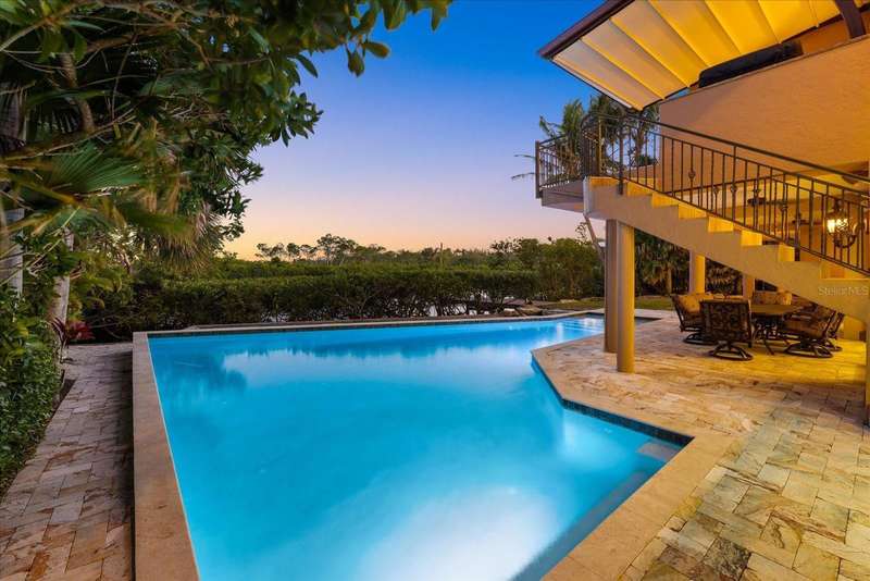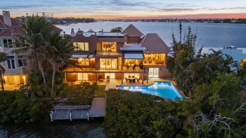 Welcome to 1364 Point Crisp, a breathtaking waterfront home on one of the most private and interesting streets on Siesta Key. With only seven homes on this secluded section of road, you’ll enjoy peace, quiet, and incredible views of Little Sarasota Bay and the Intracoastal Waterway. Watch sailboats glide by or fishermen return from a great day out in the Gulf. This home is a boater’s dream, featuring a 16,000# boat lift and a 10,000# personal watercraft lift not to mention a separate day dock and kayak Launch in the back yard. The heated saltwater pool was custom built and features a spacious deck, and plenty of room to entertain family and friends. Relax on one of the two large second-floor balconies with an outdoor grill area and roll-down screens—perfect for enjoying a glass of wine while watching the sunset. Other features include: a 100KW Kohler commercial backup generator powered by natural gas, Impact-rated doors and windows, well water for irrigation and city water access at multiple points, including the dock. Six climate-controlled garage spaces plus tons of extra storage on the first level, with easy access to the backyard and pool. Inside, with an elevator serving all levels of the home, you’ll find 4 spacious bedrooms, 5 full bathrooms, and a modern kitchen with a Sub-Zero refrigerator, Thermador induction cooktop, and GE Monogram appliances. The wet bar includes a beverage fridge and extra storage—perfect for entertaining. This home has been meticulously maintained and offers countless hidden conveniences that make life easier. Don’t miss your chance to own this incredible waterfront retreat!