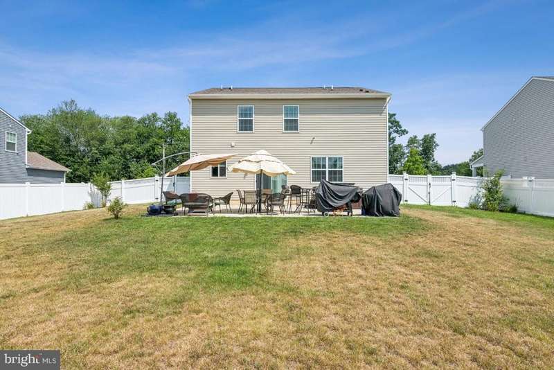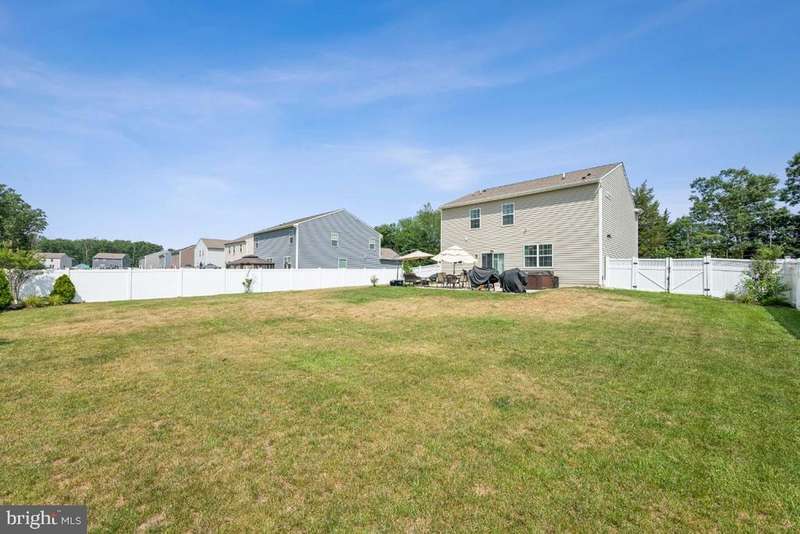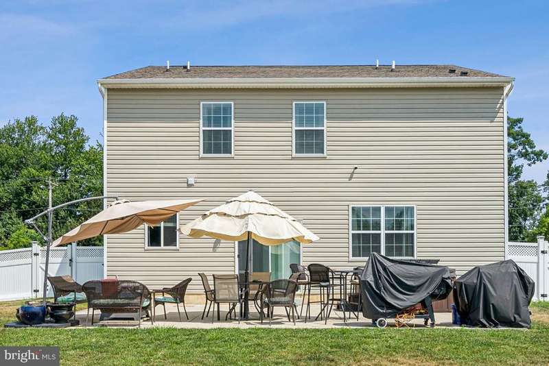 Built in 2019 and thoughtfully upgraded throughout, this beautiful two-story home in the sought-after Twelve Oaks community offers a perfect blend of modern comfort, style, and convenience. Step inside to 9-foot ceilings on the main level and floor plan designed for everyday living and entertaining. The kitchen boasts stainless steel appliances, a generous walk-in pantry, and sliding glass doors that lead to a stunning 30x20 concrete patio with a stone edgecomplete with a hot tub and a fully privacy-fenced backyard, ideal for relaxing or hosting gatherings. Upstairs, you'll find all bedrooms tucked away for privacy, along with a convenient second-floor laundry room. The spacious primary suite features brand-new flooring, a walk-in closet, and a fully upgraded en-suite bathroom with gorgeous tile work extending to the ceiling. Other highlights include a 7-zone lawn sprinkler system, plenty of closet space throughout, a two-car garage, and attractive exterior finishes including stone, vinyl, and cedar impressions that add curb appeal. Perfectly located just minutes from local schools (with the high school just down the road), shopping centers, and offering easy access to Philadelphia and the Jersey Shore, this home truly checks all the boxes.