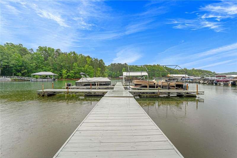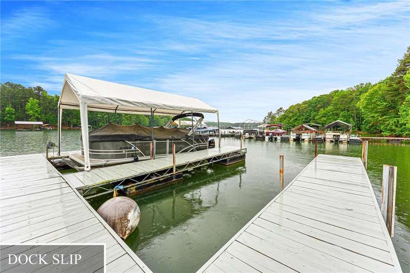 Here is your opportunity to own a unique home on extra-large lot with gorgeous trees and privacy, also includes a boat slip at community Marina. Home is multi leveled and has amazing potential. Needs some work but mostly cosmetic in nature. Front door entry leads you to two bedrooms and bathroom all of which are nice sized. Step down to the great room and kitchen area with a separate laundry off the kitchen. Large living space is perfect for oversized furniture. The expansive deck will greet you with gorgeous views and ample room for table and seating area to accommodate entertaining or a quiet dinner. Relax and enjoy nature or step down into the lush backyard and check out the outdoor fire pit nestled in the woods. Enjoy an evening roasting marshmallows or just unwinding with your favorite beverage. The third primary bedroom is on the second level and offers a private deck and full bathroom. Lake Hartwell, boat slip, community pool, close to I-85 with easy access to Atlanta or Greenville, what more can you ask for especially at this price!