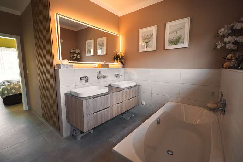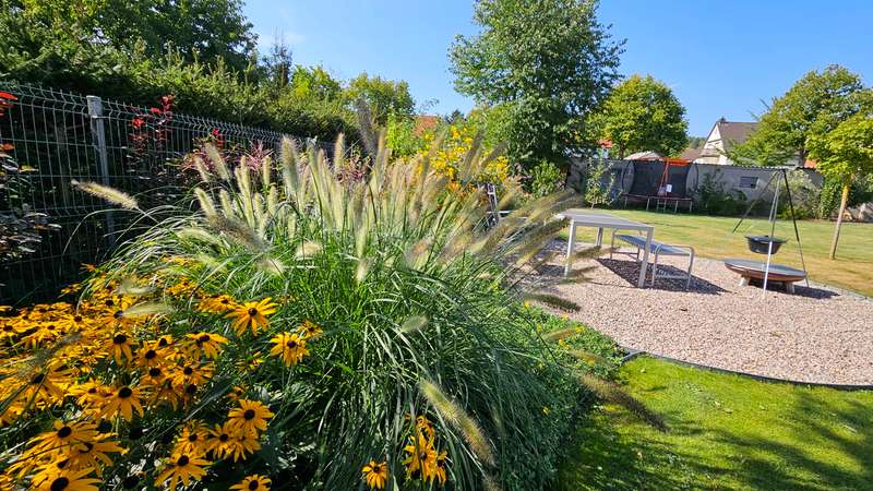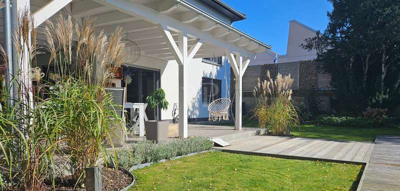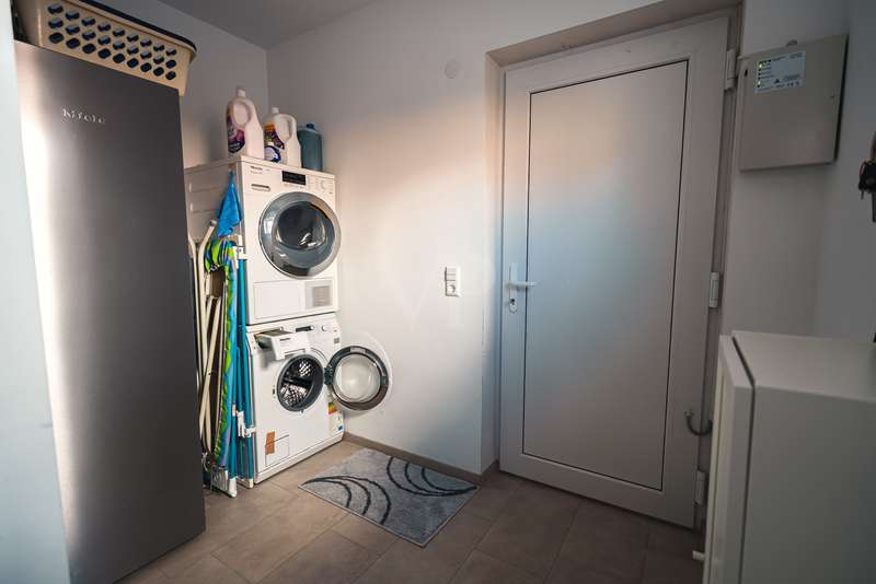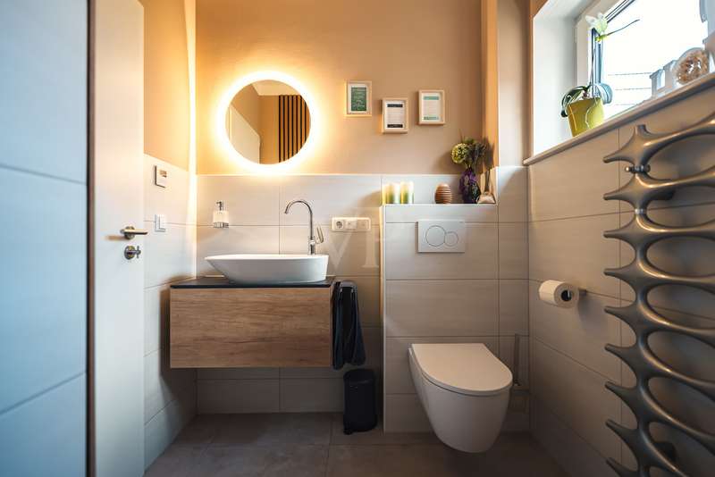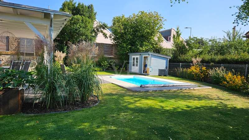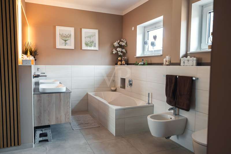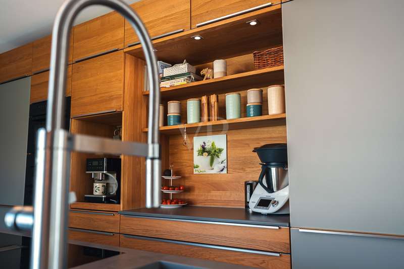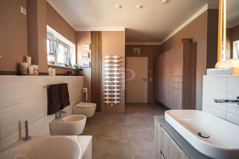 Exclusive new-build property in the heart of Stadtilm - your dream city villa with exceptional comfort and luxury This impressive new-build property, completed in 2021, combines the highest quality, modern architecture and innovative comfort in one of the most sought-after locations. The town villa was built in solid construction with Poroton and represents a true gem on the real estate market with its well thought-out room layout and exquisite furnishings. Highlights of the property: Solid construction with Poroton: Stability, durability and energy efficiency come together in this high-quality built urban villa. The building was constructed using state-of-the-art construction methods, which not only ensures a comfortable living environment, but also guarantees long-term value appreciation and sustainable use. Generous living space and garden: With a living space of 177.31 m², this property offers a generous room layout that leaves nothing to be desired. The 1431 m² plot allows for a high quality of life and offers enough space for your personal retreat and development opportunities. Energy efficiency and sustainability: Equipped with an air/water heat pump including a combined storage tank and underfloor heating throughout the house, this home not only offers a comfortable indoor climate, but also excellent energy efficiency. The windows with triple insulating glazing and integrated sun protection also help to reduce energy costs. Innovative technology: KNX building automation ensures maximum convenience. You can control the lighting, heating and even the blinds at the touch of a finger, allowing the home to be perfectly adapted to your needs. Stylish interior design: The interior impresses with the use of high-quality materials, including fine tiled floors and a high-quality real wood kitchen with built-in appliances from the Miele brand that leaves nothing to be desired. This first-class equipment is rounded off by modern design accents and well thought-out details that lend the interior a timeless elegance. Another highlight is the high-quality bathroom fittings which, like the sink units in the utility room, are already included in the purchase price. Exclusive outdoor area: The outdoor area was planned by an architect and realized with renowned companies. A rainwater cistern ensures sustainable irrigation of the garden, and the automatically irrigated planting areas provide a green oasis. The lawn is maintained by a robot mower, so you have more time to enjoy the beauty of your garden. Spacious patio area: The spacious patio area, which is an extended living room in summer, is not only the perfect place to spend relaxing hours outdoors with a walk-on wooden patio cover, but also offers potential for expansion. The covered terrace on the first floor could be used for a spacious terrace on the upper floor, creating additional space for your individual wishes. Saltwater pool with counter-current system: A real highlight of this property is the 6x3 meter heated saltwater pool with a counter-current system, which has been set into the ground. Surrounded by a durable larch wood plank surround, which also serves as a sun deck, the pool offers a luxurious place to relax and enjoy sporting activities. A heat pump ensures pleasant water temperatures, allowing the swimming season to be extended. The technology for the pool is located in the adjoining garden shed, which also offers practical added value. Expansion potential: The property has numerous parking spaces and a garage complex. This is also part of the property and therefore represents an additional option for your individual needs. Of the 8 garages available, one is currently used as a passageway and one as a storage facility for wood, meaning that 6 garages can be used as parking spaces. Conclusion: This exclusive urban villa from 2021 sets standards in terms of comfort, luxury and sustainability. It combines innovative technology, a well thought-out room layout and high-quality furnishings with an outdoor area that leaves nothing to be desired with a saltwater pool, a spacious terrace and a professionally landscaped garden. The property not only offers a luxurious living experience, but also the potential for individual adaptations and extensions. A home that meets the highest standards and is ideally equipped for the future. Don't miss out on this unique opportunity and arrange a viewing today!