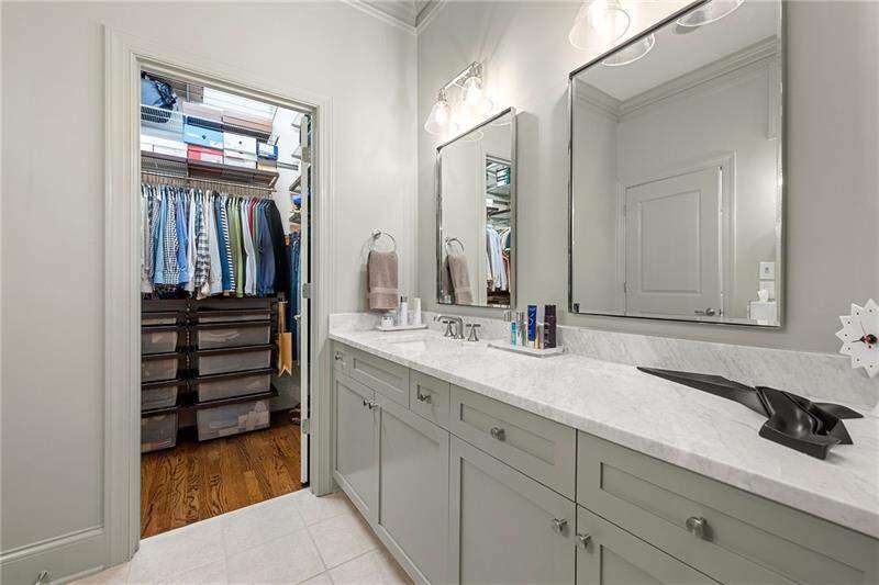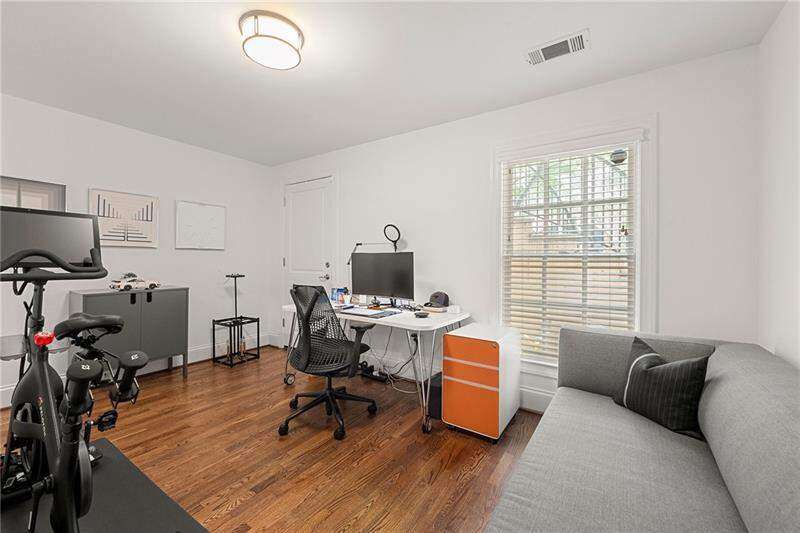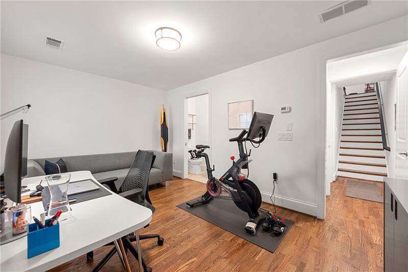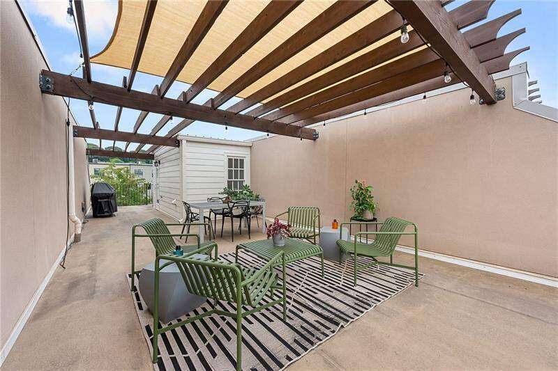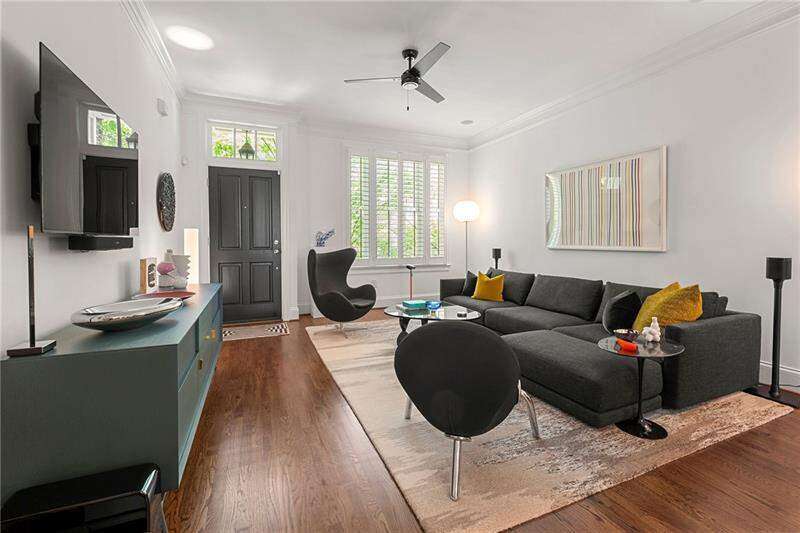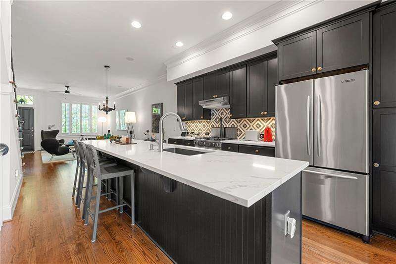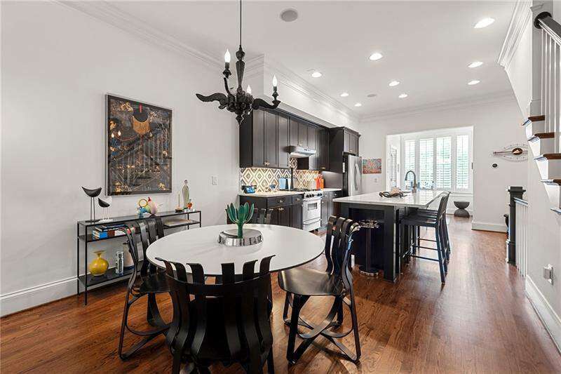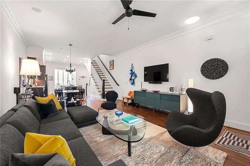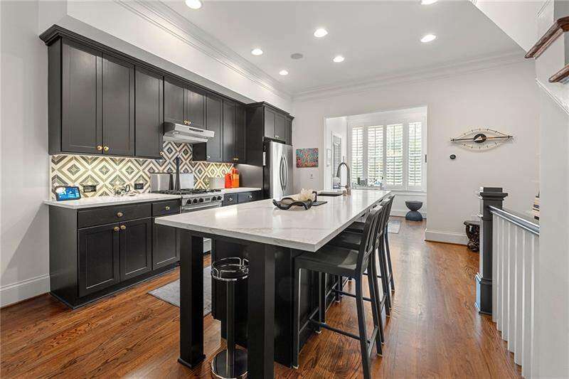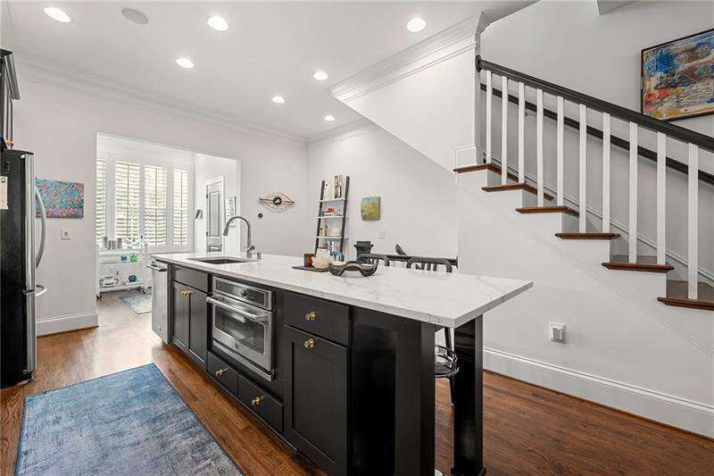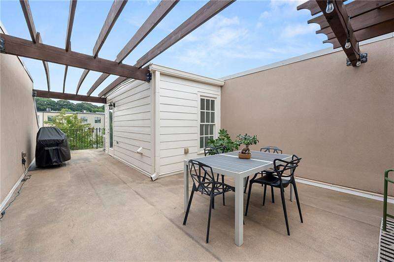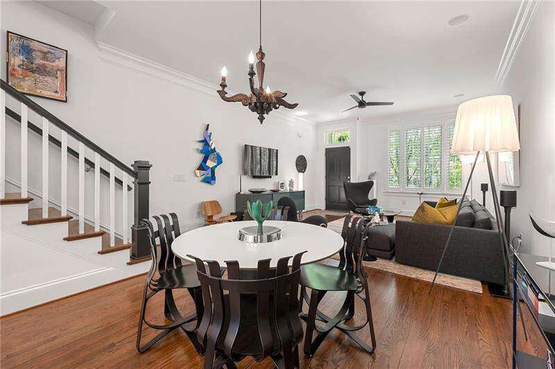 Front-row access to the Beltline, inspired design by Historical Concepts, and a standout location in Glenwood Park make this row home a rare find in the city. The classic brick exterior and curved stone staircase create a memorable entrance, leading into a beautifully updated interior featuring over $65K in recent upgrades. The home features 10' ceilings, crown moldings, hardwood floors throughout, and natural light in every room. The main level has an open-concept layout with a spacious living area, a dedicated dining space, and a remodeled chef's kitchen with quartz countertops, tumbled marble backsplash, an extended island, Rejuvenation hardware, and high-end appliances, including a gas stove. It's ideal for everyday living or entertaining in style. Upstairs, the primary suite includes two custom closets and a renovated en-suite bath featuring honed Calacatta marble, dual vanities, and a large walk-in shower. A secondary bedroom with its own updated full bath offers comfort and privacy. The rooftop terrace brings a private outdoor element to the home, with a refinished cedar pergola and generous space for lounging, dining, or enjoying fresh air above the treetops. On the first level, a third bedroom with a renovated full bath and separate street-level entrance creates a flexible space for guests, a home office, or rental opportunity. The two-car tandem garage and ample guest parking offer convenience rarely found in intown living. This home is the definition of move in ready! Glenwood Park is a true urban village with tree-lined streets, private parks, dog park, and beloved local businesses. Optional gym and pool membership add to the lifestyle, and with the Beltline, Madison Yards, grocery stores, and dining just a quick walk away, this home offers the perfect balance of neighborhood charm and city energy.