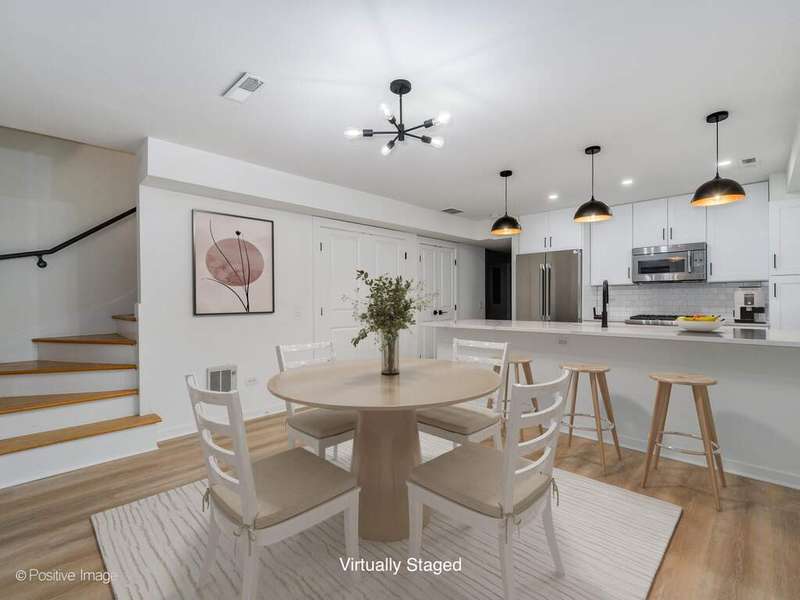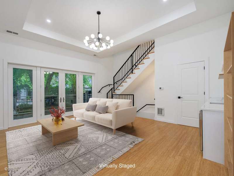 Welcome home to your gorgeous and renovated triplex apartment, that lives like a single family home, on an incredible tree lined street in West Town. This three story apartment features a remarkable kitchen and private patio on first floor, large living space with wet bar and half bath on second floor, and two large bedrooms upstairs. On the first floor, enjoy the incredible kitchen with all new Thermador appliances, oversized beverage fridge, quartz countertops and backsplash, with an eat at peninsula that leads right to the dining room and private outdoor patio. The first floor boasts additional office/den, stunning full bathroom and in unit washer dryer. Prime living space on the second floor conveniently adorned with wet bar and half bath. One more flight up leads to the two large bedrooms with designer lighting, ample closet space, and updated bathroom boasting soaking tub, beautiful vanity, lighting and tiled flooring. Exterior parking available for additional rent. Pets welcome with ownership approval. Schedule your showing today! Broker owned interest. Listing broker is related to owner.