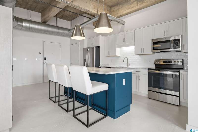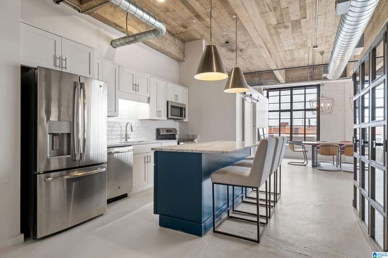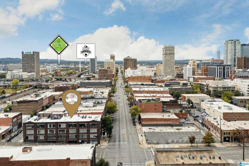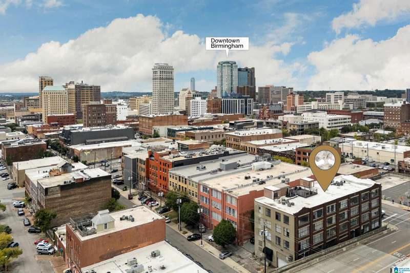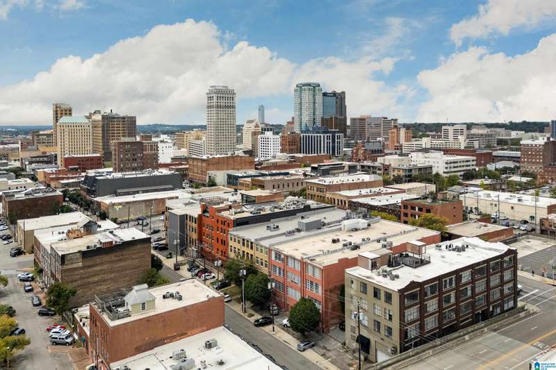Experience the best of downtown living in Birmingham’s iconic Franklin Building in this corner unit! This stunning loft blends timeless character with modern luxury, showcasing soaring ceilings, exposed brick, and expansive windows that fill the space with natural light. The open-concept layout flows seamlessly from the spacious living area to a beautiful kitchen featuring quartz countertops, stainless steel appliances, and a large island perfect for entertaining. The primary suite offers a peaceful retreat with a beautiful bathroom and ample closet space. You will find storage throughout, which adds function to the space. Enjoy the ease of secure building access, and convenient garage parking and storage unit. Don't forget to check out the beautiful community rooftop deck with stunning views of the city! Just steps from Birmingham’s top restaurants, coffee shops, and nightlife, this residence perfectly captures the energy of city living with the comfort and privacy of home.