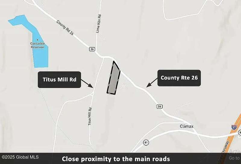 Nestled in the scenic Catskills in Climax, NY, this 3.27-acre haven is the ultimate canvas for crafting your dream home. With grid electricity and an established driveway, it's already set for your vision to take shape. Located just 11-minutes from the serene Coxsackie Reservoir, and 15 minutes from Greenville-Rainbow Airport (1H4), the property offers both convenience and accessibility. Sitting at an elevation of 320-370 ft, with direct access to County Route 26, this slightly sloped land is ideal for a variety of build styles. Surrounded by year-round recreational opportunities, breathtaking nature, and vibrant seasonal landscapes, this is the perfect plot to bring your future home to life.