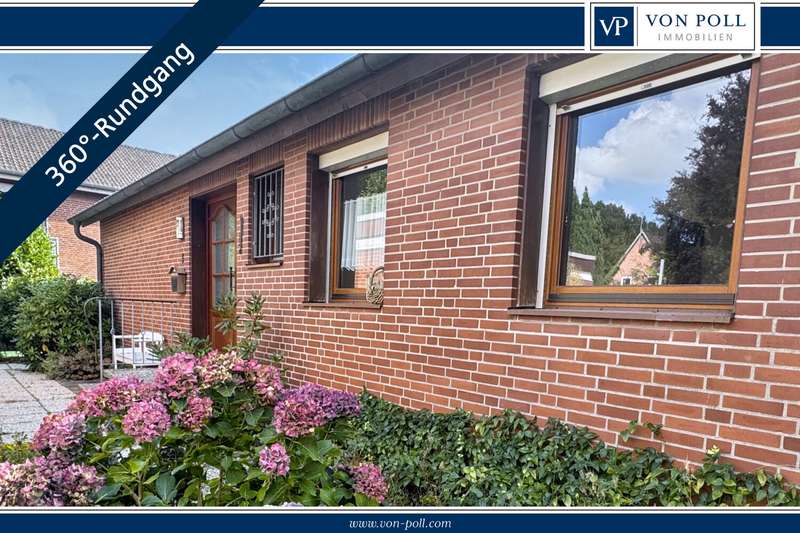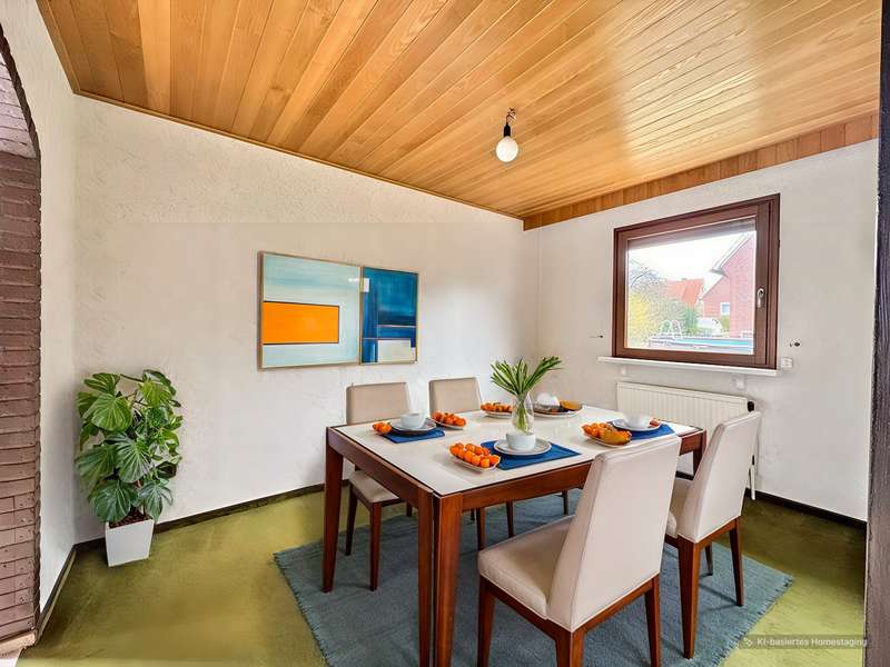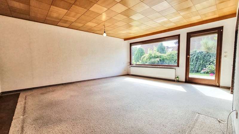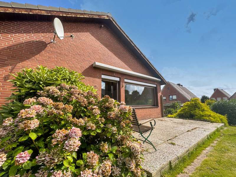 This well-kept bungalow, built in 1976, impresses with its generous living space of approx. 109 m² and is situated on a plot of approx. 569 m² in a quiet second row. The rooms are all arranged on one level, which ensures a pleasant living experience into old age. The bright guest WC is located in the entrance area. The bathroom is equipped with a bathtub and plenty of natural light. On the other side of the hallway is the kitchen, which is conveniently located next to the bright dining area. The spacious living room offers a view of the garden and terrace through a wide glass front. Here, an awning ensures a pleasant feel-good atmosphere even when the sun is shining brightly. In addition to the bedroom, there are two further rooms that can be used as a children's room, study or hobby room. The basement offers additional comfort, for example to set up a workshop. There is also plenty of space for storage, as well as the option of conveniently storing washing machines and dryers. The property offers additional storage space with an attic. There is also a garage with an electric garage door and outdoor parking spaces. All in all, this bungalow offers a beautiful and pleasant place to live with plenty of space and versatile usage options. It still needs a little love when it comes to renovation, but the well-kept interior and practical room layout make this house an attractive proposition for buyers looking for a cozy property in a convenient location.