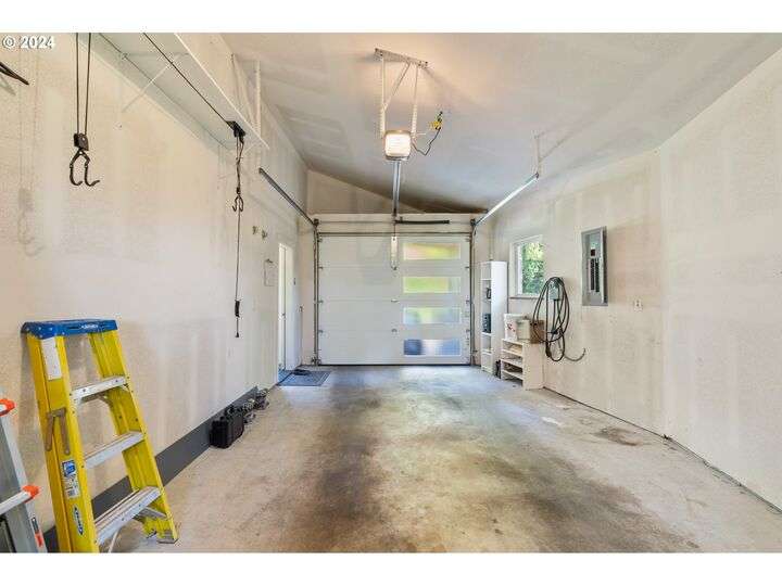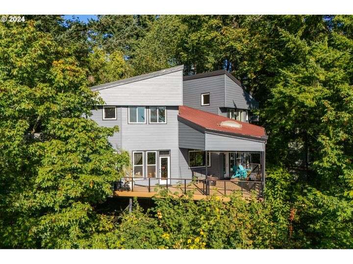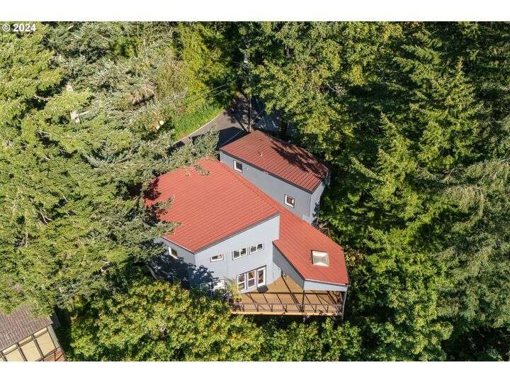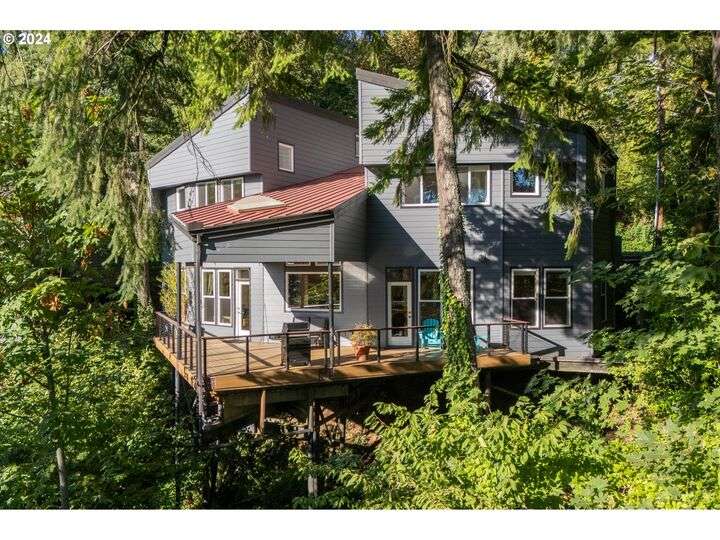 Perched high among the trees, this modern treehouse combines cutting-edge design with the tranquility of nature. The exterior is clad in new fiber cement siding, offering both durability and a sleek, contemporary look that harmonizes with the natural surroundings. Large, newly installed, energy-efficient windows flood the interior with natural light and provide breathtaking views of the forested territorial valley views. Inside, the space is equipped with a state-of-the-art, high efficiency HVAC and air filtration system, ensuring year-round comfort, while a new waterproofing features under the house guarantees that the treehouse remains dry and cozy, even in the heaviest rain. The open floor plan showcases natural materials like bamboo flooring and built in features, creating a warm and inviting atmosphere. Step out onto the expansive, completely re-built deck to experience the fresh air and the rustling of leaves, or retreat to the lofted bedroom for a peaceful night’s sleep among the treetops. This modern treehouse is a perfect blend of innovation and natural beauty, offering a luxurious escape from the everyday. [Home Energy Score = 5. HES Report at https://rpt.greenbuildingregistry.com/hes/OR10192856]