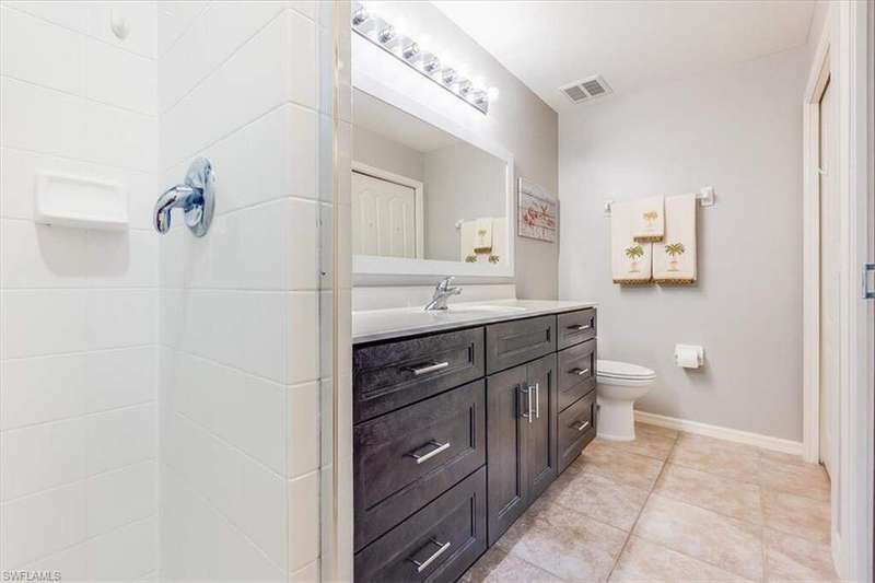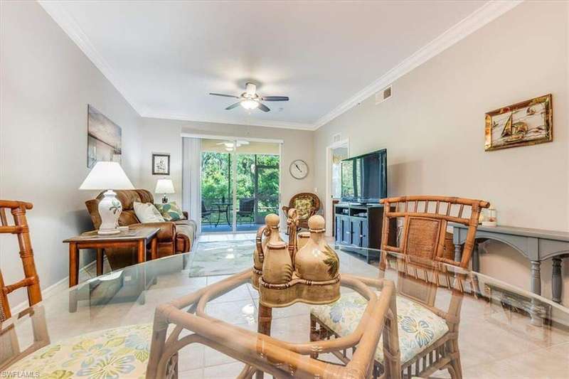 Turnkey First-Floor in Terraces at Riverwalk - Move-In Ready! Welcome to effortless Florida living in this beautifully maintained first-floor condo in the highly sought-after Terraces at Riverwalk community. Ideally located just minutes from stunning beaches, fantastic dining, shopping, and entertainment, this home is perfect for full-time residents, seasonal visitors, or investors looking for a prime rental opportunity. Step inside to a bright and open layout featuring a completely stocked kitchen with elegant marble countertops, rich wood cabinetry, and stainless-steel appliances, including a brand-new stove and a Bosch dishwasher. The refrigerator, microwave, and dishwasher were all replaced in 2019. Luxury vinyl flooring in the bedrooms ensures easy maintenance-no carpet anywhere! The spacious master suite offers a king-size bed and a custom vanity in the ensuite bath, while the guest room includes a queen bed-perfect for family and friends. Extra shelving in all closets and the laundry room adds great storage options, plus there's an oversized exterior storage closet with built-in organization conveniently located right across from your front door. Step out onto your reimagined lanai and take in the peaceful preserve view, offering a serene retreat to relax and unwind. Enjoy peace of mind with impact windows throughout and knowing that all major systems have been updated, including a new hot water heater (2019) and a new AC unit (January 2022). Even better, this property is located in a NO FLOOD ZONE! Previous owner also had installed a radon system located in the primary closet. The community has undergone recent upgrades, including a new roof, fresh exterior paint, brand-new carports, and beautifully maintained landscaping. The assigned covered carport (#052) ensures convenient parking, with plenty of additional guest parking available. The resort-style amenities include a freshly updated clubhouse, a heated pool, and a welcoming community with plenty of activities. Sewer and water are included, making this home even more affordable and hassle-free. Plus, with 12 leases allowed per year (30-day minimum), this condo is also a fantastic investment opportunity-whether for seasonal or annual rental income! Move-in ready, pet-friendly, and packed with upgrades-this is the perfect place to call home!
