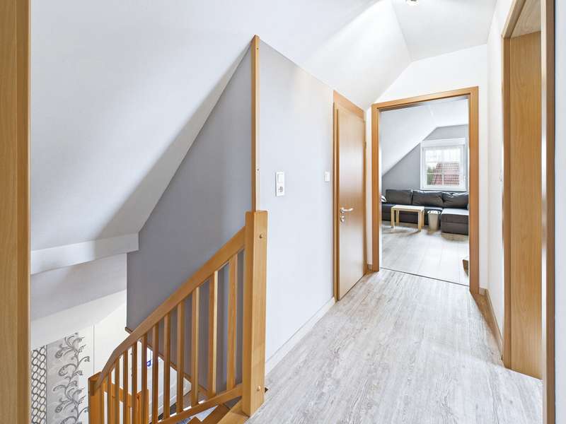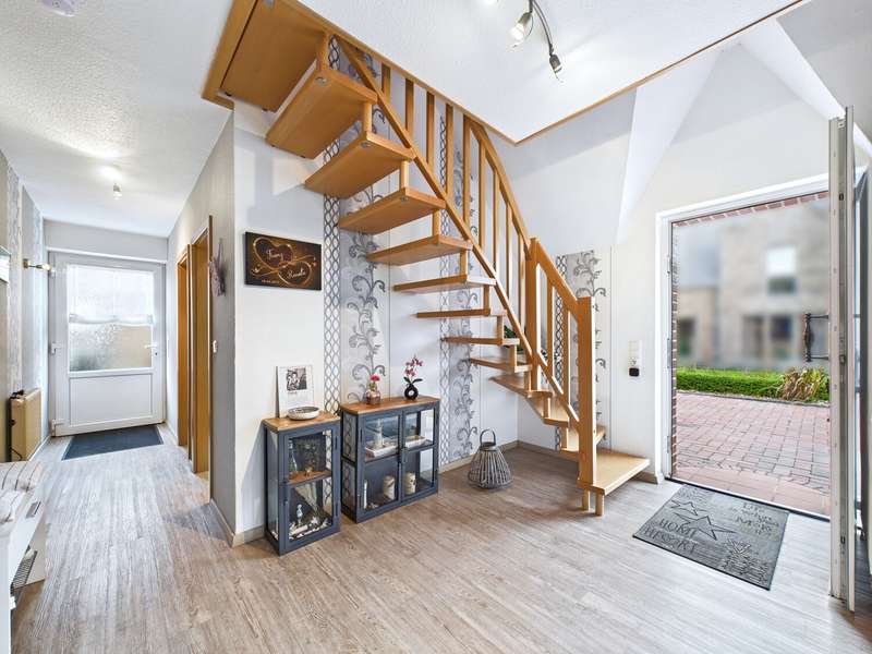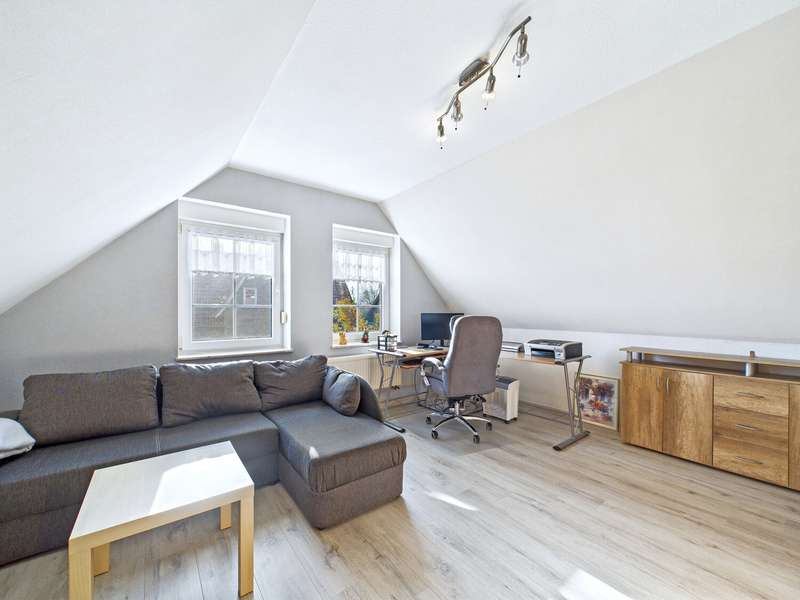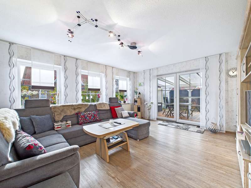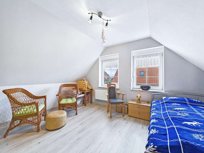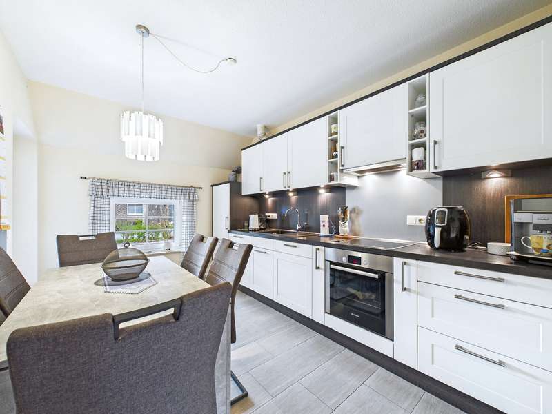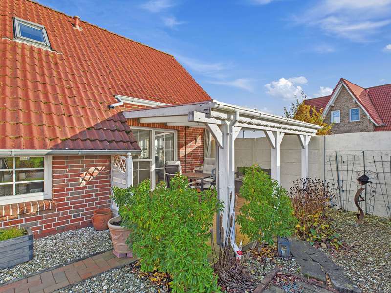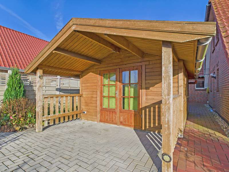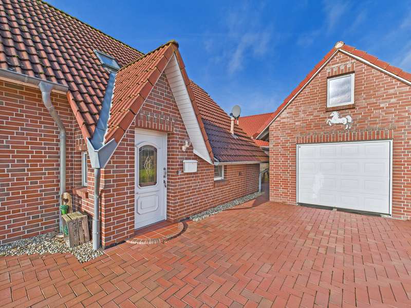 This well-kept Frisian house from 2002 is situated in a quiet location in Upleward in the municipality of Krummhörn and stands on a plot of approx. 583 m². Thanks to its well thought-out floor plan, the house is comfortably habitable at ground level and is ideal both as a permanent residence and as a vacation home. The focal point of the house is the spacious living and dining area with access to the covered south-west-facing terrace - here you can enjoy many hours of sunshine and a wonderful view of the lovingly landscaped garden. The modern fitted kitchen was renovated in 2015 and features a contemporary design with high-quality electrical appliances. On the first floor there is also a cozy bedroom, a well-kept bathroom with a walk-in shower and a practical utility room with space for a washing machine, dryer and supplies. All areas are flooded with light and convey a pleasant feeling of living. On the upper floor, you will find two further rooms that can be used in a variety of ways - ideal as a guest room, office, hobby room or retreat for children. This floor is complemented by a further bathroom with shower and bathtub as well as a small storage room that offers additional storage space. The outdoor area impresses with a covered south-west-facing terrace and plenty of space for relaxing and gardening. There is a practical wooden hut at the rear of the property for storing garden tools. A special highlight is the beautiful log cabin with integrated deep heat cabin - perfect for relaxing after a long day and enjoying wellness right at home. Right next to the house is a garage with adjoining workshop area, which offers hobby craftsmen plenty of space for their projects. This Frisian house combines cozy living, modern furnishings and relaxing retreats - in typical East Frisian surroundings and not far from the North Sea.