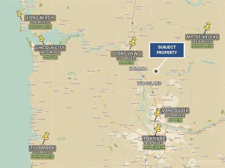 11-acre parcel with the ability to subdivide into lots of 2 acres or larger. Ideal for creating a shared property w/ friends or relatives, building your home & offsetting costs by selling additional lots, or simply holding as an investment. Nice territorial views framed by treed ridgelines. Mature Douglas Fir stand in the center of the lot w/ younger replantings throughout the remainder. Direct frontage on the paved Little Kalama River Road plus a second access point via a private, gated road that serves the rear half of the property. Nice, countryside setting just 12 miles from Woodland & 41 miles from Portland. Power at the road. Additional parcels are available including multiple 2-acre & 10-acre lots. Owner financing is an option.
