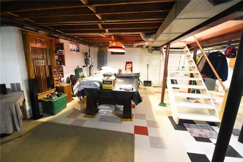 Comfortable well maintained brick home with natural gas heat and central air conditioning. Has a one car attached garage with a covered patio off the back ready to have a BBQ. Two first floor bedroom with a full bath. Second floor has a large bedroom with a walk in attic that can be transformed to a fourth bedroom or bath. Many updates include viny windows, 200 amp electrical, hardwood and ceramic tile floors. The dry basement is decorated with a lounge area and pool table. Owner must find and close on suitable housing same day this closes. Comes with the Howard Hanna 100% buy back program, conditions apply