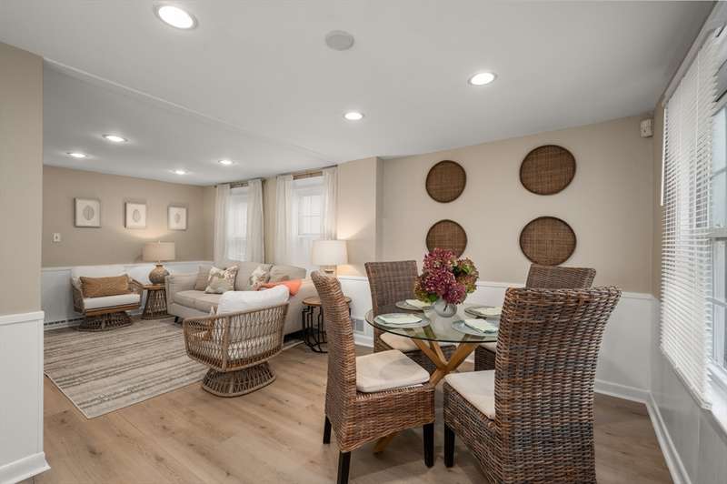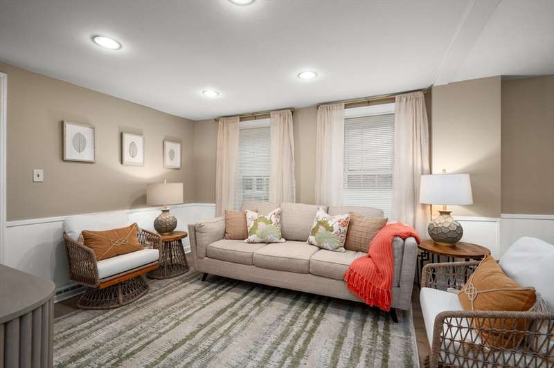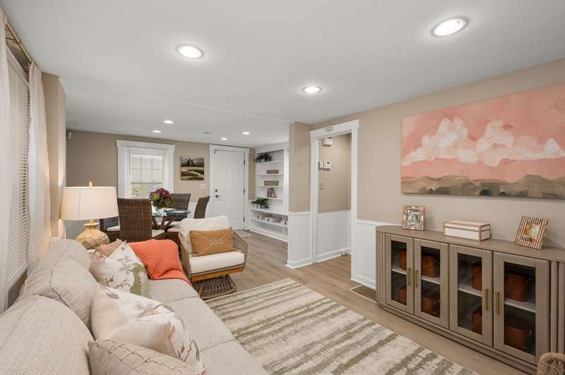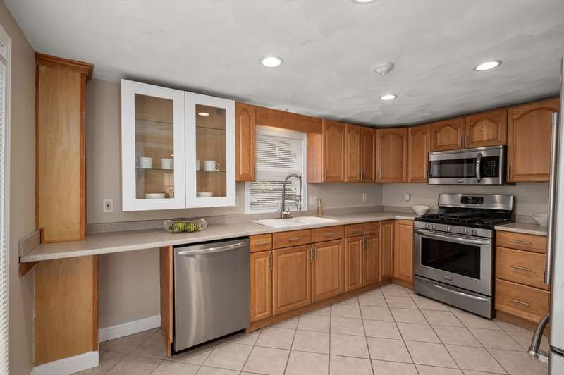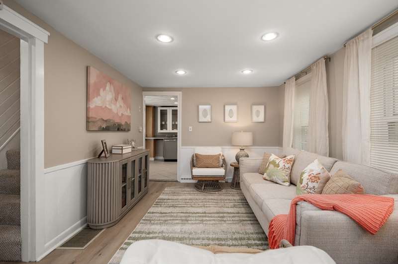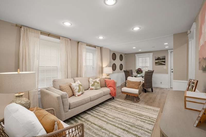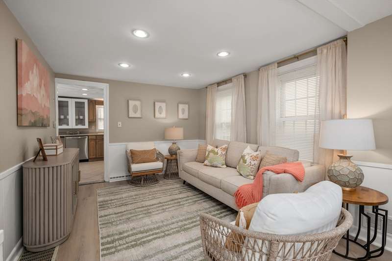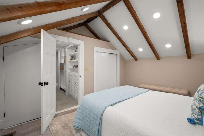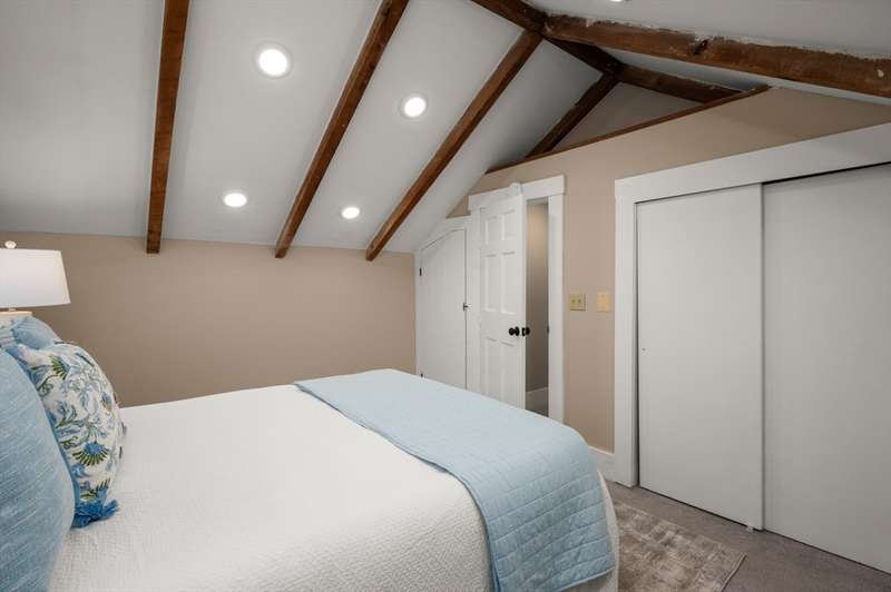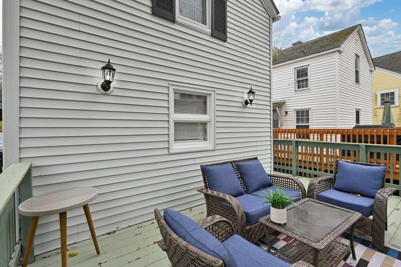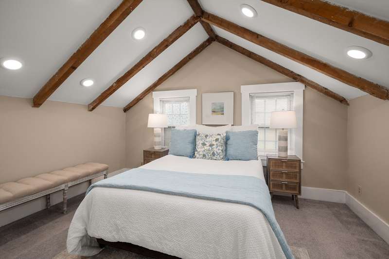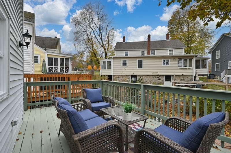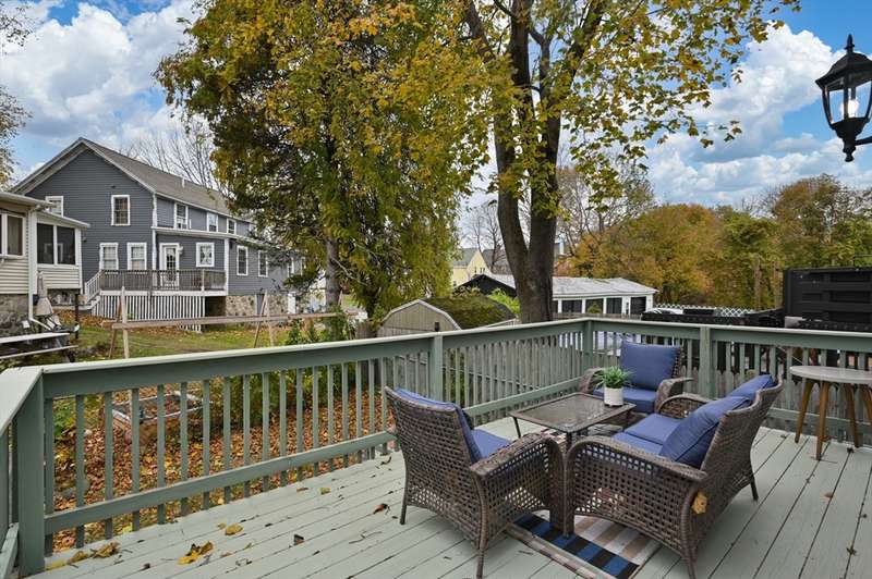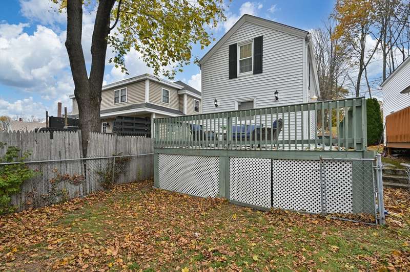 Quintessential charm meets modern day living in the heart of old North Andover. This is truly the sweetest property for new owners to be home for for holidays! Warm and inviting entryway into a seamless open concept floorplan. Entertaining ease with a combined living and dining room, thoughtfully designed space. Built ins and beautiful natural light add to the comfortable vibe in the main living area. Kitchen is well sized with french doors to freshly painted wrap around decking. Outdoor area is neat and tidy, fenced in and low maintenance. Bedrooms with vaulted ceilings and wood beams create a uniques backdrop for your decorating ideas. Full bath completes the 2nd floor space and has more added charm. Crisp, neutral freshly painted interior and central air are a bonus! Commuter friendly location and nearby to all that the vibrant North Andover community offers. Single family turnkey homes under 500K are few and far between in this sought after town!