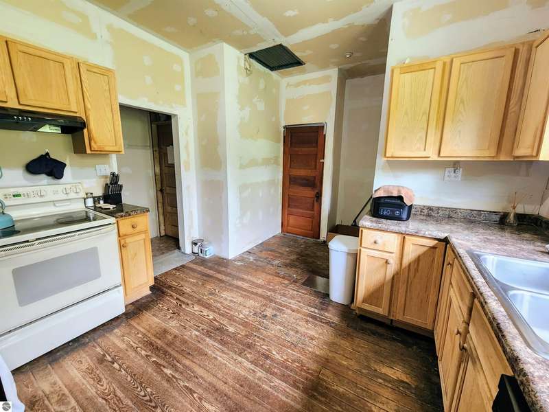 Charming Copemish Bungalow - A Wonderful Fixer-Upper/Investment Opportunity! Close to Crystal Mountain with great potential as a Short-Term Rental. Don't miss your chance to restore this charming Copemish bungalow to its full potential! Situated on an oversized corner lot, this property offers plenty of space and character for the right buyer. Inside, you'll find an updated kitchen, a newer roof and furnace, and fully replaced drywall--ready for your finishing touches. The original hardwood floors are just waiting for some TLC to shine like new again. Classic French doors open into the dining room, adding a touch of vintage elegance. The original trim has been preserved and is currently stored in the basement, ready to be reinstalled as part of your restoration project. Downstairs, there's room to add a third bedroom thanks to an existing egress window--perfect for expanding living space or increasing resale value. With ample outdoor space, there's plenty of room to build a garage, workshop, or possibly split and build additional residences (subject to local zoning). Bring your vision and creativity to breathe new life into this hidden gem!