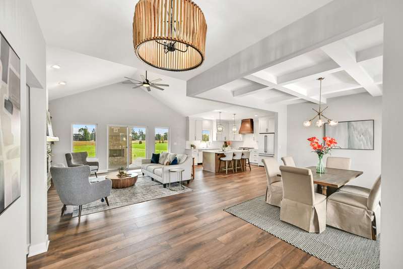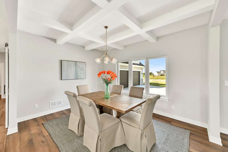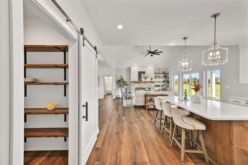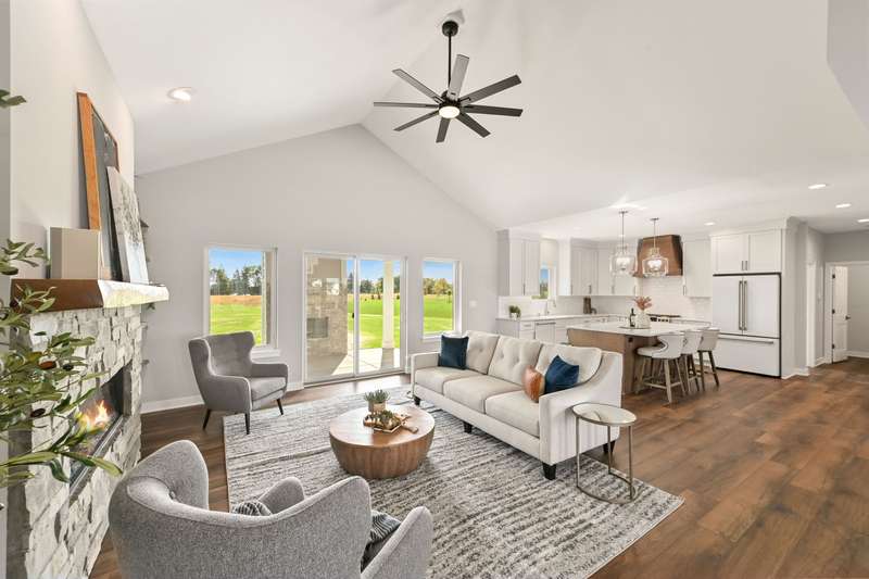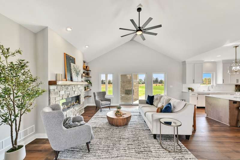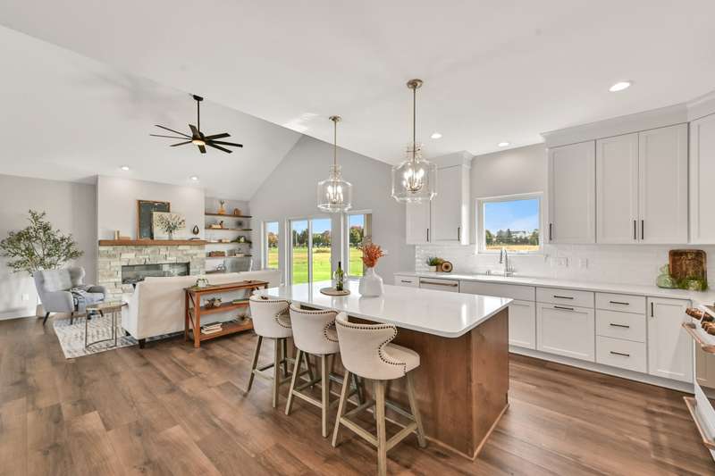 Experience exceptional craftsmanship and modern design in this stunning new construction home by Elegant Builders LLC, where every detail reflects artistry, precision, and timeless quality. Nestled in the desirable Meadowlands subdivision in the northwest corner of Okauchee Lake, this impressive 2,800 square foot open-concept ranch sits on a one-acre lot backing to a conservancy. Inside, you'll find 4 bedrooms and 2.5 baths, including a split floor plan with a full primary suite, and two additional bedrooms with a shared full bath on the main level. The fourth bedroom and bonus room offer versatility above the expansive 3.5 car garage- perfect for an office, game room, or guest suite. The inviting great room flows into a designer kitchen featuring quartz countertops and a full GE Cafe appliance package. Enjoy cozy evenings on the porch complete with built-in natural fireplace. Additional highlights include a first-floor laundry room and an expansive 2,000 square foot unfinished basement, offering endless opportunities for future living space.