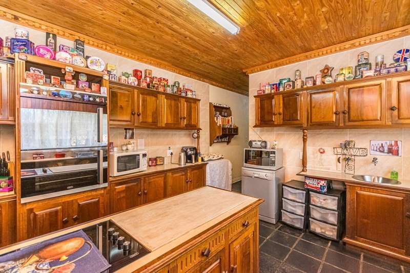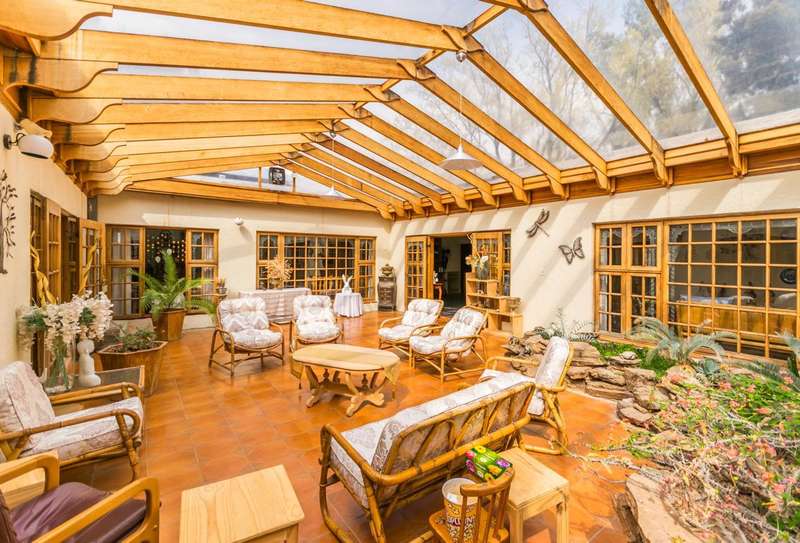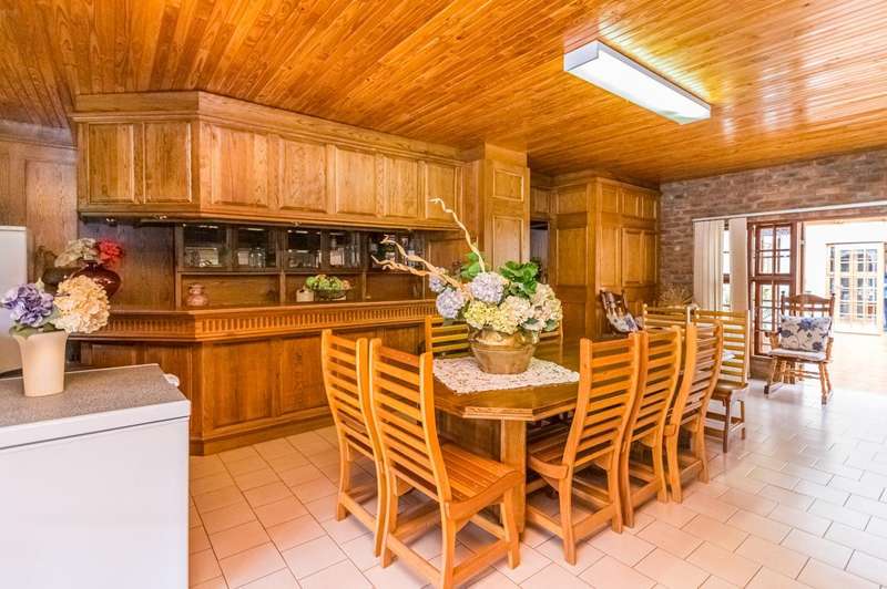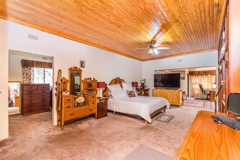 Farm-style living at its best ?Çô borehole, solar, and space to thrive! This unique home combines the charm of farm-style living with the convenience of modern upgrades. Perfectly set on a corner plot with two entrances, surrounded by large lawns, oak trees, cycads, water features, and ponds ?Çô this property truly offers a lifestyle like no other. Home Features 5 Spacious Bedrooms (2 en-suite) 3 Bathrooms (including a guest full bathroom) Main Bedroom Suite: private lounge & study, walk-in closet, full en-suite, direct access to entertainment area & library. Sun-filled Family Room: central sunroom, ideal as a warm everyday lounge. Formal Lounge: slate floors, timber ceilings & handcrafted wooden wall design. Dining Options: large open dining area + separate sewing/dining room for formal occasions. Well-appointed Kitchen: solid Emboia wood cabinetry, slate floors, large scullery & direct flow into living/entertainment areas. Entertainment Wing: built-in bar, expansive reception area with handmade wooden finishes, sliding out to the garden. Additional Accommodation Separate 5th Bedroom Suite with en-suite (perfect for extended family or guests). Staff Quarters: 2 rooms with bath & toilet, private entrance. Work & Lifestyle Extras Workshop / Factory: ideal for home business or large-scale hobbies. Garages & Parking: 2 Lock up garages + undercover parking + ample secure open parking. Storage: multiple inside & garden storage spaces. Property Infrastructure Water: Borehole with JoJo tank (plumbed to the house). Power: Eskom 3-phase electricity plus solar system (6 panels, 5kVA inverter, lithium battery). Security: electric fencing and dual access gates. Roof: slate roof with Kiaat wooden doors for timeless character. Lifestyle Setting This property blends practicality with luxury ?Çö space for family, entertaining, business, and leisure. From cozy reading nooks to grand garden entertainment, this is more than a home ?Çö it?ÇÖs a lifestyle. ERF 21 Boland ?Çô A plot with a difference! Farm-style living, modern conveniences, and endless possibilities.