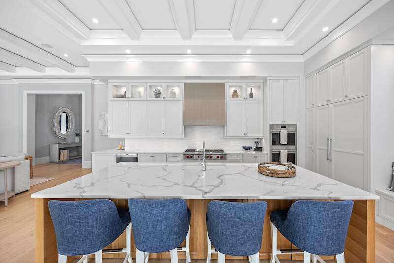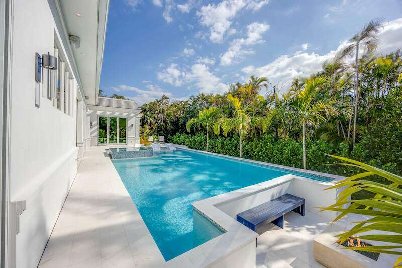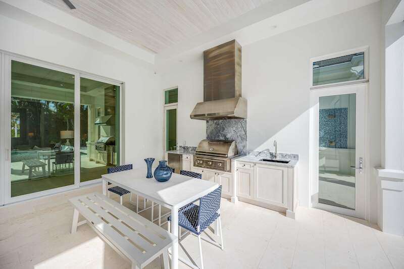 New construction! This exquisite Park Shore residence by Borelli Construction blends elegance, functionality, and modern luxury. The thoughtfully designed floor plan features a spacious great room, a gourmet kitchen with abundant storage, a working pantry, and four bedrooms with four full baths-plus a cabana with a half bath connected by a charming breezeway. Natural light pours in through southern exposure and fully pocketing 10-foot sliders, seamlessly connecting indoor and outdoor spaces. The interiors showcase European wide-plank white oak floors and detailed ceiling trim that elevate each space. The primary suite offers a sitting area, custom-built closet, and a spa-like marble bath with dual water closets and a luxurious wet room. Outside, experience the oversized pool with a sun shelf, integrated spa, and sunken fire pit framed by lush landscaping. The expansive pool deck and covered lanai-complete with screens, shutters, an outdoor kitchen, a white-washed cypress ceiling, and a fireplace-create the perfect retreat. Additional upgrades include a whole house water purification system, SubZero/Wolf appliances, Control4 and Lutron home automation, hard-wired electric shades, a 1,000-gallon propane tank, and a whole-house generator. Clive Daniel eloquently appointed this home, which is built a foot above the new FEMA base flood elevation, delivering timeless style and peace of mind.