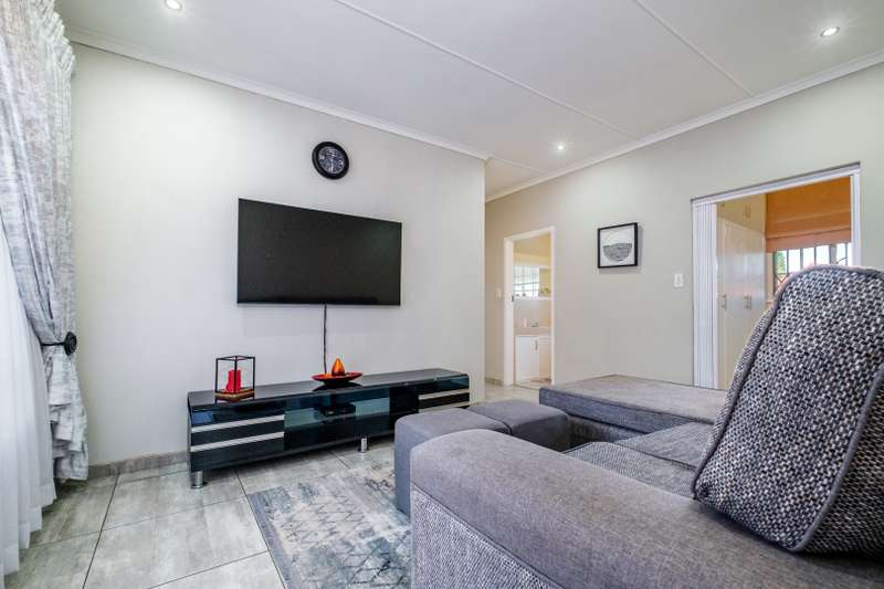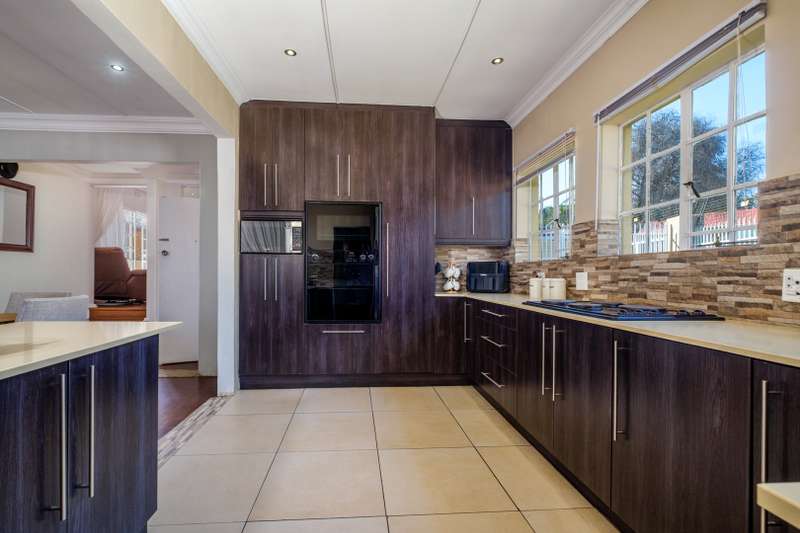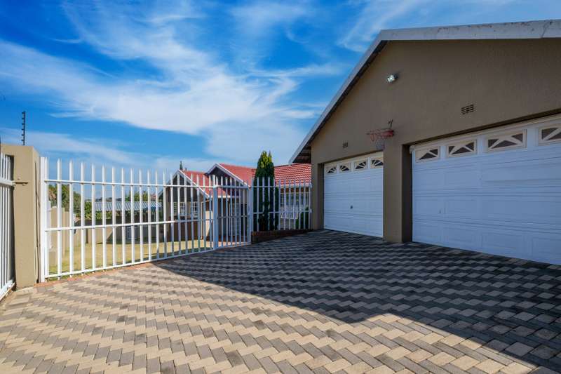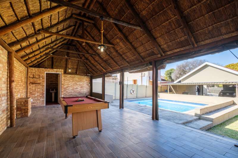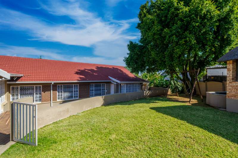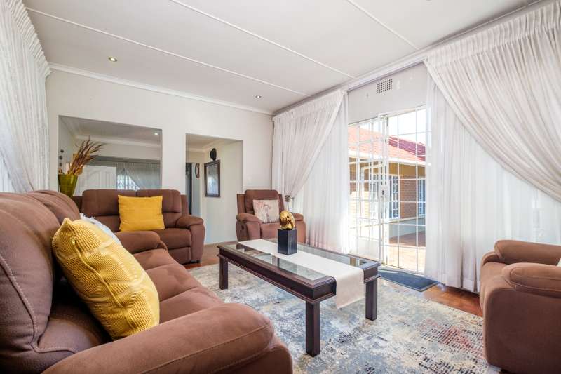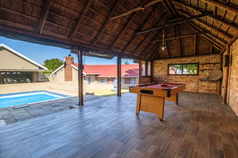 Inviting Offers from R2 290 000 Charming Move-in Ready Home! Welcoming front door leads to entrance where a mixture of parquet & tile flooring flows to sun-splashed lounge & wood-burning fireplace. From here glass doors open onto garden, pool & Lapa entertainment area. The Lapa area is fitted with a pool table; roll-up canvass sheets & guest loo that allows for all year round entertaining. The spacious dining room is open plan to the modern kitchen that features Ceasar stone counter tops, double eye level ovens, ample cupboard space, that will fulfil your culinary needs & separate scullery/laundry area. The passage leads to 3 spacious bedrooms fitted with build-in cupboards, 2 bathroom (Mes) & study (possible 4th bedroom). Enter through private Pyjama lounge to glorious master suite that offers access to the pool & entertainment area. The suite also includes a dressing room. Outbuildings consist of: Drive through double automated garages, store room, staff room & 2nd entrance leads to secure covered carports for 4 more vehicles. This contemporary home that is move-in ready, is fitted with pre-paid electricity meter & fully wired for generator to cater for power outages. Security is state of the art! Last but not least, the property is situated in a quiet cul-de-sac, positioned close to places of worship, major arterials & schools. For an exclusive viewing – please call the agent!