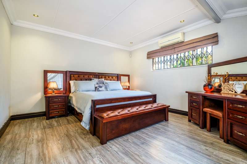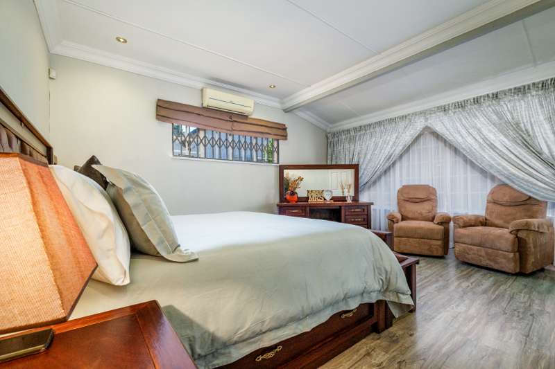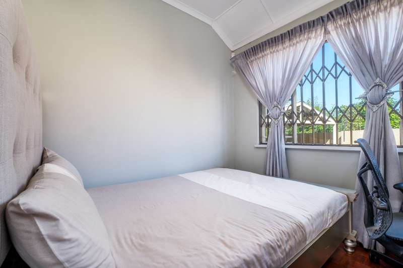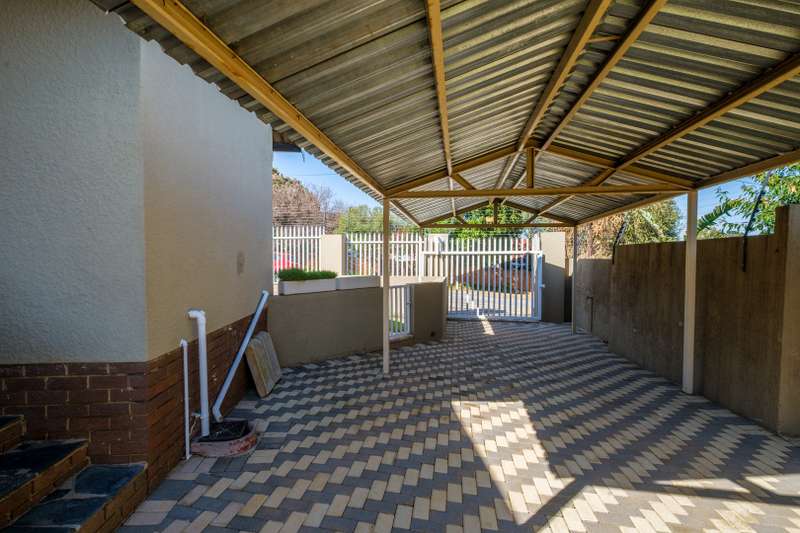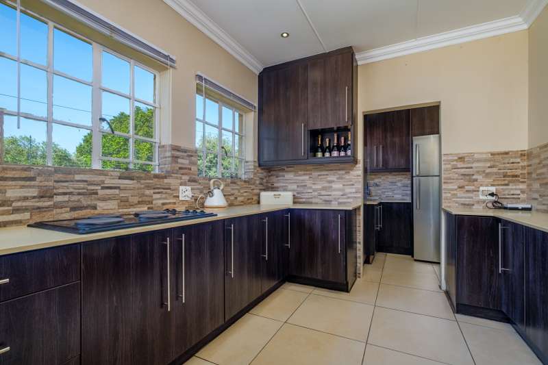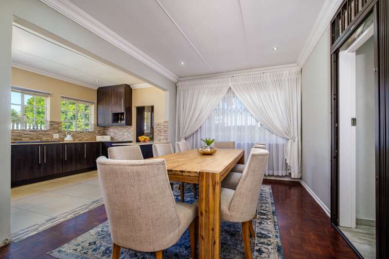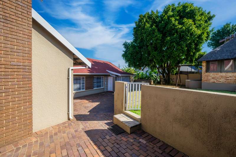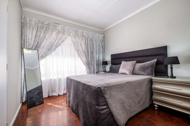 Inviting Offers from R2 290 000 Charming Move-in Ready Home! Welcoming front door leads to entrance where a mixture of parquet & tile flooring flows to sun-splashed lounge & wood-burning fireplace. From here glass doors open onto garden, pool & Lapa entertainment area. The Lapa area is fitted with a pool table; roll-up canvass sheets & guest loo that allows for all year round entertaining. The spacious dining room is open plan to the modern kitchen that features Ceasar stone counter tops, double eye level ovens, ample cupboard space, that will fulfil your culinary needs & separate scullery/laundry area. The passage leads to 3 spacious bedrooms fitted with build-in cupboards, 2 bathroom (Mes) & study (possible 4th bedroom). Enter through private Pyjama lounge to glorious master suite that offers access to the pool & entertainment area. The suite also includes a dressing room. Outbuildings consist of: Drive through double automated garages, store room, staff room & 2nd entrance leads to secure covered carports for 4 more vehicles. This contemporary home that is move-in ready, is fitted with pre-paid electricity meter & fully wired for generator to cater for power outages. Security is state of the art! Last but not least, the property is situated in a quiet cul-de-sac, positioned close to places of worship, major arterials & schools. For an exclusive viewing – please call the agent!