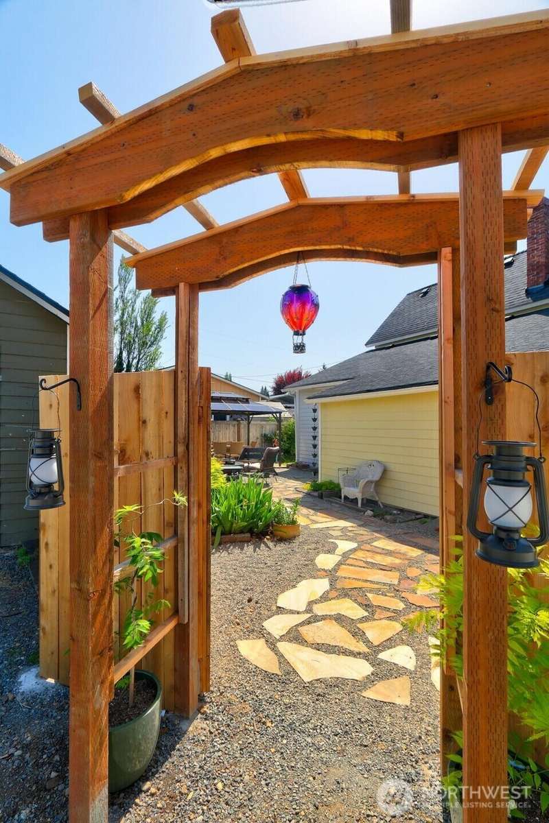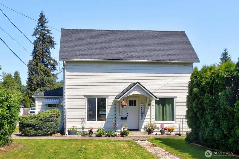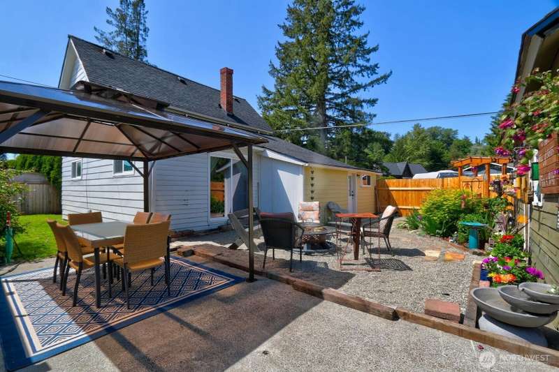 Pending then back to market! They're cold feet is your opportunity! A Rare Opportunity! Corner-lot home along the Centennial Trail with lush gardens, privacy fencing, and multiple outdoor entertaining areas—including two firepit spots and a slate-paved patio. Spacious shop/garage was once a horse-and-buggy stable. Main-floor bedroom plus two upstairs with attic storage. Updated roof, windows (many triple-pane), plumbing, and sewer. Functional kitchen with propane cooktop, dbl basin sink, and LED-lit coffee bar. Mudroom w/ heated coat & boot rack. Enjoy summer skies filled with hot air balloons and skydivers. RV space, fenced grounds, and a close-knit neighborhood near river, park, and historic Snohomish.