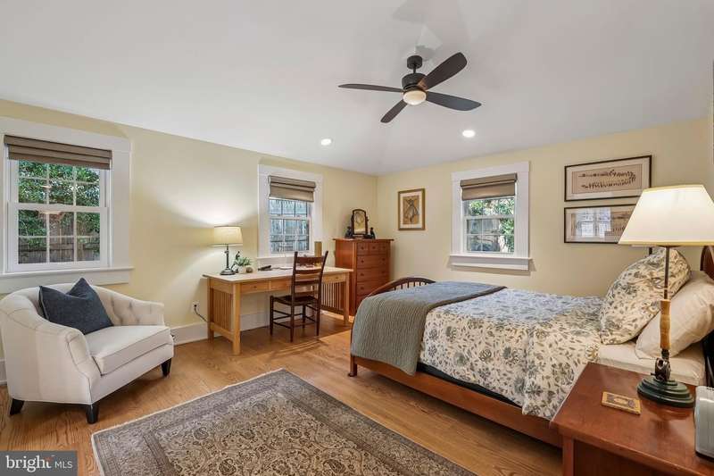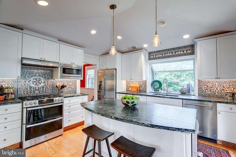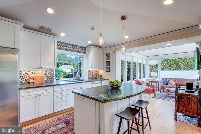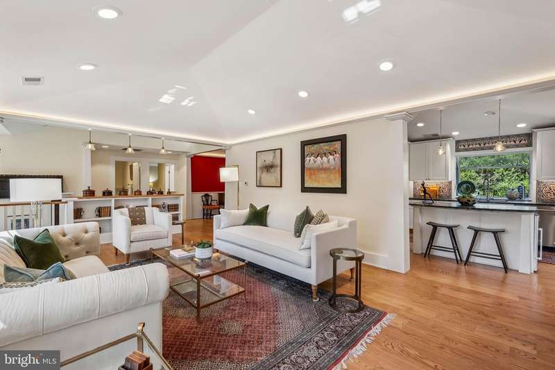 Gracefully set on a quiet rise in Arlington's sought-after Rivercrest neighborhood, this fully reimagined home blends timeless architecture with thoughtful, high-quality updates. In a rare distinction, the home was redesigned by award-winning architect George ""Duo""Â? Dickinson, FAIA-nationally recognized for his work on over 500 projects and known for bringing vision and intention to residential design. The 2017 renovation introduced vaulted ceilings with custom moulding and elegant uplighting, creating a warm and elevated sense of space. Rich hardwood floors and two wood-burning fireplaces add character and charm, while large windows invite in natural light throughout. The kitchen opens to a beautifully expanded sunroom-a perfect spot to enjoy morning coffee, surrounded by light and calm. Just beyond, the oversized family room offers an exceptional space for entertaining-a rare and flexible retreat for both everyday living and special gatherings. From the dining room, step out to a private patio-ideal for quiet evenings or hosting under the trees. Upstairs, you'll find two well-appointed bedrooms, including the expansive primary suite with a dream-worthy walk-in closet featuring custom cabinetry and built-in storage, plus a spa-inspired ensuite bath with high-quality tilework. All bathrooms in the home were fully remodeled with enduring style and thoughtful finishes. The lower level includes two additional bedrooms-perfect for guests, family, or flexible use-as well as a spacious bonus room with custom built-in bookcases and extra storage, ideal for a home office, media space, or creative studio. Two new mini-split systems (2025) and a third from 2017 ensure comfort year-round. Tucked away at the end of the street is a discreet access point to a public nature preserve that links to the Potomac River and several nearby parks, with the C&O Canal towpath just a short walk away-a peaceful retreat that feels worlds apart, yet remains minutes from the heart of the city. Additional features include owned solar panels (2022), a new water heater (2022), updated HVAC systems (2017), and an oversized two-car garage with workshop space. This is a one-of-a-kind home-rare in both design and feel-where quality, comfort, and location come together beautifully. Love being home.