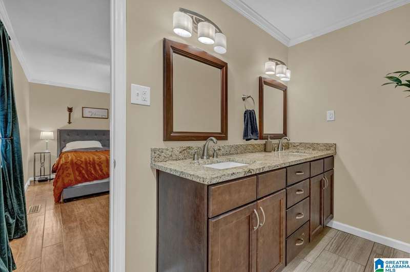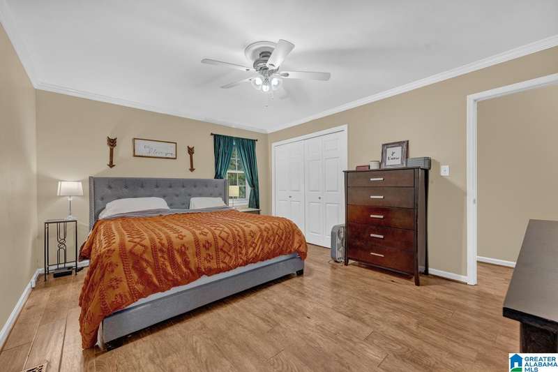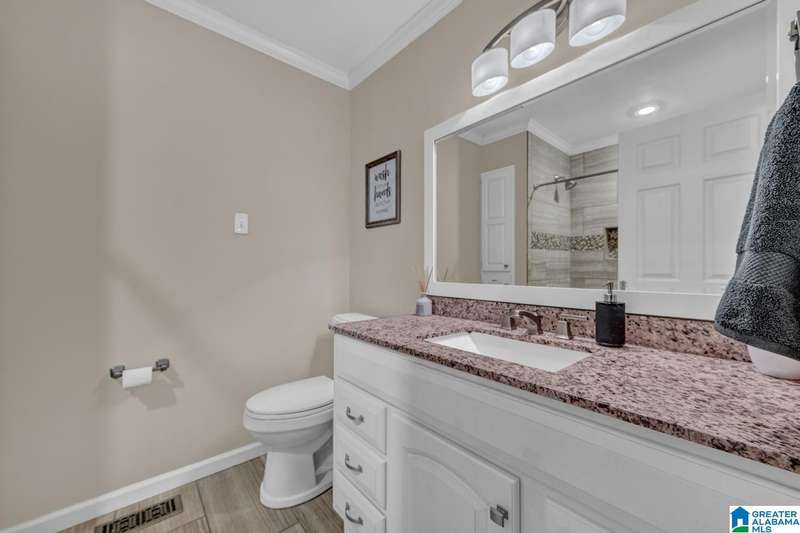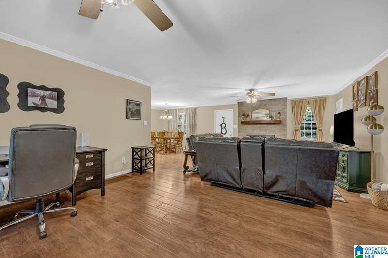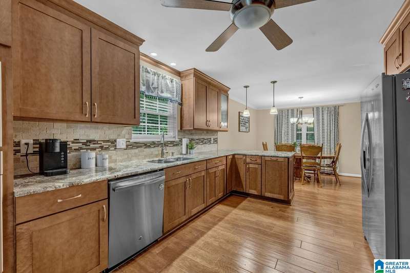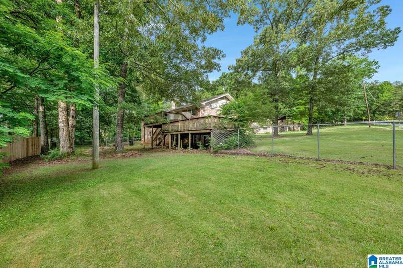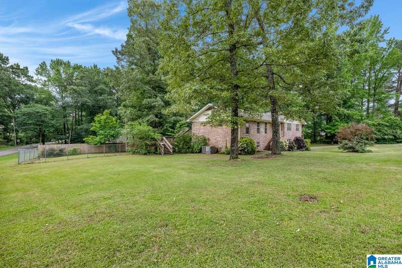 Price improvement on this very spacious home on huge, flat corner lot, with fenced back yard! When you enter the main level, you will be greeted by the dining area (currently used as an office) and family room with a cozy stone, gas-log fireplace. There's also a casual dining area open to the large kitchen with granite counters, stainless appliances, pantry and lots of cabinet & counter space! There are beautiful hardwood floors throughout the main level, including the primary bedroom & two guest bedrooms. The master bath has an over-sized walk-in tile shower and the guest bath has a tub/shower combo. In the finished basement you'll find a den, another full bath & awesome storage room! There's plenty of parking with a two-car garage & long driveway. The large two-tiered deck out back is great for outdoor entertaining! You'll love the lake access for fishing & non-motorized boats! Conveniently located close to shopping & interstate, with easy commute to Bham, Mercedes, and Tuscaloosa!