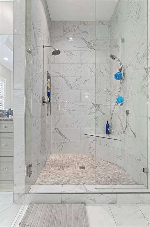 IMMACULATE HOME IN THE HEART OF CHASTAIN PARK! Step into timeless elegance and exceptional craftsmanship in this pristine residence, perfectly situated in one of Atlanta's most coveted neighborhoods-Chastain Park. From the moment you enter the grand two-story marble foyer, you'll notice the refined attention to detail that defines every inch of this remarkable home. The gracious fireside living room with coffered ceilings sets a welcoming tone, seamlessly flowing into an expansive dining room that easily accommodates 12+-ideal for entertaining in style. The heart of the home is a completely renovated kitchen, featuring a commercial-grade gas range with double ovens, an oversized island with prep sink, marble countertops, and exquisite custom cabinetry. A cozy breakfast room leads into the vaulted and beamed family room, where a stunning fireplace and panoramic views of the lush, private backyard create the perfect gathering space. Tucked between the kitchen and family room, custom built-ins frame a thoughtfully designed home office nook, providing an ideal workspace with both functionality and charm. The primary suite on the main level is a true retreat, offering a peaceful sitting area, private access to the covered patio and deck, and views of the beautifully landscaped backyard. The renovated primary bath is a true oasis. Upstairs, discover three spacious en-suite bedrooms with fully renovated bathrooms and walk in closets. In addition there is a versatile loft/bonus room-perfect for a playroom, media space, or additional office. The terrace level is nothing short of impressive with soaring 12-foot ceilings, multiple finished rooms, a full bar, billiards room, work out room, guest suite, fireplace, full bath, and two meticulously maintained storage rooms. Whether hosting guests or creating the ultimate recreation space, the possibilities are endless. Step outside to a covered patio just off the main-level family room, where you'll overlook a serene, private backyard with a gorgeous pool and plenty of room for a kick ball game! Live the Chastain lifestyle, with access to parks, top-rated schools, golf, tennis, horse stables, walking trails, and all the vibrant amenities this premier community has to offer.