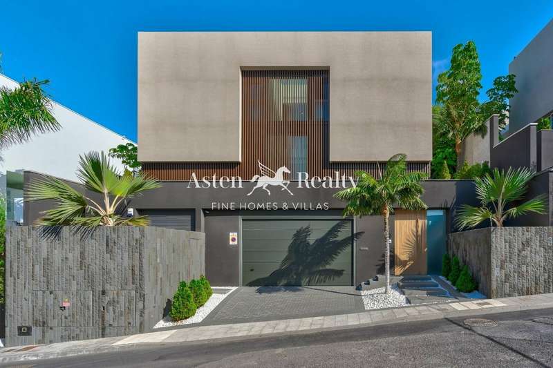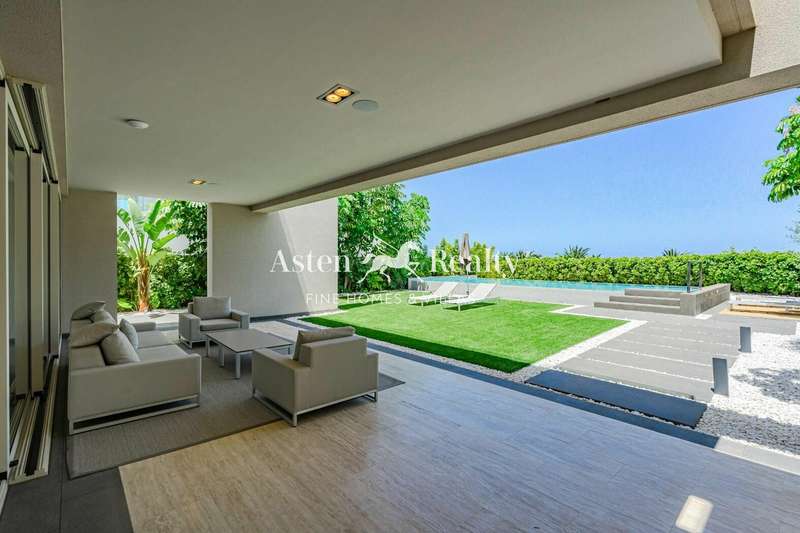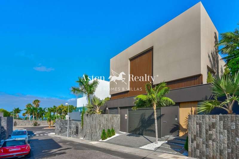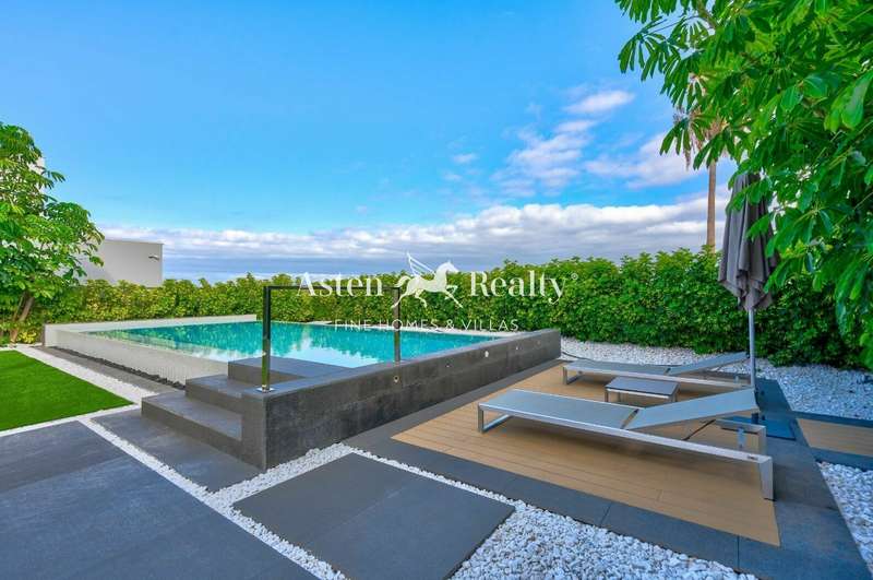 Wonderful villa of a minimalistic design on the first line of Golf Costa Adeje with panoramic views of the ocean, golf and the island La Gomera.