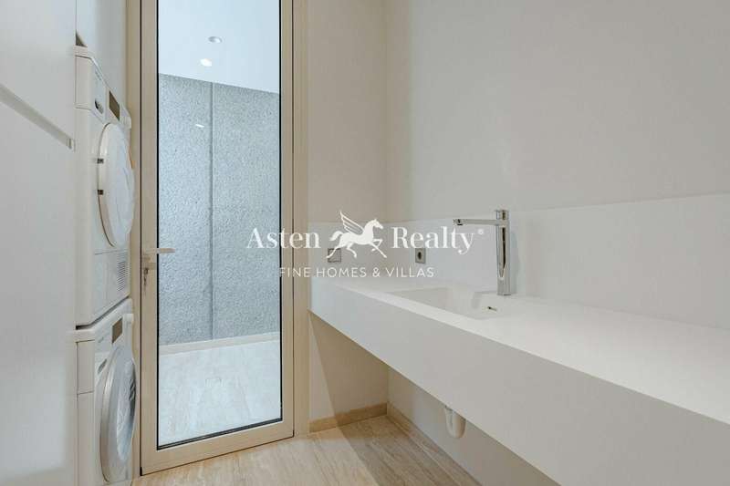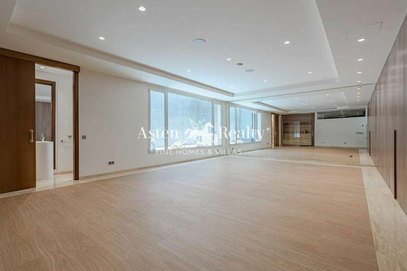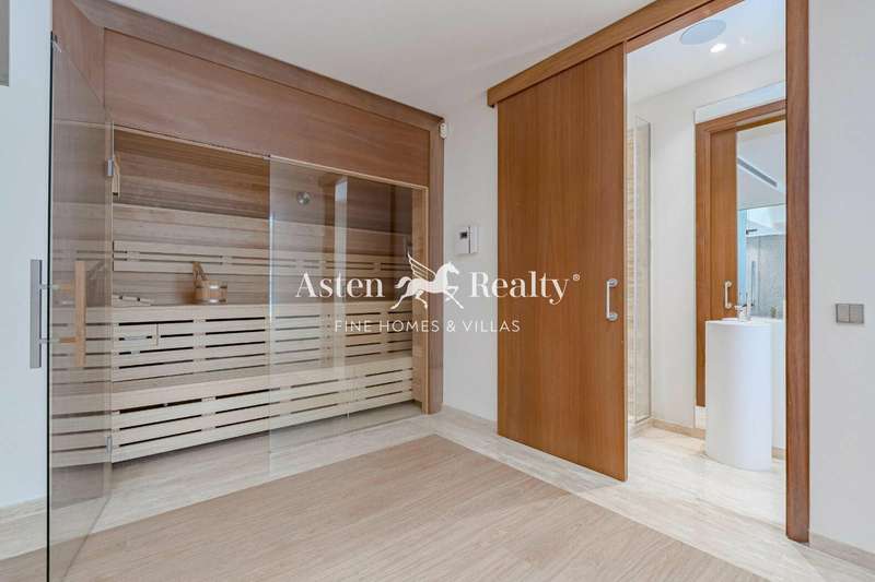 The basement floor has a large multipurpose room with a mirrored wall, designed for a gym and completed with sauna and bathroom. There is also a double bedroom with fitted wardrobes and a full bathroom, ideal for the staff, with the laundry room next to the utility patio.