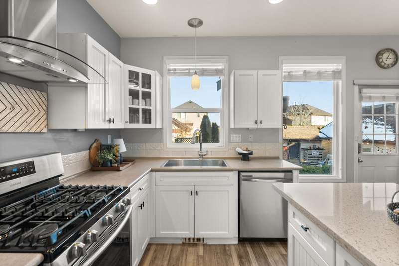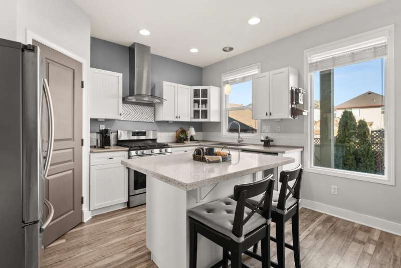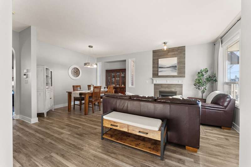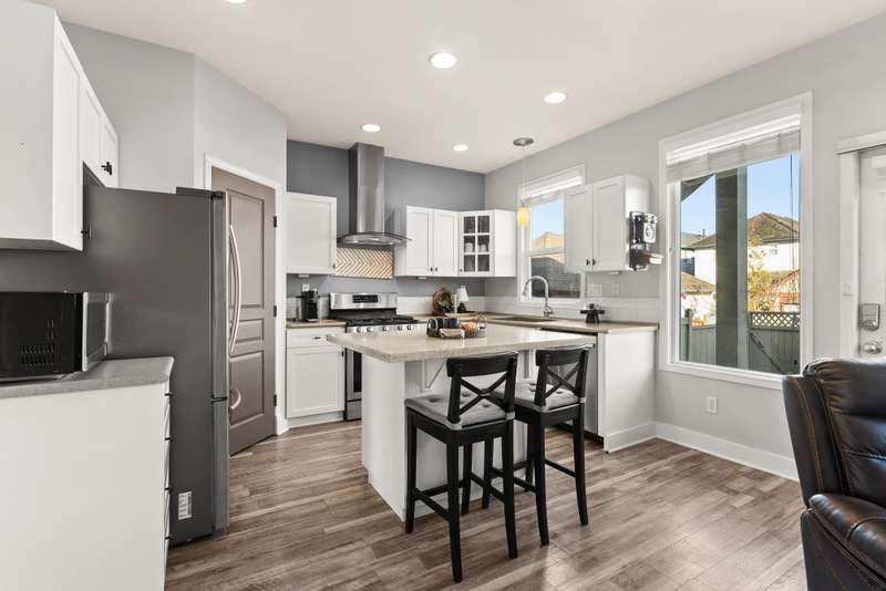 This inviting 4BD, 4BA home is a perfect for family living. Nestled in a popular neighborhood, it’s filled with natural light and offers a spacious living/dining area with fireplace, powder room, family room, and a stylish white kitchen featuring a walk-in pantry, gas range/oven, island, high-end sink & Kohler faucet. Upstairs, the primary BD boasts a walk-in closet & gorgeous ensuite, plus a versatile flex space, 2 more BDs & main BA. The finished basement adds with a large rec room, 4th BD & full BA. Recent updates include vinyl plank flooring, 3 BAs with quality fixtures, lighting, a new furnace & refreshing A/C. The fenced backyard with a patio, dual gas hookup & shed is ideal for outdoor fun. Lane access, with parking in the back. Close to daily conveniences.