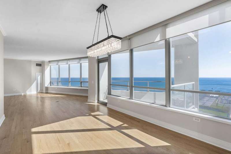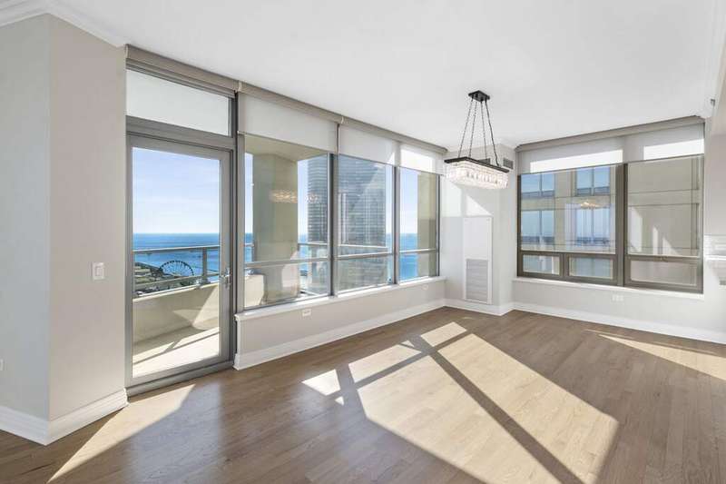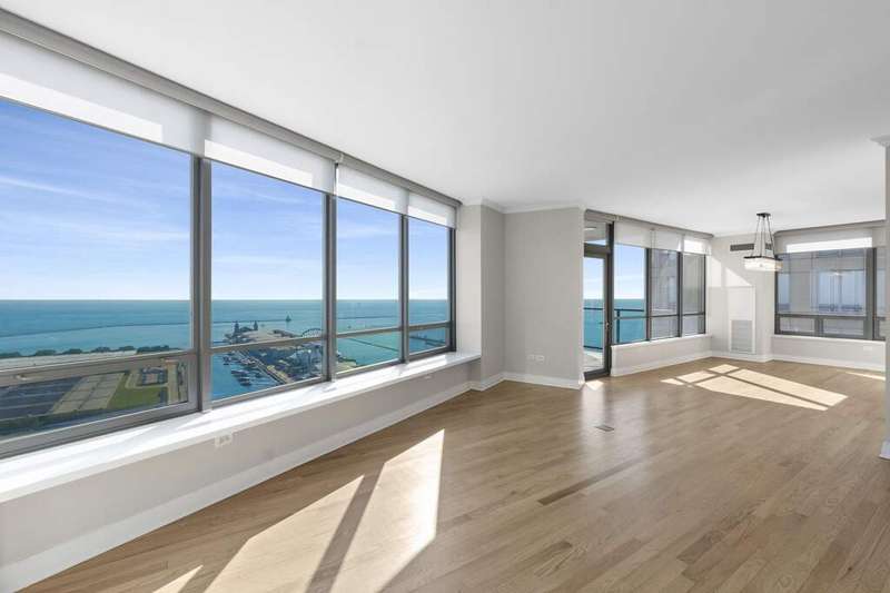 Rarely available, high-floor 3-bedroom residence in one of Lake Shore Drive's most sought-after buildings! Bask in the endless beauty of Lake Michigan from this sun-drenched corner unit, where walls of windows frame breathtaking views and fill the home with natural light. An elegant foyer with two oversized closets opens into the spacious living and dining areas, anchored by newly refinished hardwood floors and an east-facing balcony-perfect for Navy Pier fireworks and the Chicago Air & Water Show. The open-concept layout is ideal for entertaining, highlighted by a gorgeous kitchen with a breakfast bar, granite countertops, custom tile backsplash, under-cabinet lighting, and top-tier ss appliances, including a newer Samsung refrigerator & dishwasher, GE Profile microwave, gas cooktop, and double oven. The split-bedroom floor plan ensures privacy, with each bedroom offering generous organized closets, blackout shades, and hardwood flooring. The primary suite is complete with a large, organized walk-in closet and a spa-like bath featuring a steam shower, jacuzzi tub, and dual vanity. Entire unit was just professionally painted, so unit is move in ready! Parking available for $50K (with possibility of a second space). For those seeking something truly extraordinary, the adjoining residence (unit 3605) is also available and can be combined to create a show-stopping 4600 sq. ft. lakefront home. Building amenities rival the city's best: two modern rooftop decks with grilling stations and firepits, a state-of-the-art fitness center, updated community rooms with full kitchens, a business center, on-site dry cleaners, and 24-hour door staff with on-site management. An elegant lobby and attentive staff complete the elevated living experience. All of this, just steps from Ohio Street Beach, the Lakefront Trail, Michigan Avenue, and the very best of downtown Chicago.