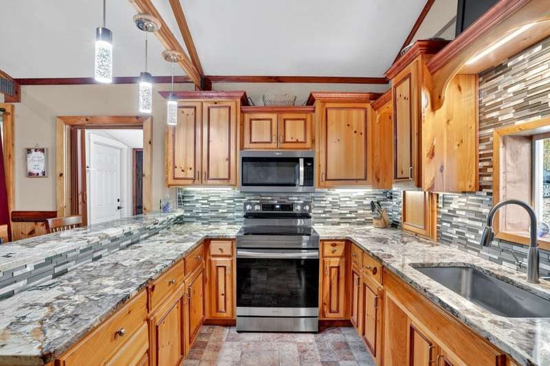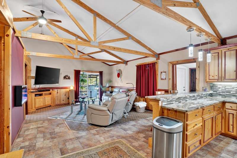 Nestled on 16.57 breathtaking acres, this immaculately maintained 3-bedroom, 1.5-bath home offers the perfect blend of rustic charm and modern elegance. Step inside to find a cozy cabin-like feel with wood-beam ceilings, Brazilian granite countertops, and beautiful finishes throughout that make this home truly stand out.Enjoy peaceful mornings or quiet evenings taking in the beautiful views from the back deck, surrounded by nature and the sounds of the outdoors. The property features a lovely meadow and is teeming with wildlife--including deer, turkey, and squirrel--making it an ideal retreat for nature lovers and hunters alike.A 30x40 shop provides excellent space for hobbies, storage, or a workshop, and the full RV hookup with water, electric, and sewage adds convenience for guests or travelers. Every inch of this property has been lovingly cared for and it truly shows.You don't want to miss this one--call today to schedule your private showing and experience the beauty of this stunning home and property!