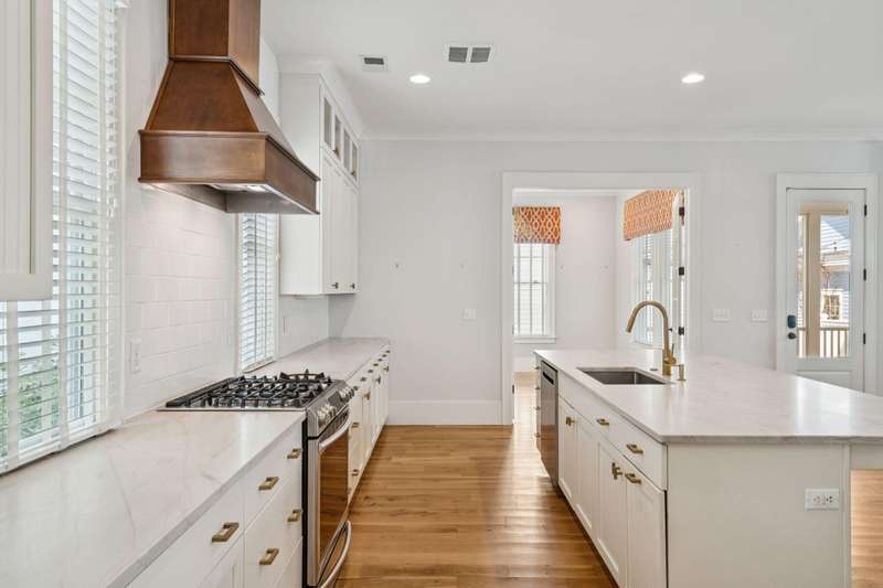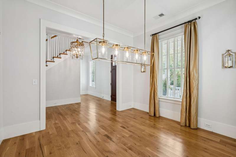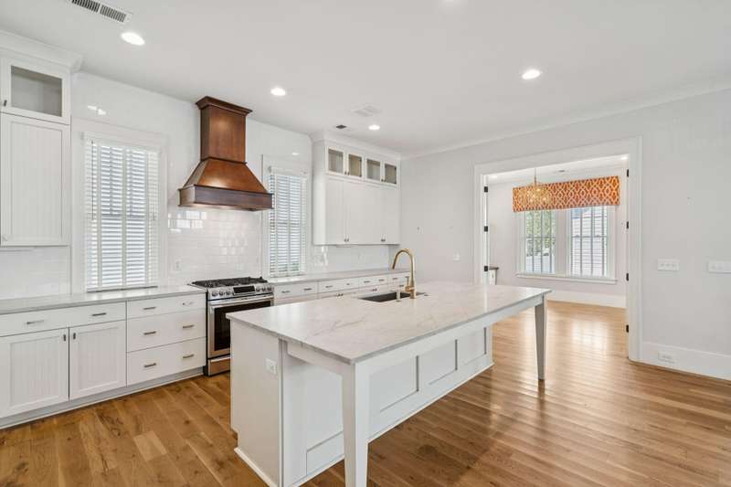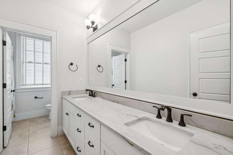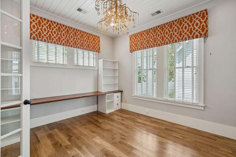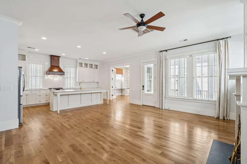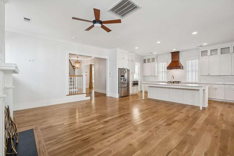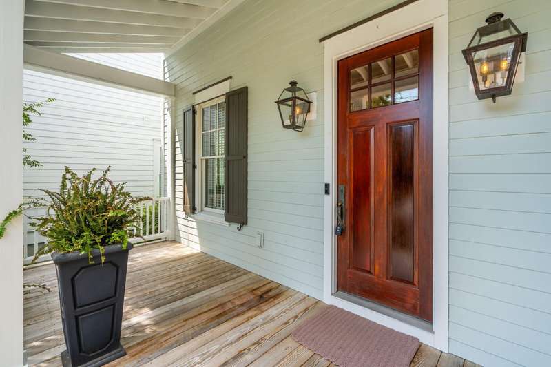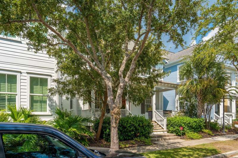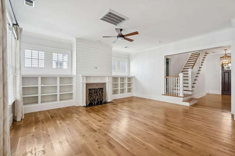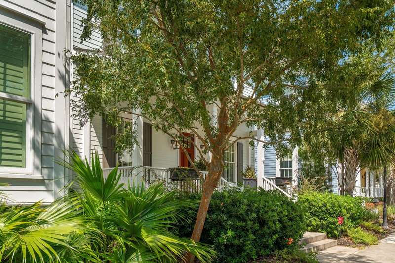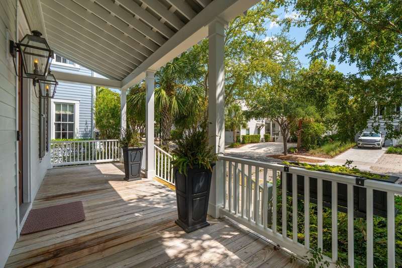 Spacious family home in desirable Watermark community, featuring open floor plan with lovely accents throughout. The living room/kitchen area serves as the main living space and offers a warm fireplace, shiplap accents, and built-in bookshelves for display. A spacious screen porch is located off the living room, perfect for outdoor dining or casual meals. The light-filled kitchen features custom cabinetry, a center work island, stainless-steel appliances, and tile backsplash. There is also a separate formal dining room space with wet bar as you enter the home, perfect for entertaining! Located on the second floor, the primary bedroom is nicely appointed, paired with a bathroom featuring a soaking tub, dual sink vanities, and subway tile shower.Two bedrooms share a bath on this floor. Additional bedroom on this floor designed as a suite with separate bath and walk-in closet. The detached two-car garage can boast a private upstairs living space, perfect for a mother-in-law or au pair suite. Neighborhood amenities include a playground, pool, and convenient location near local restaurants, shopping, and beaches!