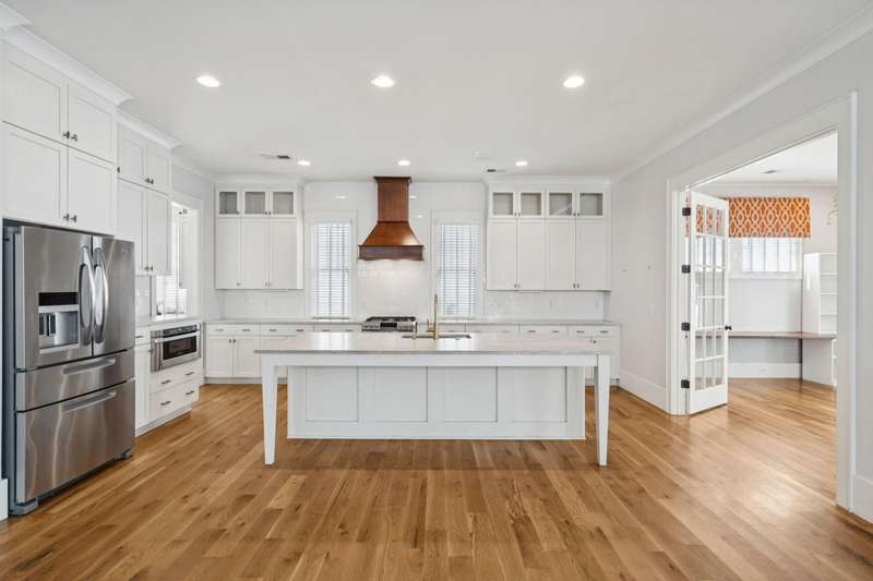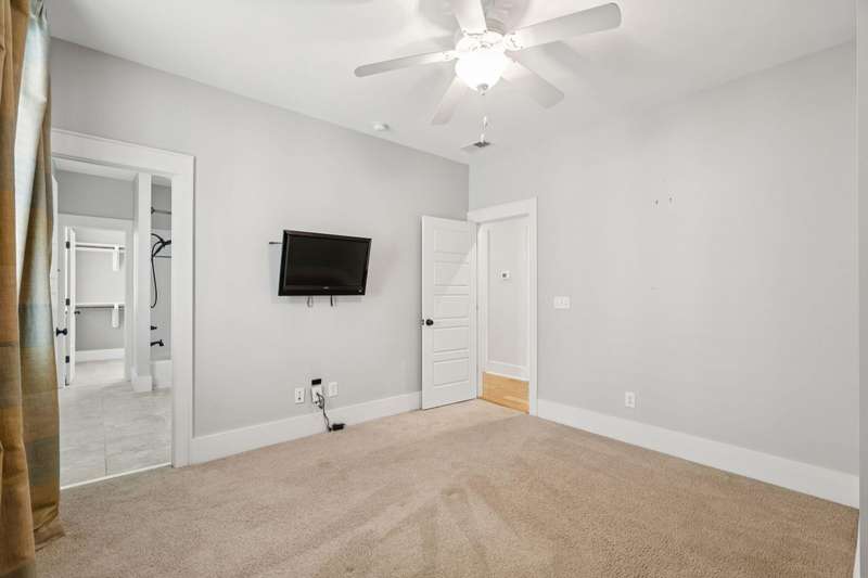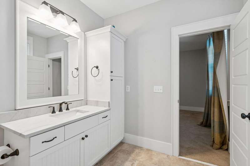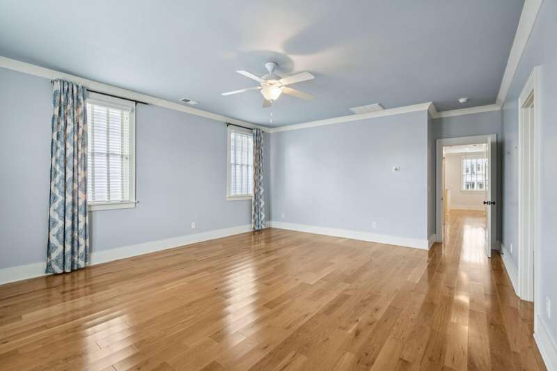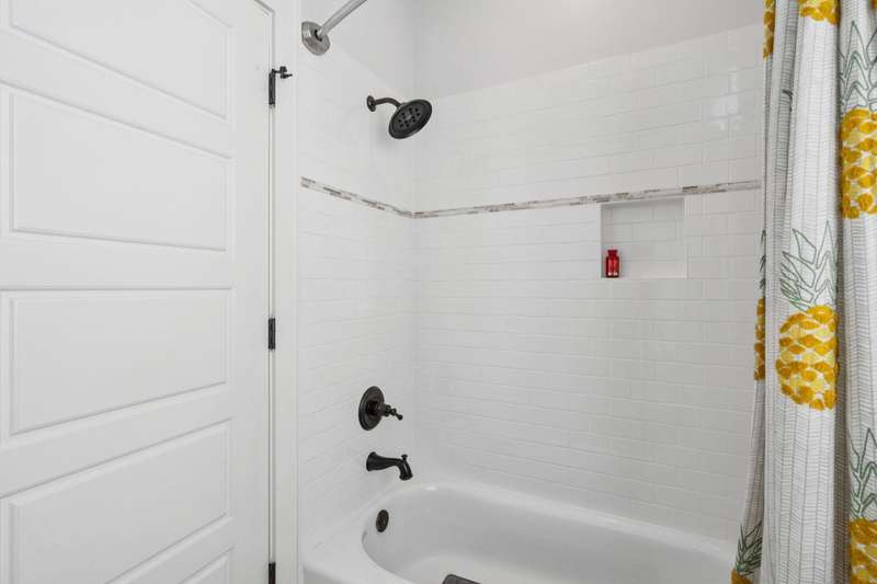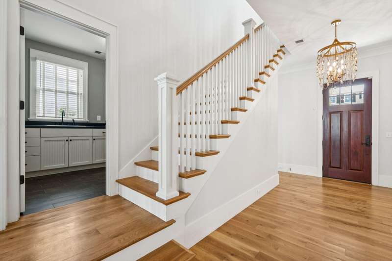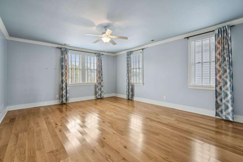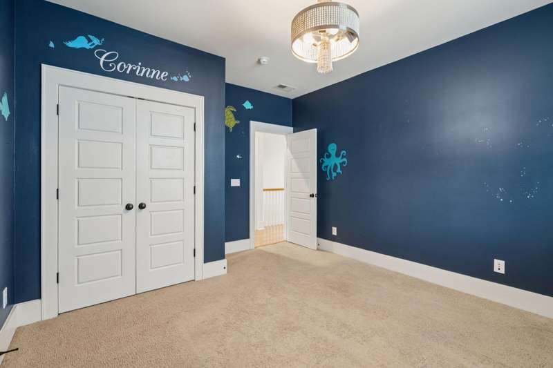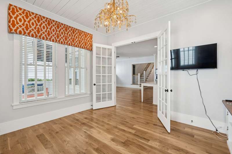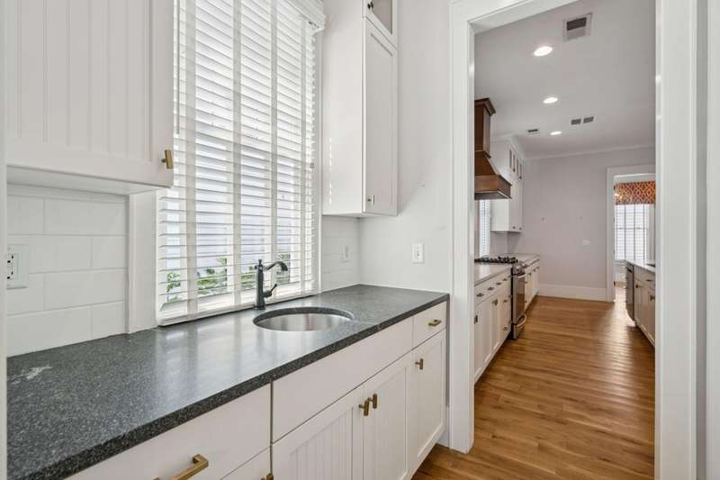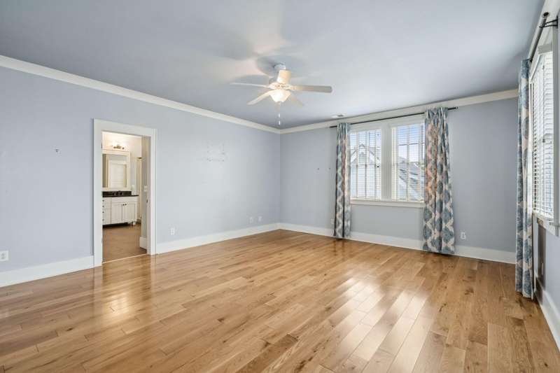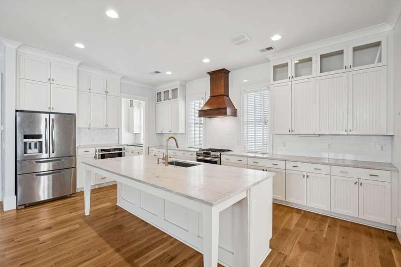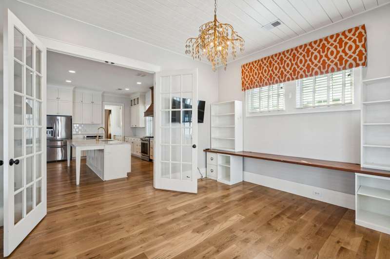Spacious family home in desirable Watermark community, featuring open floor plan with lovely accents throughout. The living room/kitchen area serves as the main living space and offers a warm fireplace, shiplap accents, and built-in bookshelves for display. A spacious screen porch is located off the living room, perfect for outdoor dining or casual meals. The light-filled kitchen features custom cabinetry, a center work island, stainless-steel appliances, and tile backsplash. There is also a separate formal dining room space with wet bar as you enter the home, perfect for entertaining! Located on the second floor, the primary bedroom is nicely appointed, paired with a bathroom featuring a soaking tub, dual sink vanities, and subway tile shower.Two bedrooms share a bath on this floor. Additional bedroom on this floor designed as a suite with separate bath and walk-in closet. The detached two-car garage can boast a private upstairs living space, perfect for a mother-in-law or au pair suite. Neighborhood amenities include a playground, pool, and convenient location near local restaurants, shopping, and beaches!