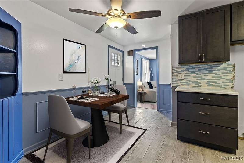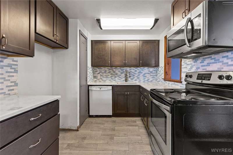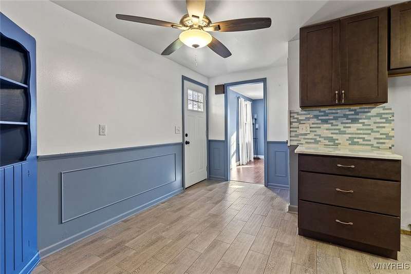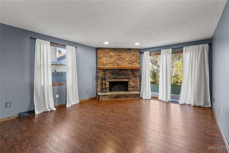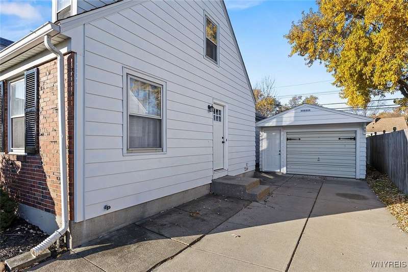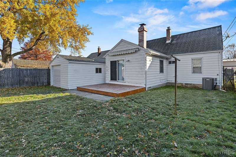 Welcome home to this charming 3-bedroom, 1-bath cape, with loads of updates. Step inside to find a warm, welcoming layout which is easily customized for your lifestyle. The living room boasts new plank flooring and neutral paint ready for you to to relax or entertain. Some photos have been virtually staged for ideas. You'll enjoy preparing gourmet meals in the kitchen with updated cabinets, tile backsplash and quartz counters.A bonus room could be enjoyed as a dining room, playroom, game room, or an additional family room, whatever fits your needs. There's a beautiful brick fireplace anchoring the room and a large sliding glass door that frames the seasons year-round. Whether you're watching the snowfall from the comfort of the fire or letting in a summer breeze, this room offers a serene connection to the outdoors. This home lives like a ranch with two comfortably sized first floor bedrooms. The second floor includes a third bedroom plus a spacious loft area?perfect for a home office, reading nook, or extra storage. A sliding door opens to a brand-new deck overlooking a spacious, partially fenced backyard?ideal for relaxing, hosting, gardening, or enjoying crisp fall evenings and sunny spring afternoons. The garage offers two doors for easy access when moving furniture or yard decor, and the front porch awning is included (currently stored for the winter).Enjoy peace of mind with all the recent updates, including: New carpeting upstairs, garage roof and side door (2025) Deck (2024) Furnace & central air (2023) Hot water tank (2018)Ideally located just minutes from the expressway in Tonawanda and close to shopping, restaurants, Niagara Falls, and downtown Buffalo. A move-in-ready home in a fantastic location?don't miss this versatile and beautifully updated gem!
