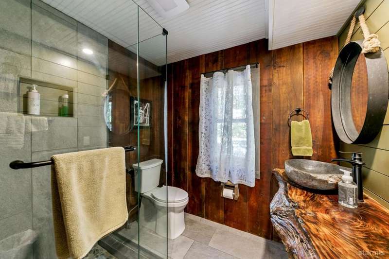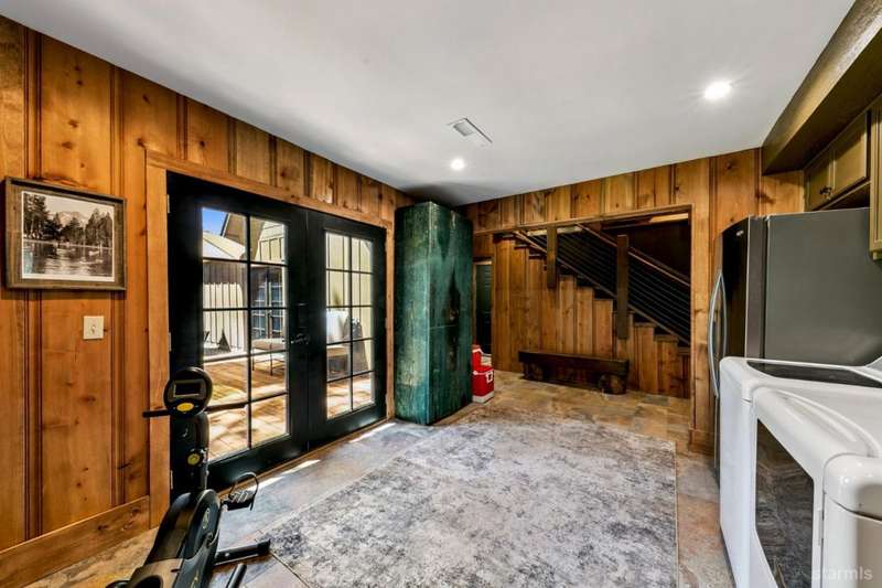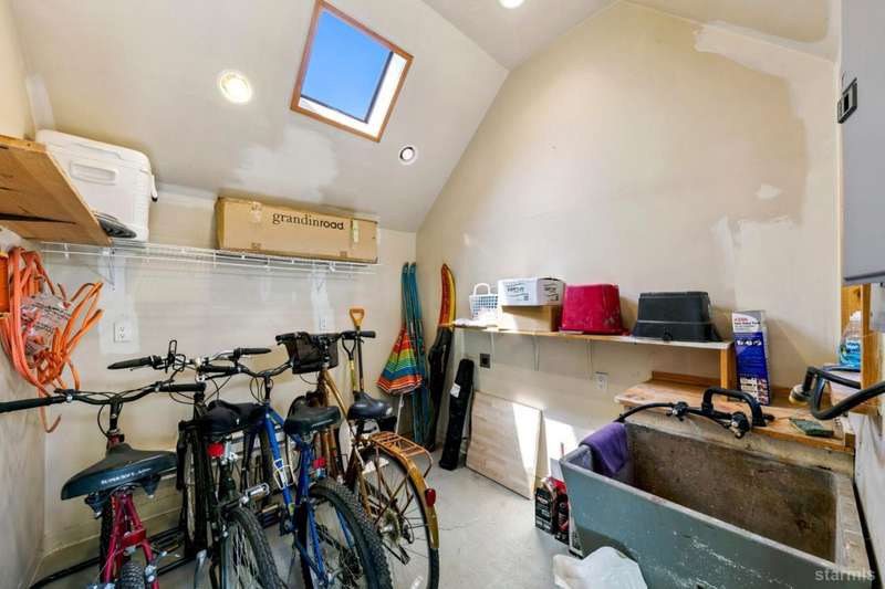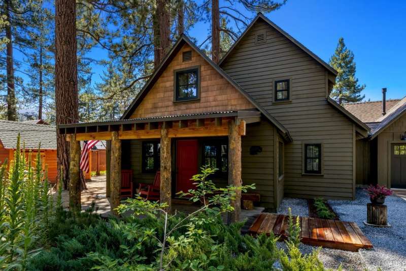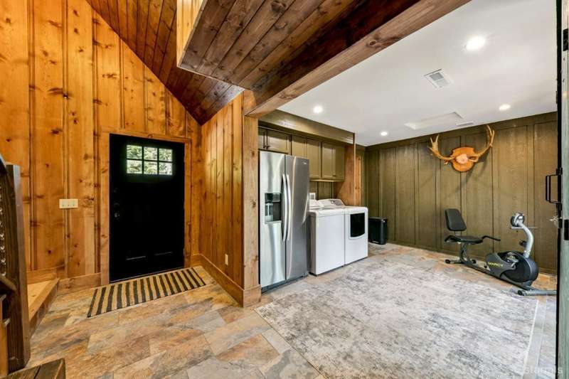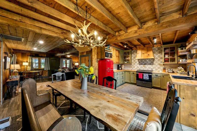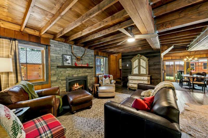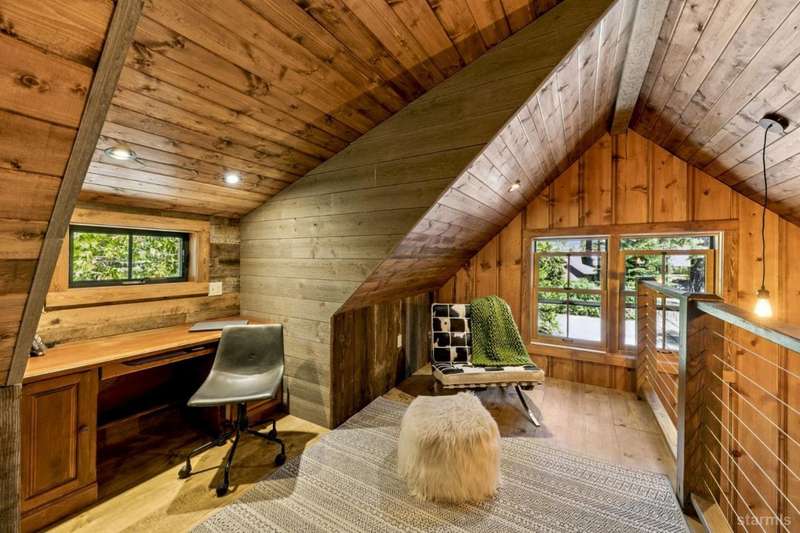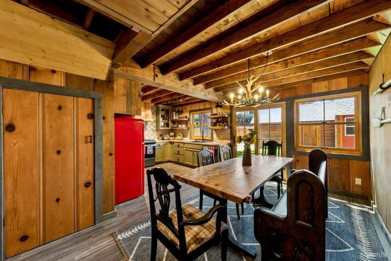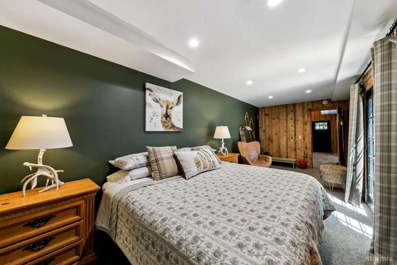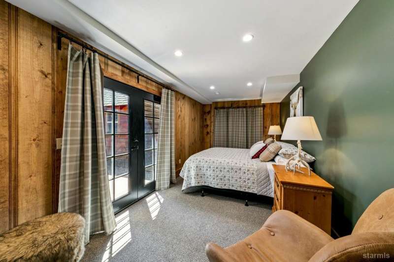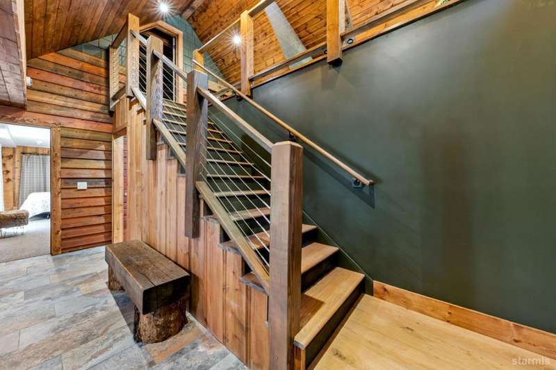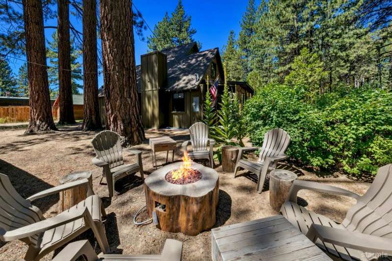 Discover this completely renovated Tahoe cabin nestled in the historic American Legion area of Al Tahoe, where old-world charm meets modern convenience. This 4-bedroom, 3-bathroom home spans 2,346 square feet and showcases top craftsmanship throughout.The spacious living area welcomes you with an open layout featuring stunning exposed beam ceilings, rustic knotty pine paneling, a cozy gas fireplace, and durable laminate hickory flooring. The beautifully appointed kitchen is complete with custom cabinets, butcherblock countertops, decorative tile backsplash, stainless steel gas range, dishwasher, and built-in microwave.The main level includes a comfortable bedroom and full bathroom with custom live edge slab countertop, stone vessel sink, and custom tile shower. Upstairs, three additional bedrooms await, including the luxurious primary suite and versatile loft office area.The primary bedroom creates a serene retreat with its freestanding gas fireplace, open beam ceilings, and rich wide plank hardwood flooring. The primary bathroom impresses with a custom stall shower, elegant freestanding tub, and heated tile flooring.Set on a generous sunny lot, the property features an inviting deck overlooking a lawn complete with sprinkler system, plus a charming covered front porch. The attached 2-car garage and four outbuildings provide abundant storage options for all your needs.This exceptional property offers convenient access to El Dorado Beach, the boat launch, and local dining establishments, making it perfect for year-round living or a mountain getaway retreat. This turnkey property features a stylish and comfortable furnishings. Many custom-designed pieces add a unique touch of style and personality to the space. The home is move in ready, equipped with everything you need for immediate occupancy - from stylish dcor and functional appliances to practical essentials. Perfect for those seeking a hassle-free, beautifully curated living and recreation environment.